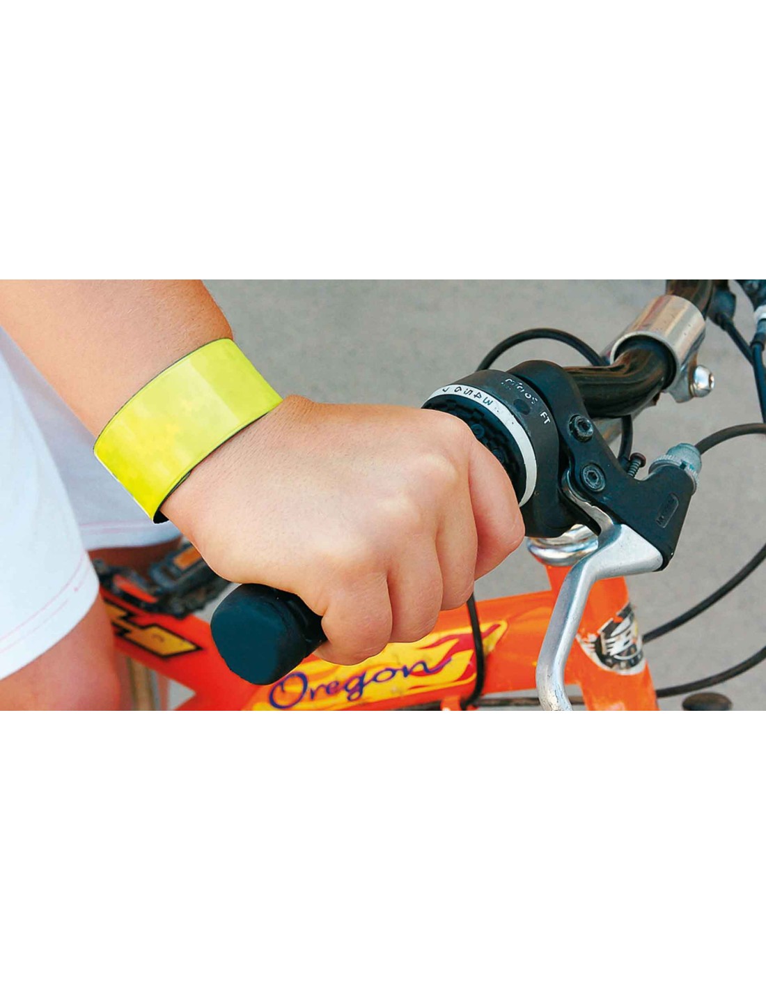 Pulsera reflectante en PVC de variada gama en vivos colores. Con mecanismo de ajuste automático. No usar como equipo de protección individual