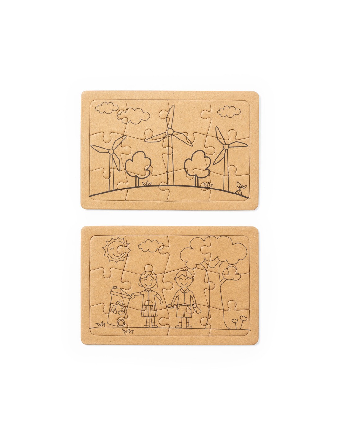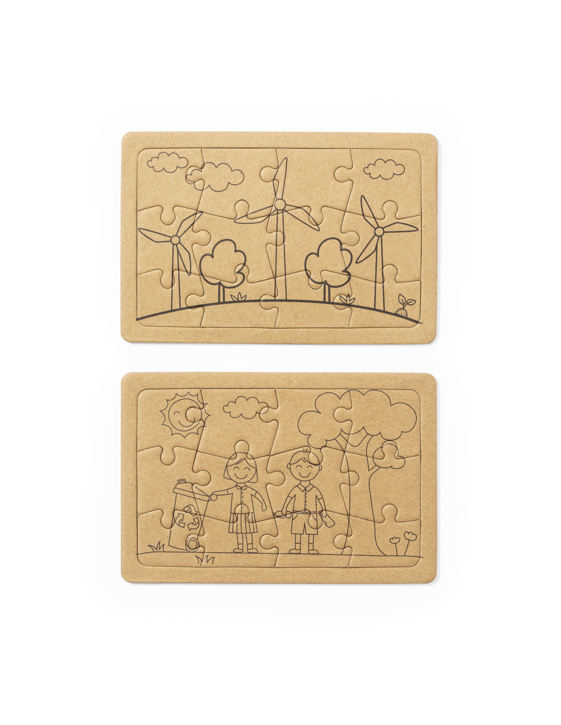Set de puzzles de línea nature fabricados en cartón reciclado. Incluye 2 puzzles de 12 piezas cada uno. Set presentado en caja individual de diseño kraft.