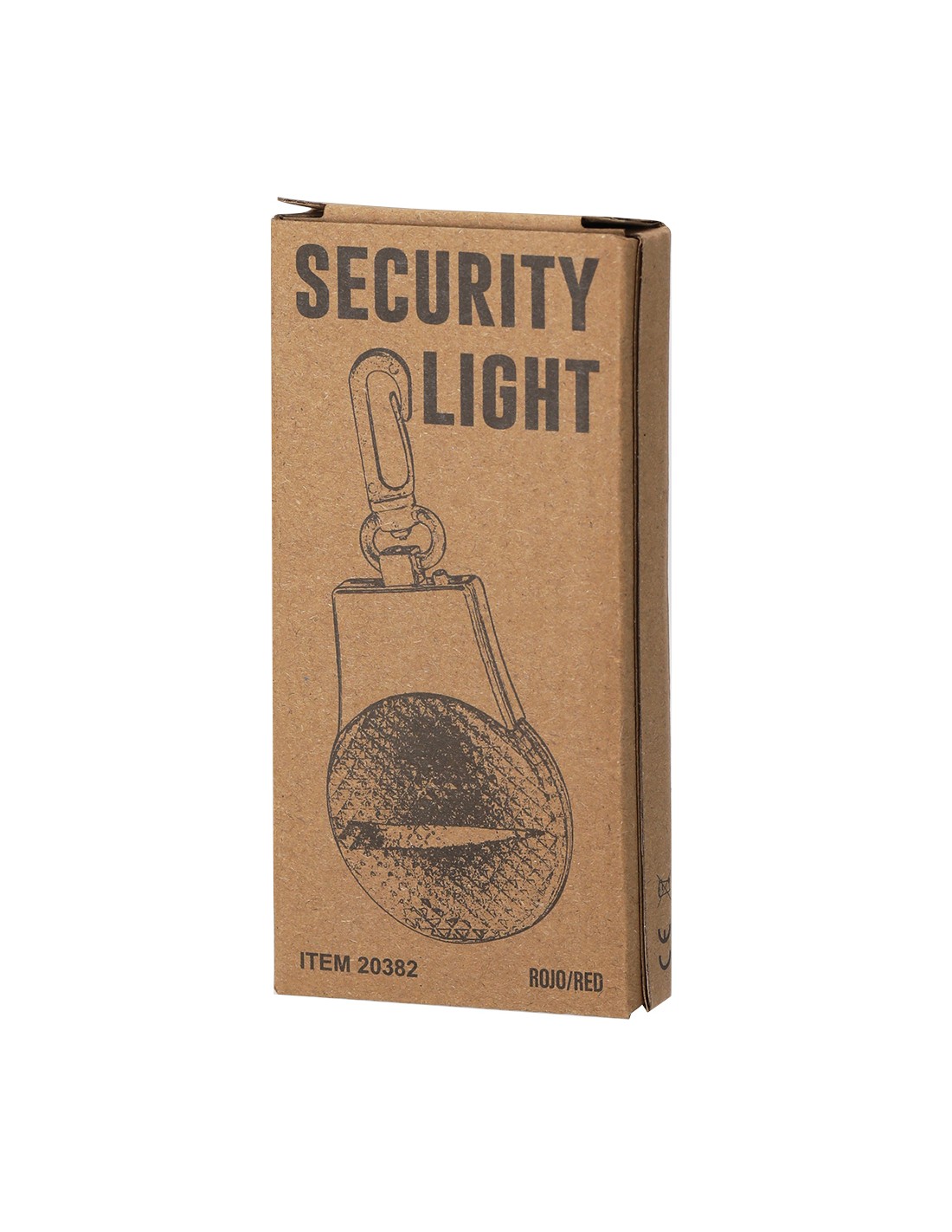 Luz de seguridad de alta visibilidad. Dispone de 3 luces LEDs, con posición de iluminación fija -dos niveles de intensidad-, e intermitente. Con mosquetón giratorio y disponible en colores vivos. Alimentada por pila de botón (incluida) y presentada individualmente en caja de diseño kraft.
