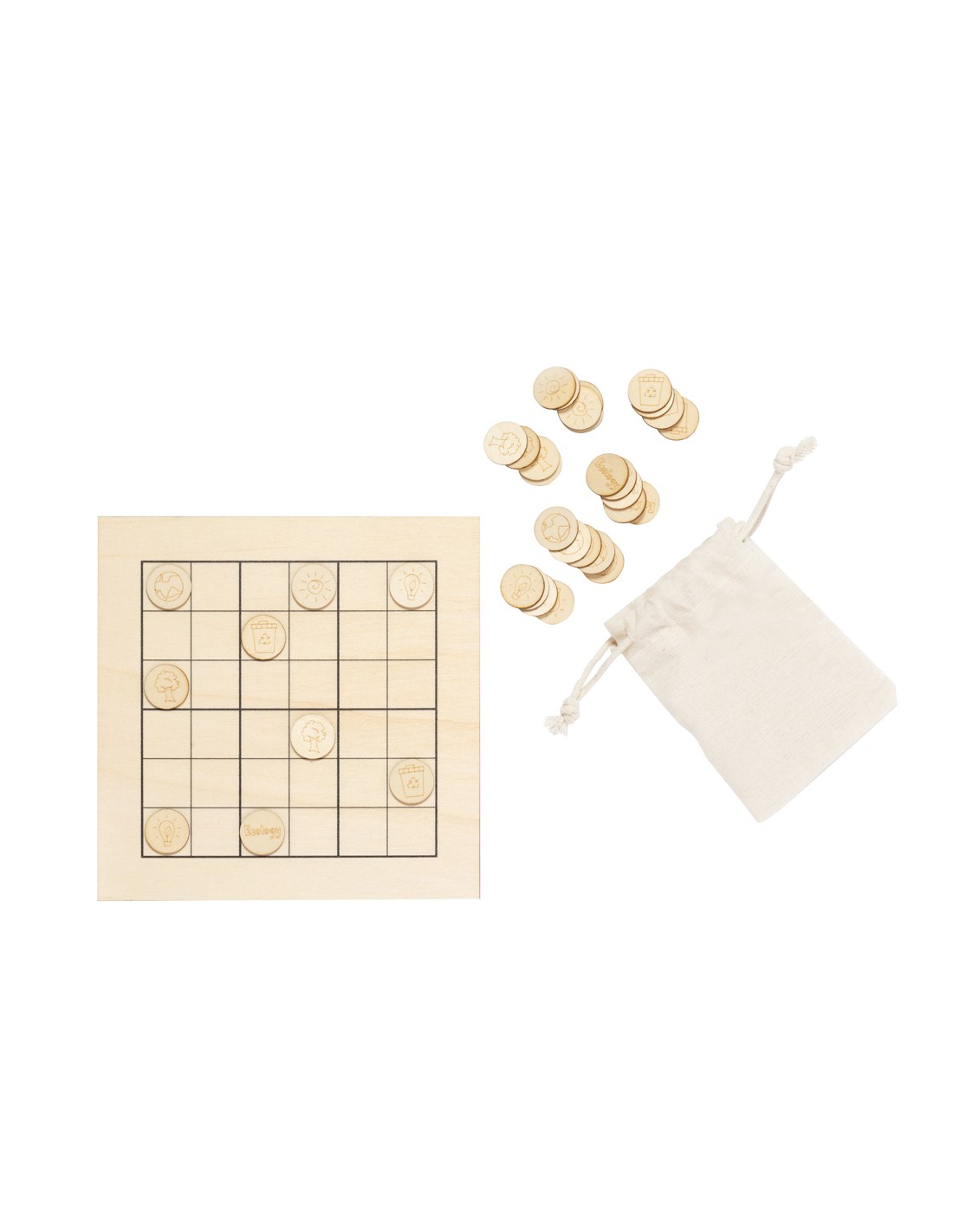 Juego de habilidad fabricado en madera. Emocionante juego sudoku con motivos ecológicos para todas las edades con tablero y 36 fichas (6 por diseño). Con práctica bolsita de algodón para guardar todas las fichas e instrucciones incluidas (español e ingles).