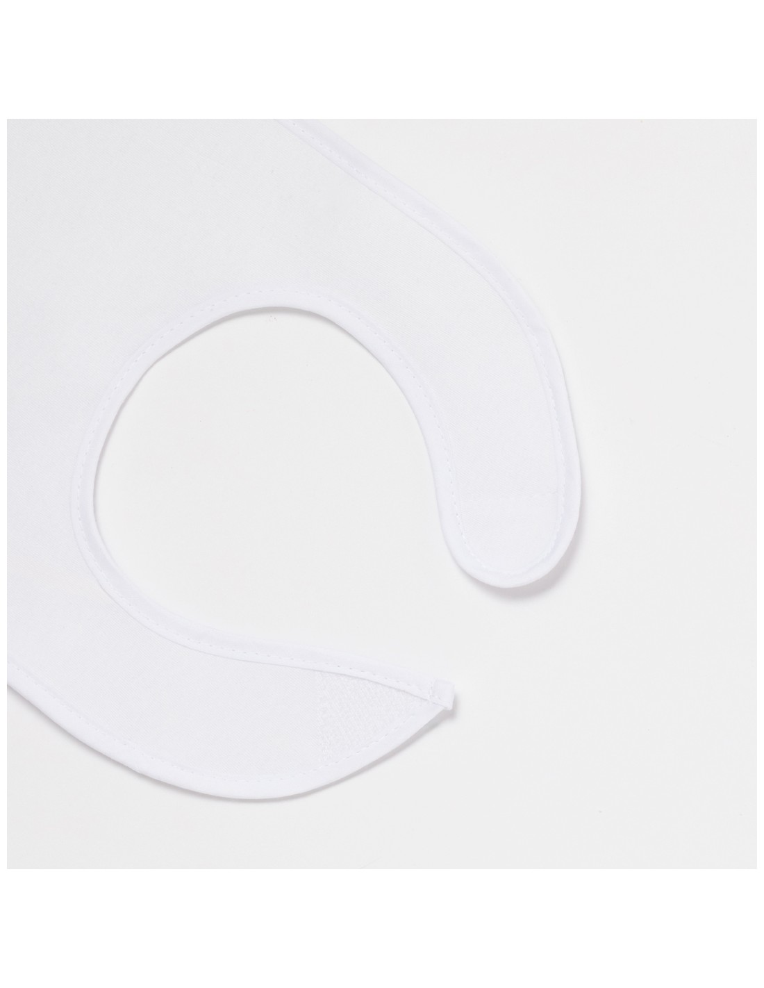 Práctico babero infantil confeccionado en algodón, con cierre de velcro para un mejor ajuste de color blanco.