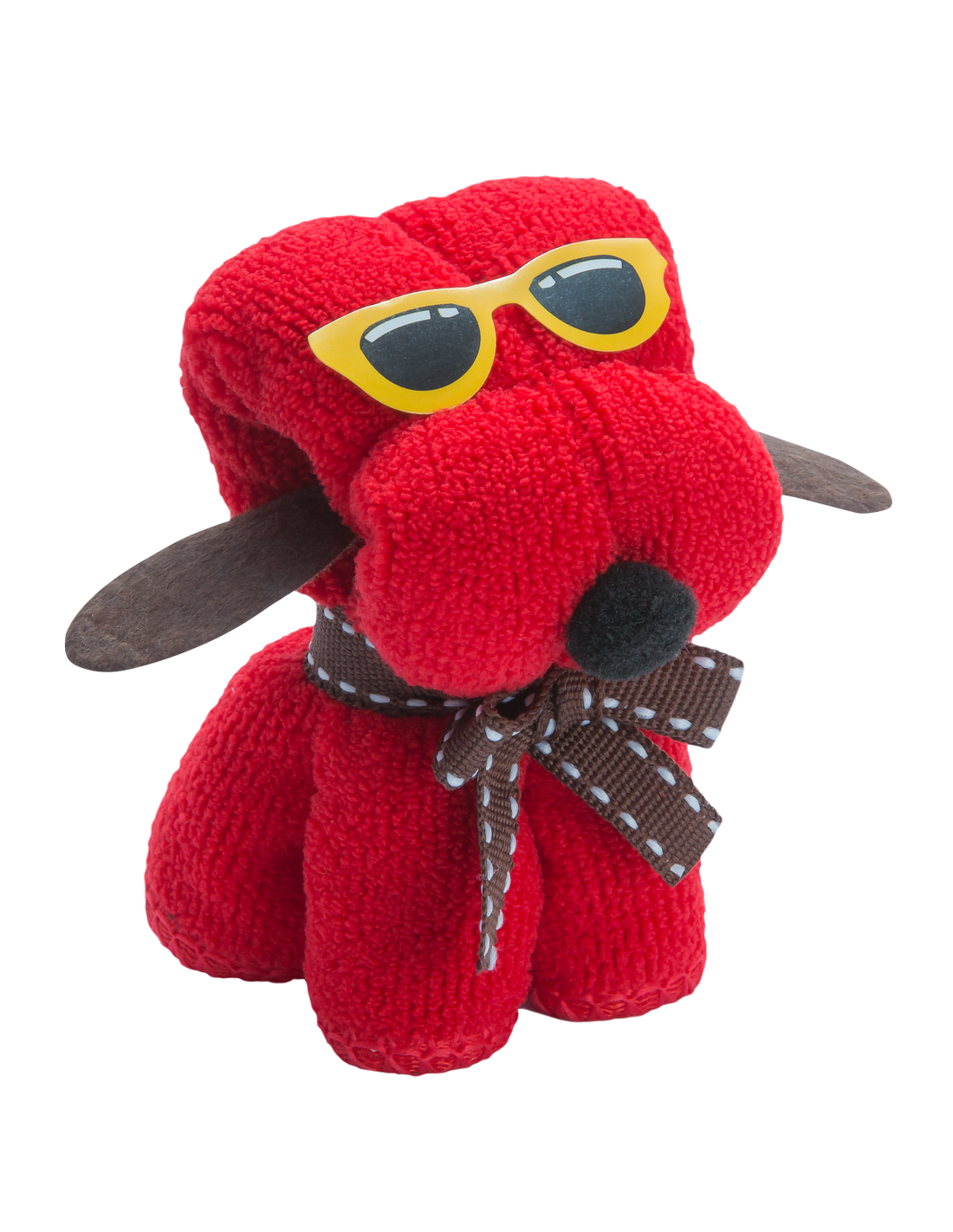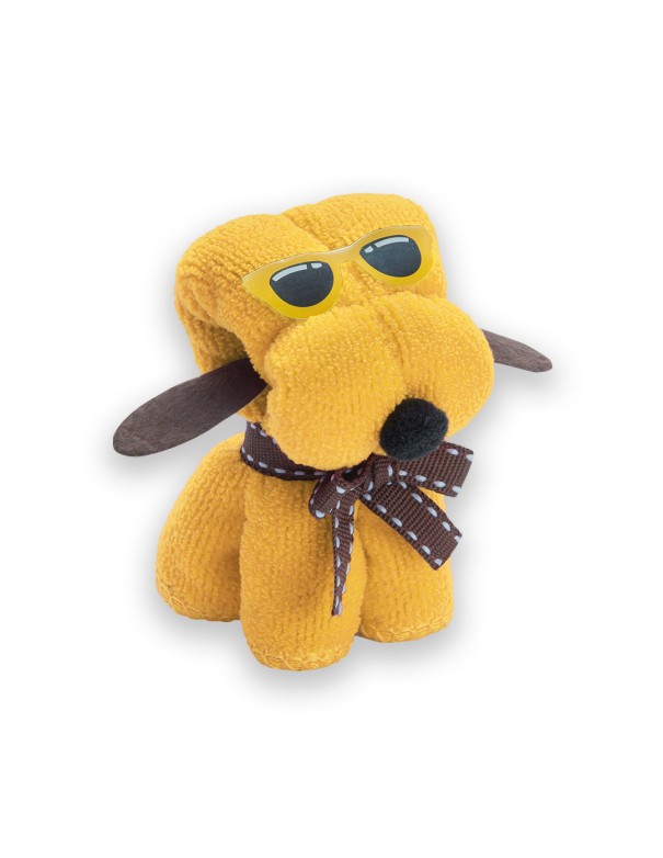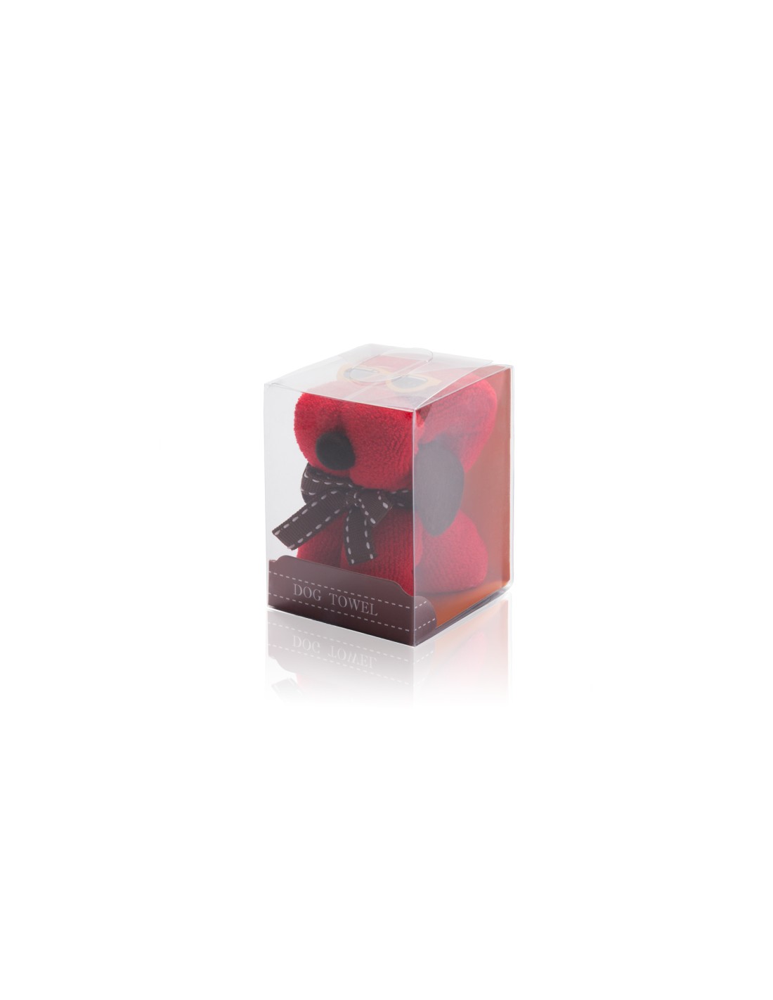 Divertida toalla perro en absorbente y suave microfibra de 310g/m2 en vivos colores. Presentada en estuche de PVC transparente de diseño.