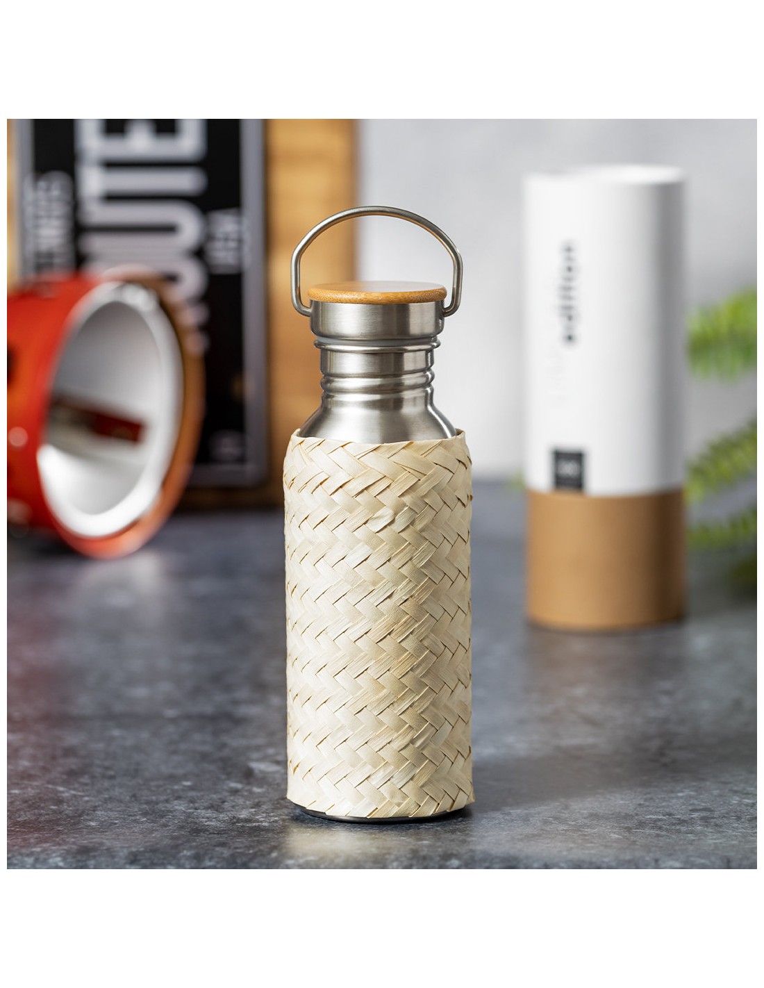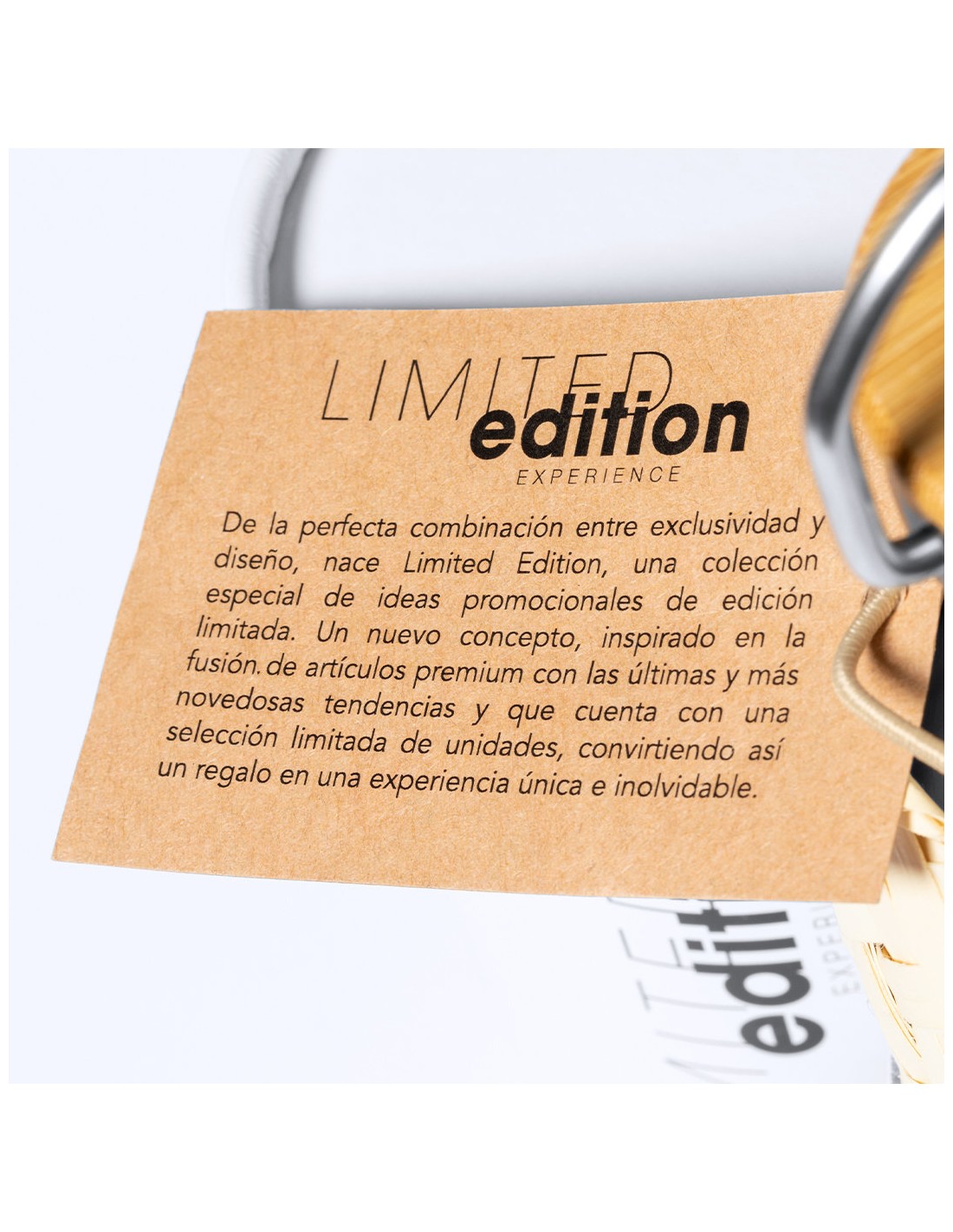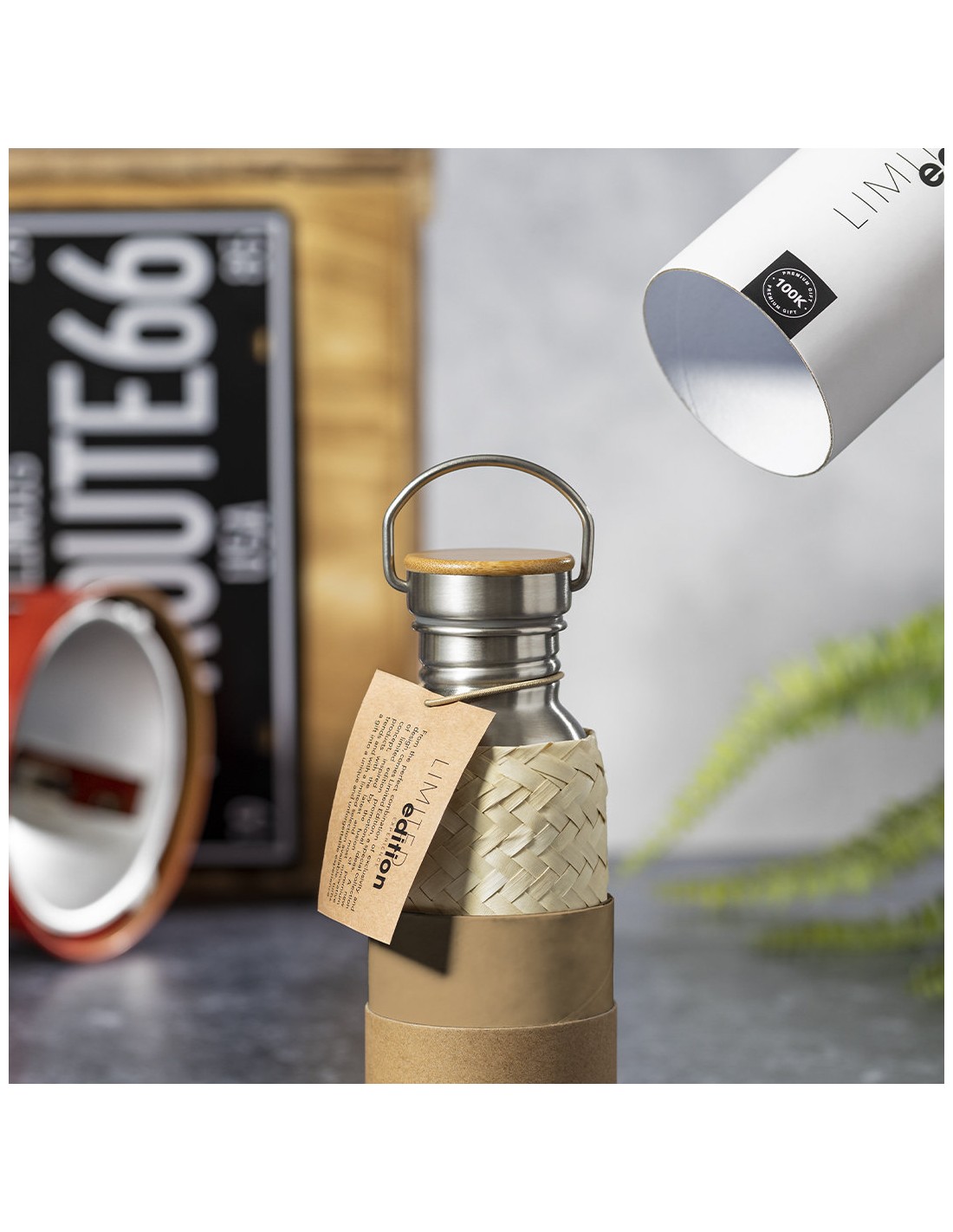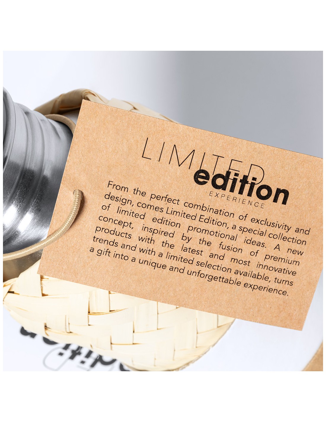Bidón Limited Edition. Envuelto en un ecodiseño de líneas suaves, este bidón combina cuerpo en acero inoxidable, funda de paja y tapón de seguridad a rosca con base de bambú. Incluye asa de transporte. De 600ml de capacidad. De la perfecta combinación entre exclusividad y diseño, nace Limited Edition, una colección especial de ideas promocionales de edidición limitada. Un nuevo concepto, inspirado en la fusión de artículos premium con las últimas y más novedosas tendencias y que cuenta con una seleción limitada de unidades, convirtiendo así un regalo en una experiencia única e inolvidable. Exclusivo estuche de presentación Limited Edition, con diseño protegido por derechos de propiedad industrial. Incluida tarjeta con descripción de Limited Edition en cartón reciclado.