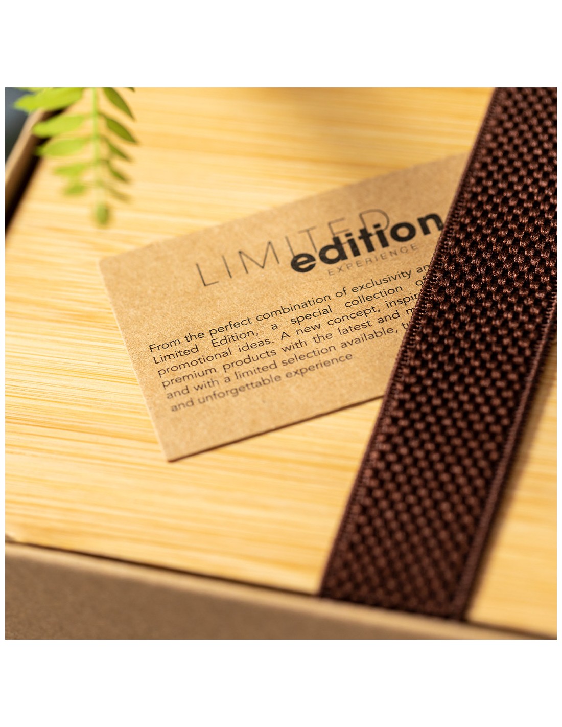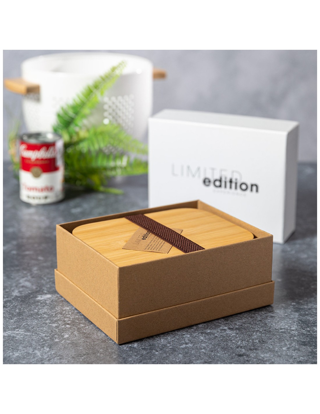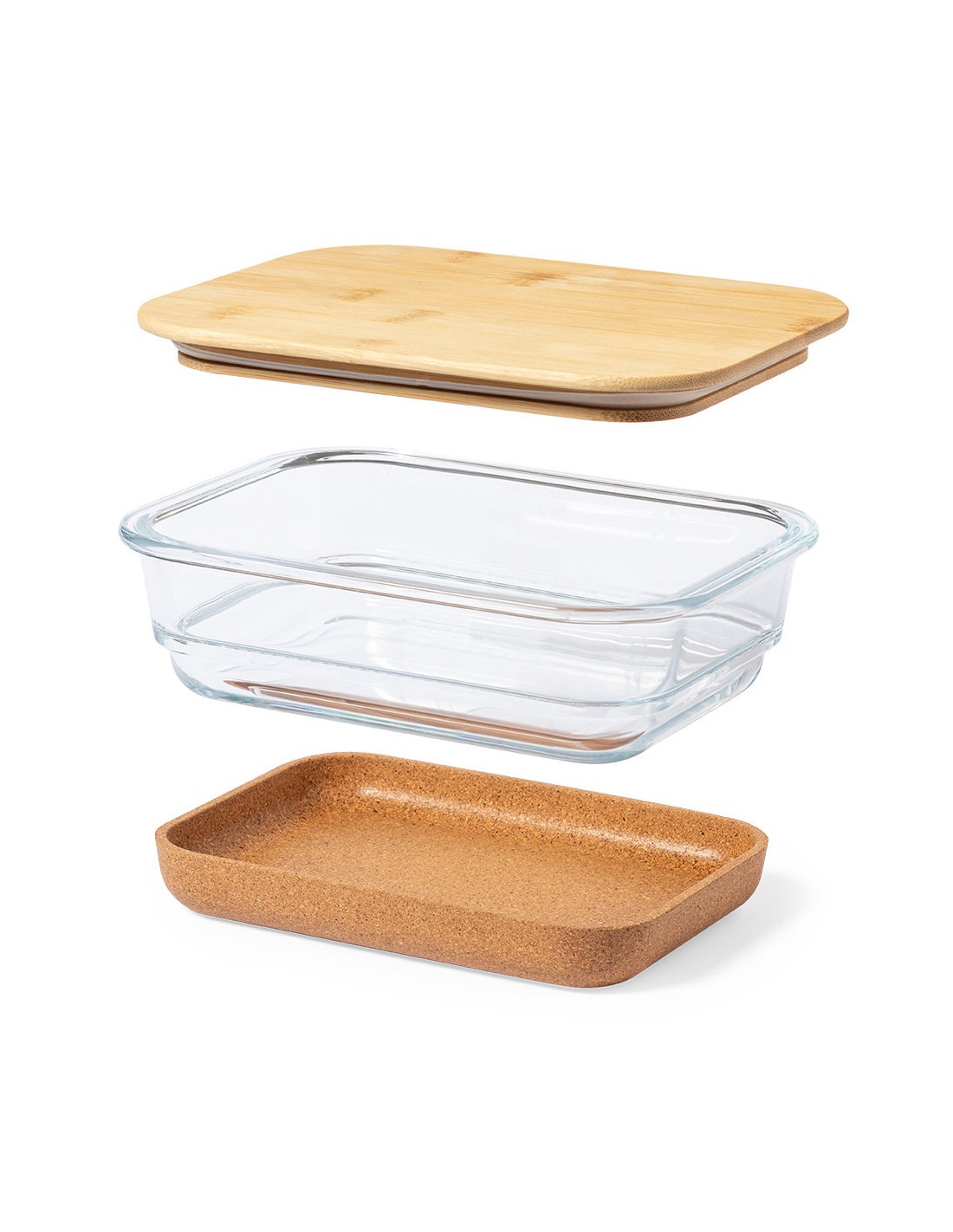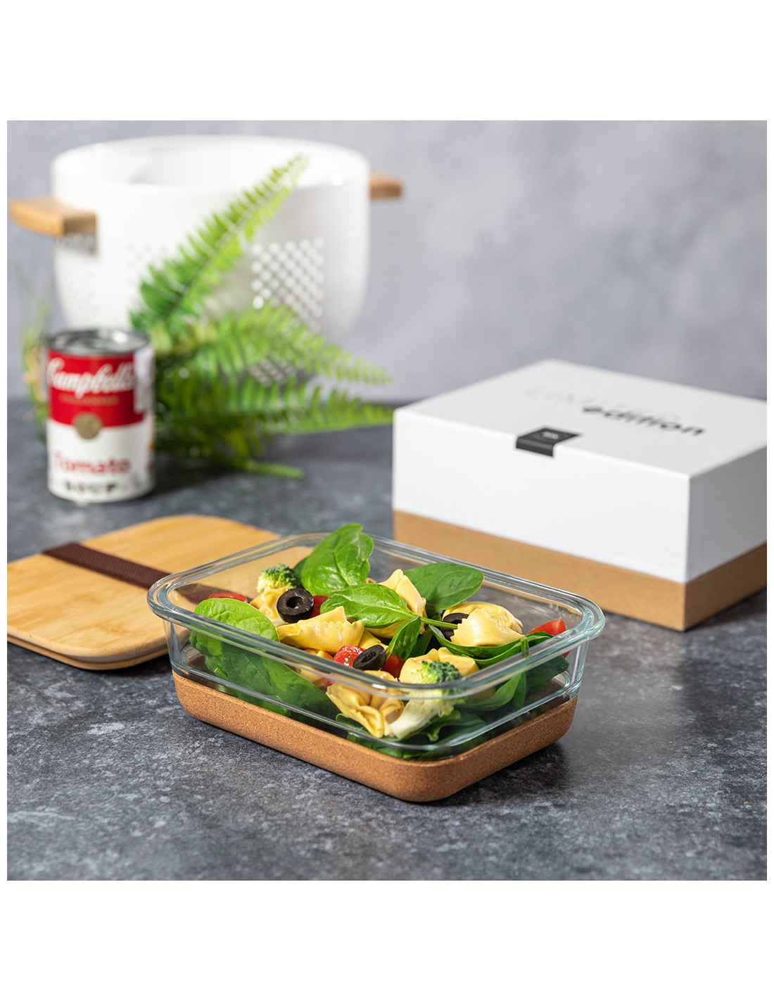 Fiambrera Limited Edition. Un fascinante diseño que conjuga diseño y sostenibilidad. Conformada por un compartimento principal en cristal de la más alta calidad de 730 ml litro de capacidad, tapa hermética en bambú y base en corcho natural. Incluye cinta de seguridad. De la perfecta combinación entre exclusividad y diseño, nace Limited Edition, una colección especial de ideas promocionales de edidición limitada. Un nuevo concepto, inspirado en la fusión de artículos premium con las últimas y más novedosas tendencias y que cuenta con una seleción limitada de unidades, convirtiendo así un regalo en una experiencia única e inolvidable. Exclusivo estuche de presentación Limited Edition, con diseño protegido por derechos de propiedad industrial. Incluida tarjeta con descripción de Limited Edition en cartón reciclado.