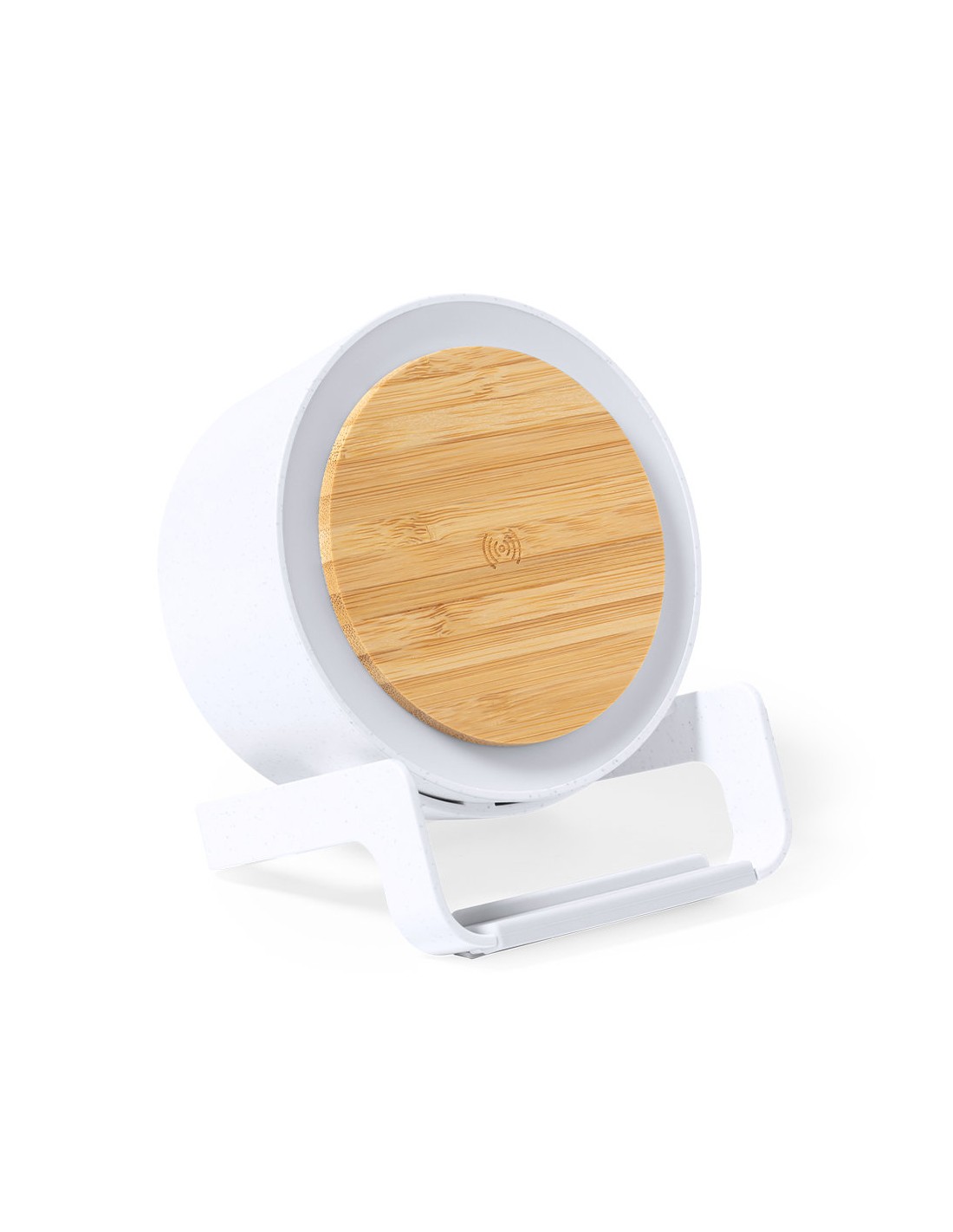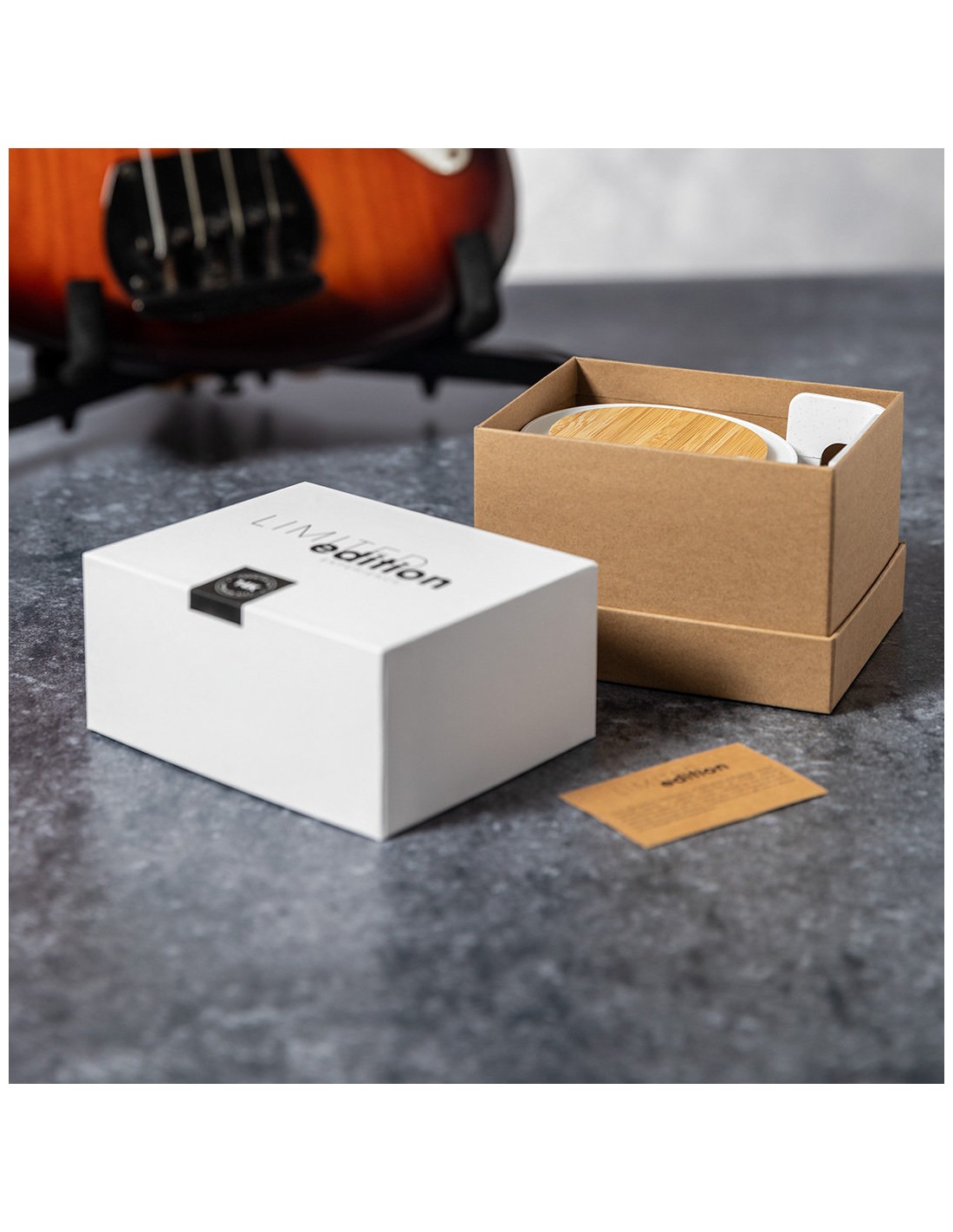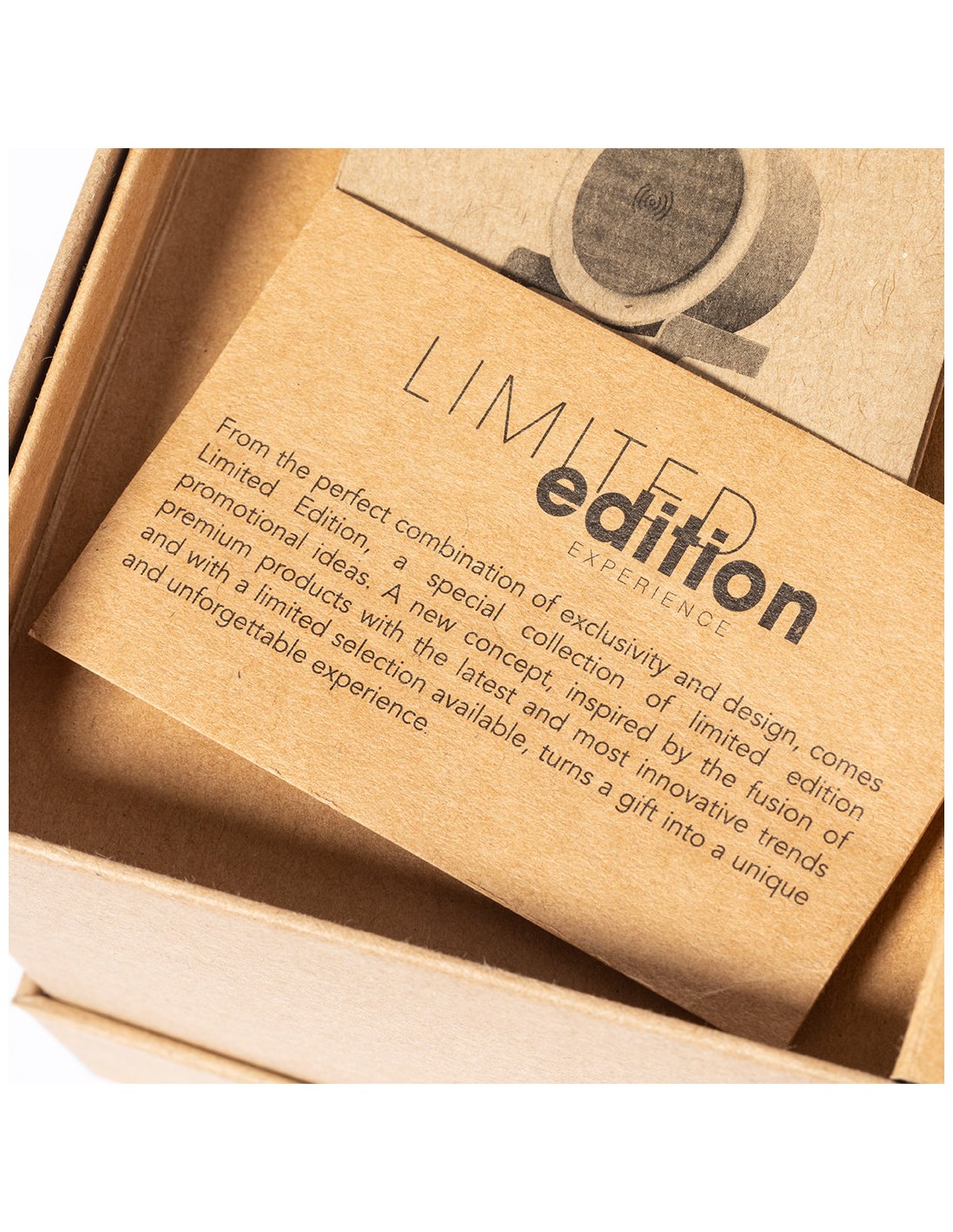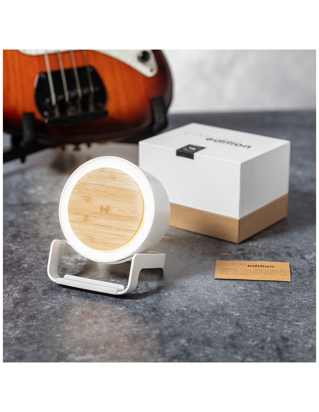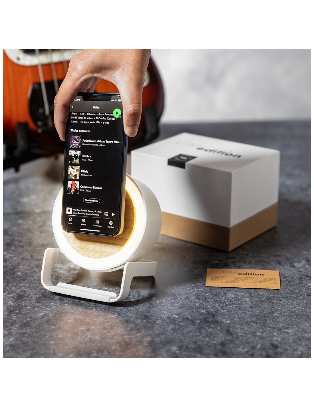 Lámpara multifunción Limited Edition con función altavoz, cargador inalámbrico y soporte para dispositivos móviles. Un moderno y sostenible diseño fabricado en bambú y carcasa en resistente ABS y caña de trigo, para así fomentar la utilización de materias primas naturales y reducir las emisiones contaminantes. Incluye función cargador inalámbrico 10W y lámpara de 12 ledes, con intensidad de luz regulable. Compatible con dispositivos móviles de carga inalámbrica, incluye cable cargador USB C de 100 cm. Altavoz Bluetooth con 3W de potencia. Disponible manual de instrucciones en Español e Inglés. De la perfecta combinación entre exclusividad y diseño, nace Limited Edition, una colección especial de ideas promocionales de edidición limitada. Un nuevo concepto, inspirado en la fusión de artículos premium con las últimas y más novedosas tendencias y que cuenta con una seleción limitada de unidades, convirtiendo así un regalo en una experiencia única e inolvidable. Exclusivo estuche de presentación Limited Edition, con diseño protegido por derechos de propiedad industrial. Incluida tarjeta con descripción de Limited Edition en cartón reciclado.