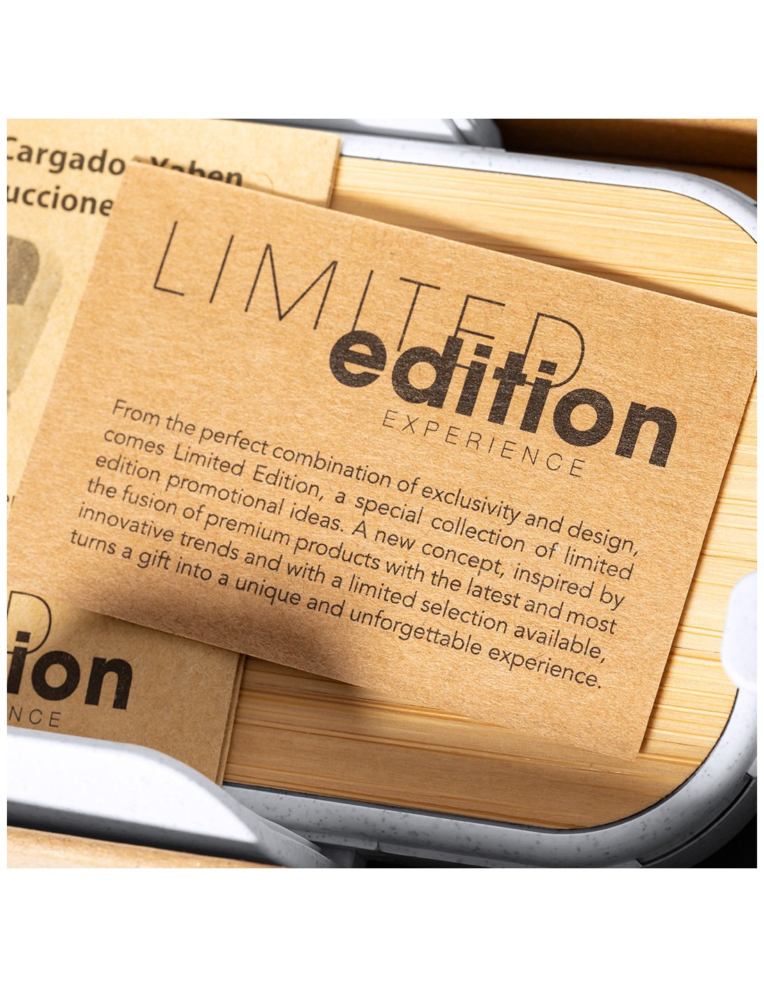 Soporte Cargador Inalámbrico de Coche Limited Edition. Un estilo innovador, donde sostenibilidad, diseño y última tecnología se combinan en una calidad premium. Fabricado en bambú y carcasa en resistente ABS y caña de trigo, para así fomentar la utilización de materias primas naturales y reducir las emisiones contaminantes . Con cargador inalámbrico de 15W. Compatible con dispositivos móviles de carga inalámbrica, con cable cargador USB C de 100 cm y manual de instrucciones en Español e Inglés incluidos. De la perfecta combinación entre exclusividad y diseño, nace Limited Edition, una colección especial de ideas promocionales de edidición limitada. Un nuevo concepto, inspirado en la fusión de artículos premium con las últimas y más novedosas tendencias y que cuenta con una seleción limitada de unidades, convirtiendo así un regalo en una experiencia única e inolvidable. Exclusivo estuche de presentación Limited Edition,’, con diseño protegido por derechos de propiedad industrial. Incluida tarjeta con descripción de Limited Edition en cartón reciclado.