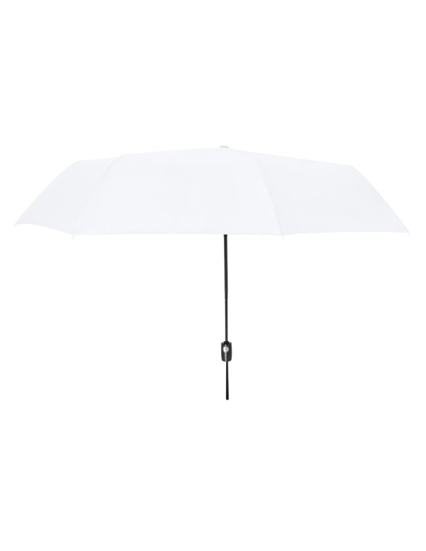 Paraguas plegable de 120cm de diámetro en material pongee 190T RPET. De apertura y cierre automáticos, con sistema antiviento y varillas en fibra de vidrio. Mango de suave tacto goma, con funda de transporte y cinta a juego. Disponible en variada gama de colores, con etiqueta RPET.El material RPET se elabora a partir de plástico reciclado, para así fomentar la reutilización de residuos plásticos y ayudar a la sostenibilidad del planeta.
