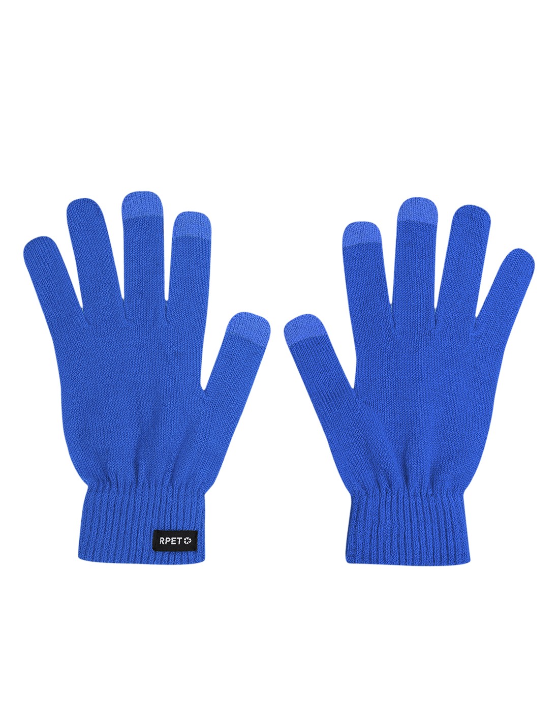 Guantes fabricados en cálido y suave tejido poliéster RPET. Con función táctil en dedos corazón, índice y pulgar a color. Talla única adulto. Con distintitivo RPET en etiqueta exterior. El material RPET se elabora a partir de plástico reciclado, para así fomentar la reutilización de residuos plásticos y ayudar a la sostenibilidad del planeta.