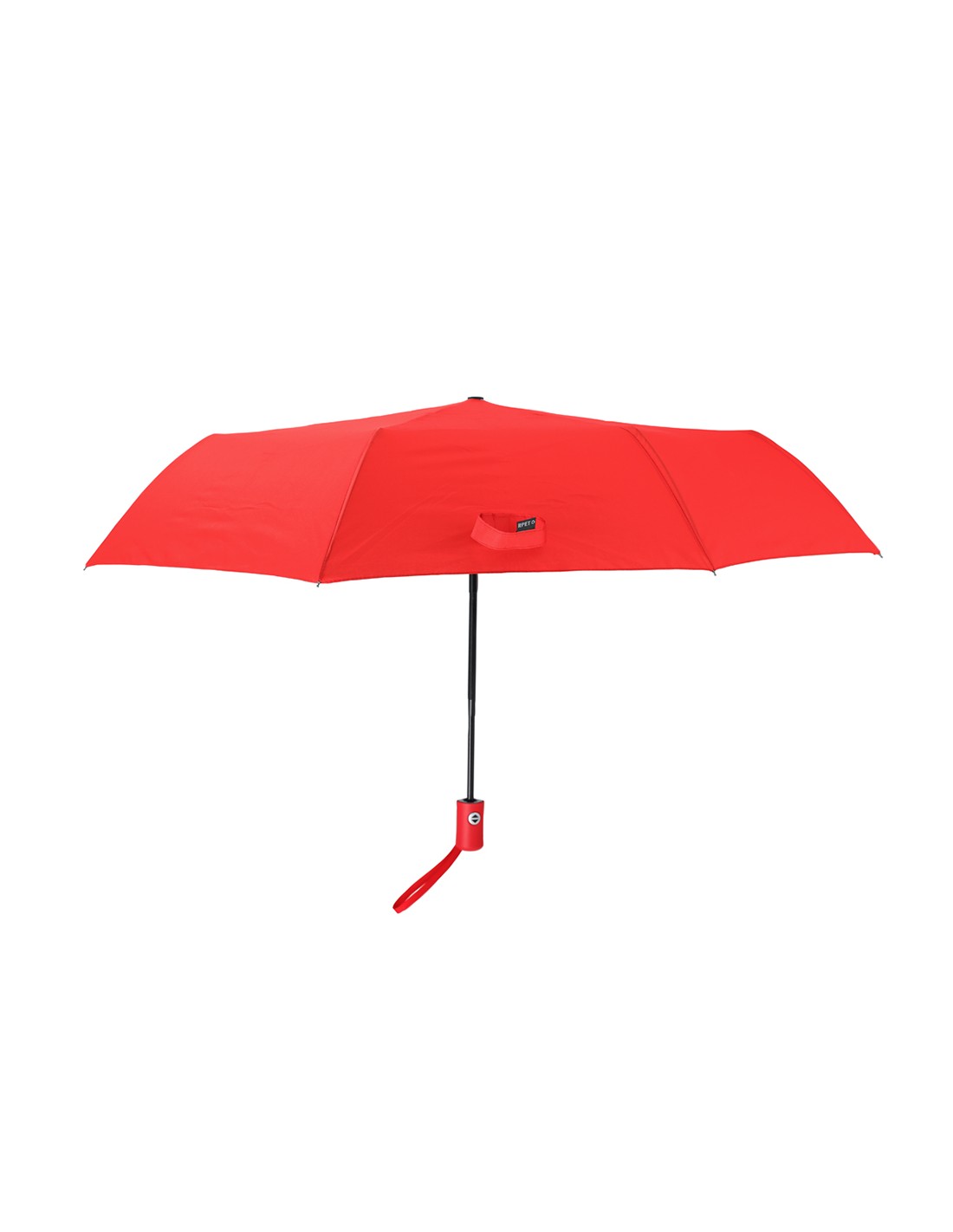 Paraguas plegable de 98 cm de diámetro en material pongee 190T RPET de 8 paneles. Con apertura y cierre automáticos, sistema antiviento y varillas en fibra de vidrio. Mango de suave tacto goma, funda de transporte y cinta a juego. Con etiqueta RPET.El material RPET se elabora a partir de plástico reciclado, para así fomentar la reutilización de residuos plásticos y ayudar a la sostenibilidad del planeta.