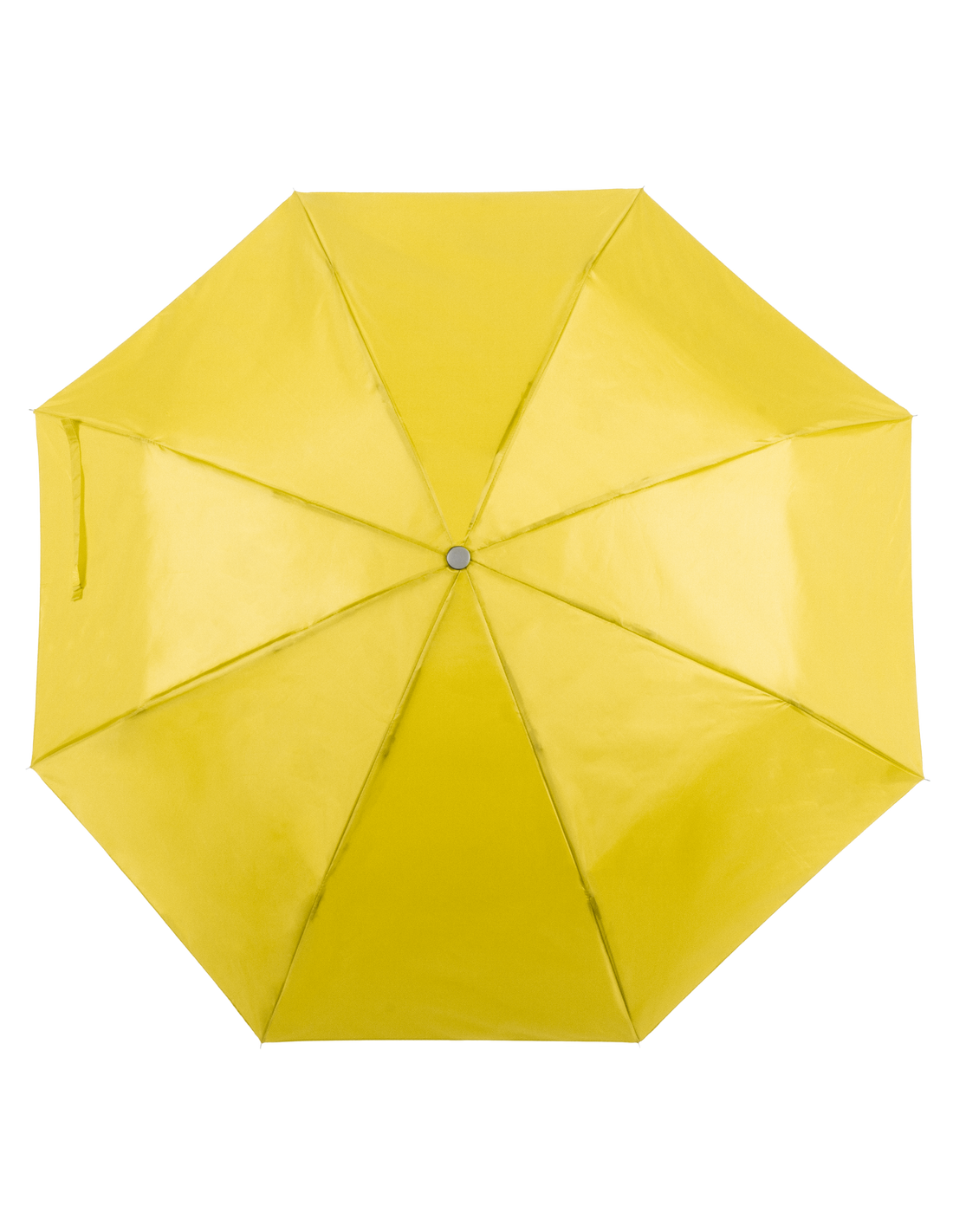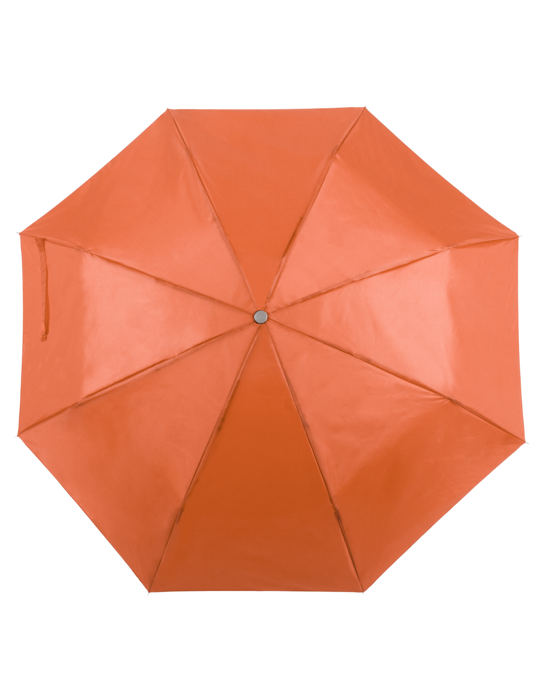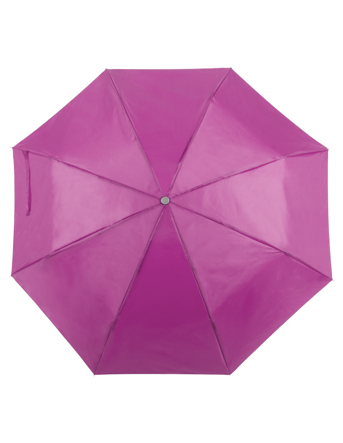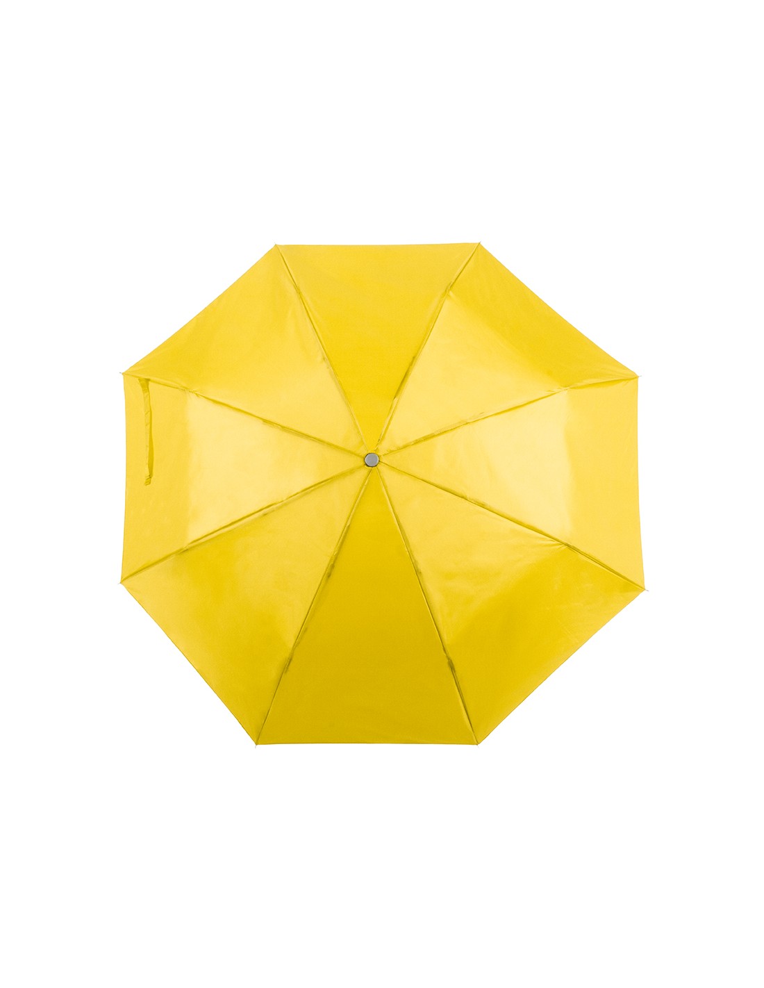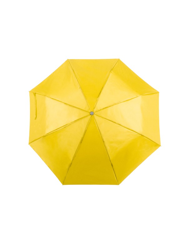 Paraguas plegable de 8 paneles de poliéster 170T en extensa gama de vivos colores y 96cm de diámetro. De apertura manual, con varillas metálicas en color plateado, cierre de velcro y cinta de transporte en mango ergonómico. Presentado en funda individual a juego.