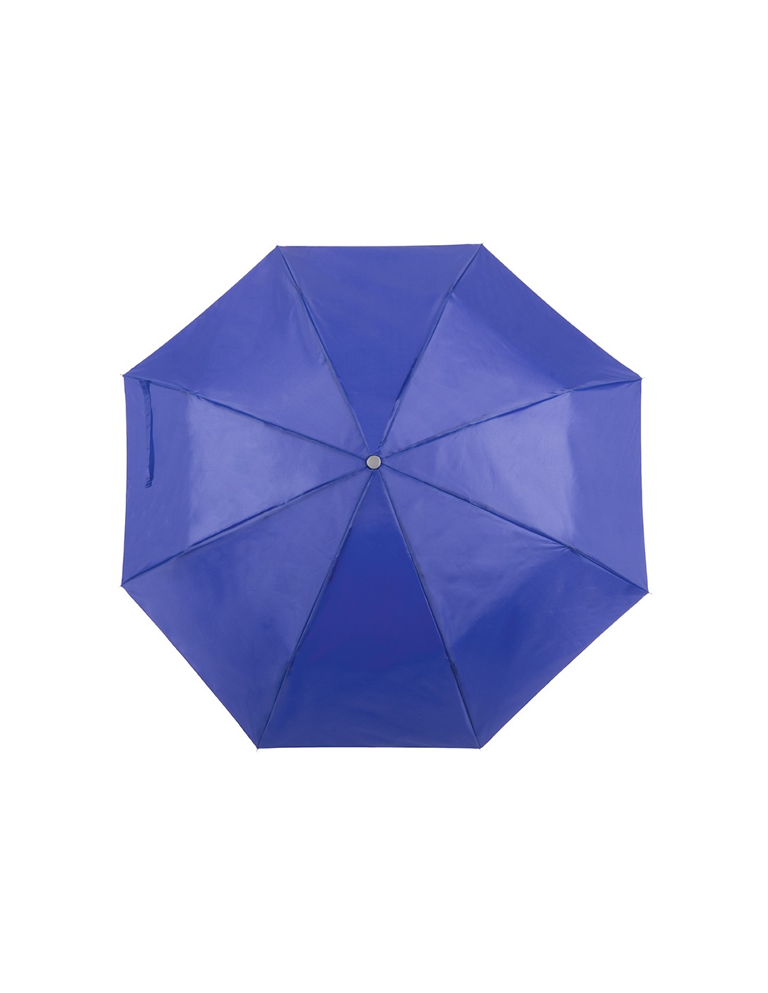 Paraguas plegable de 8 paneles de poliéster 170T en extensa gama de vivos colores y 96cm de diámetro. De apertura manual, con varillas metálicas en color plateado, cierre de velcro y cinta de transporte en mango ergonómico. Presentado en funda individual a juego.