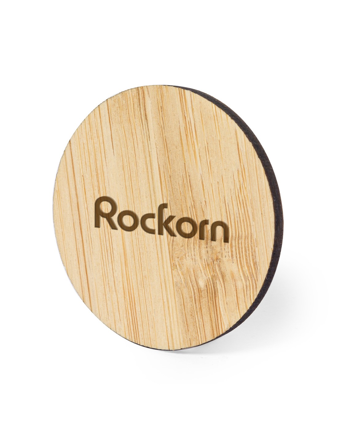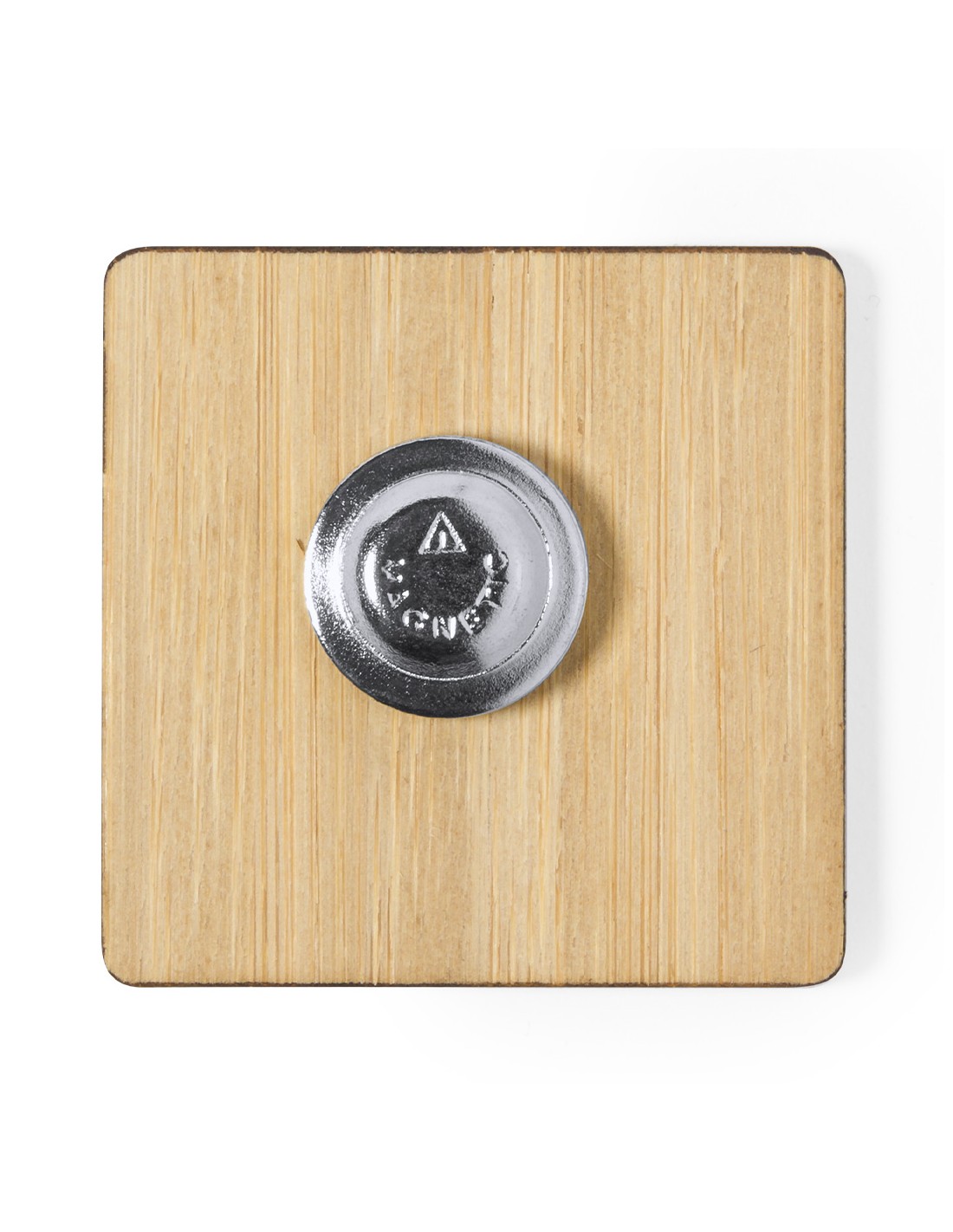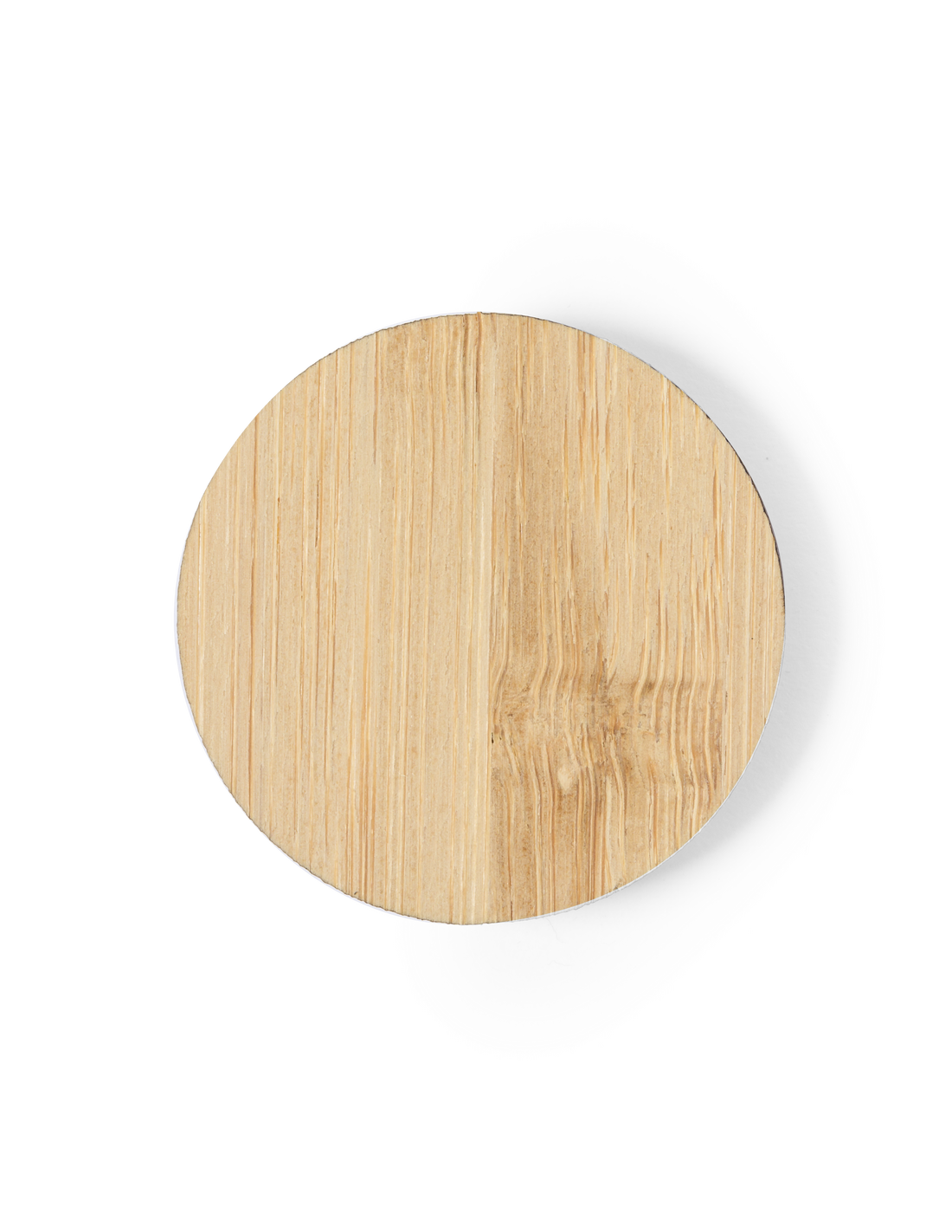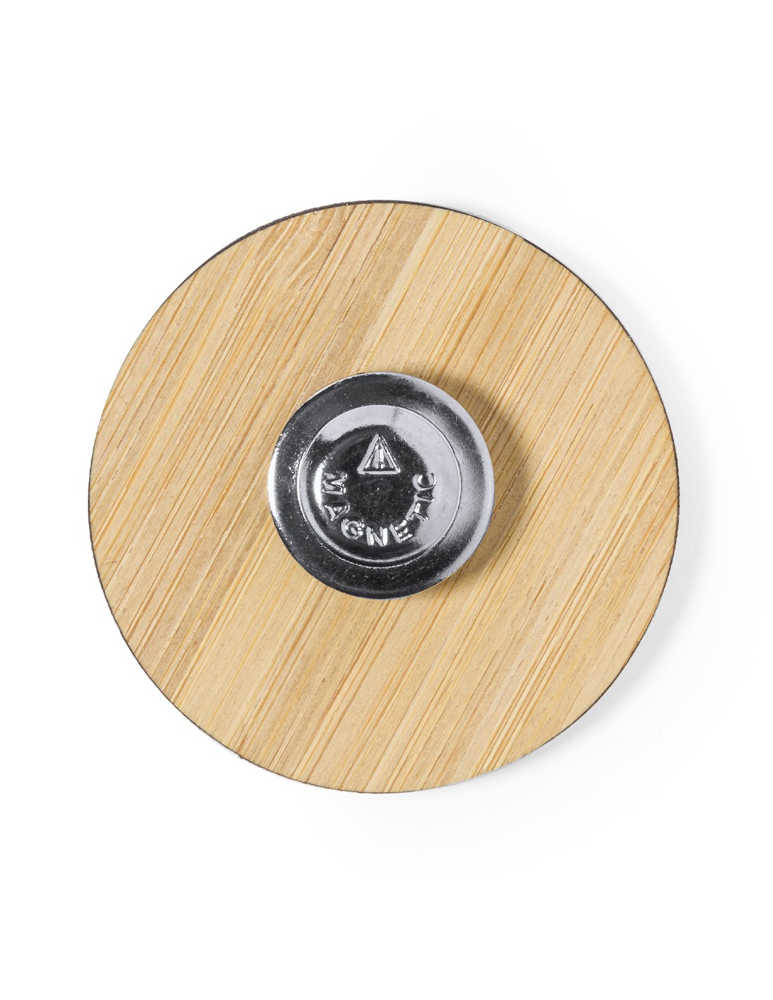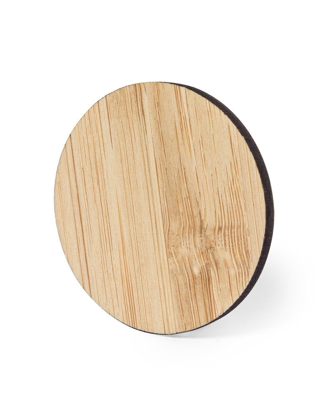 Pin de línea nature, hecho en bambú procedente de cortes naturales. De fabricación europea y disponible en diseños circular y cuadrado, con pin magnético.