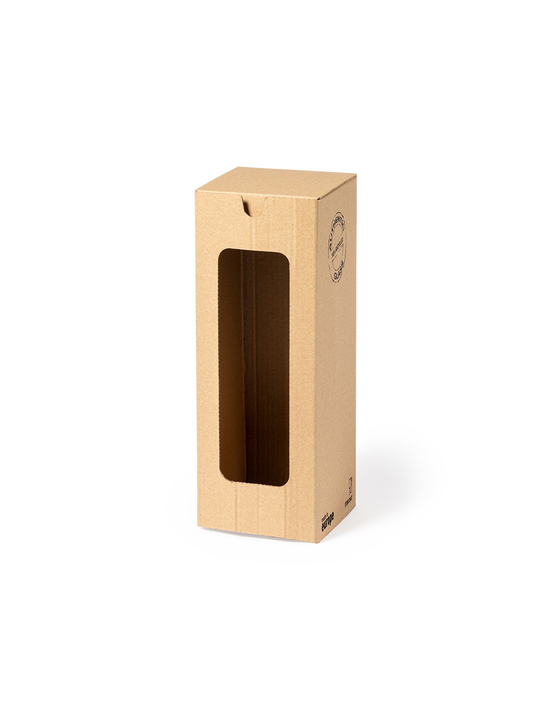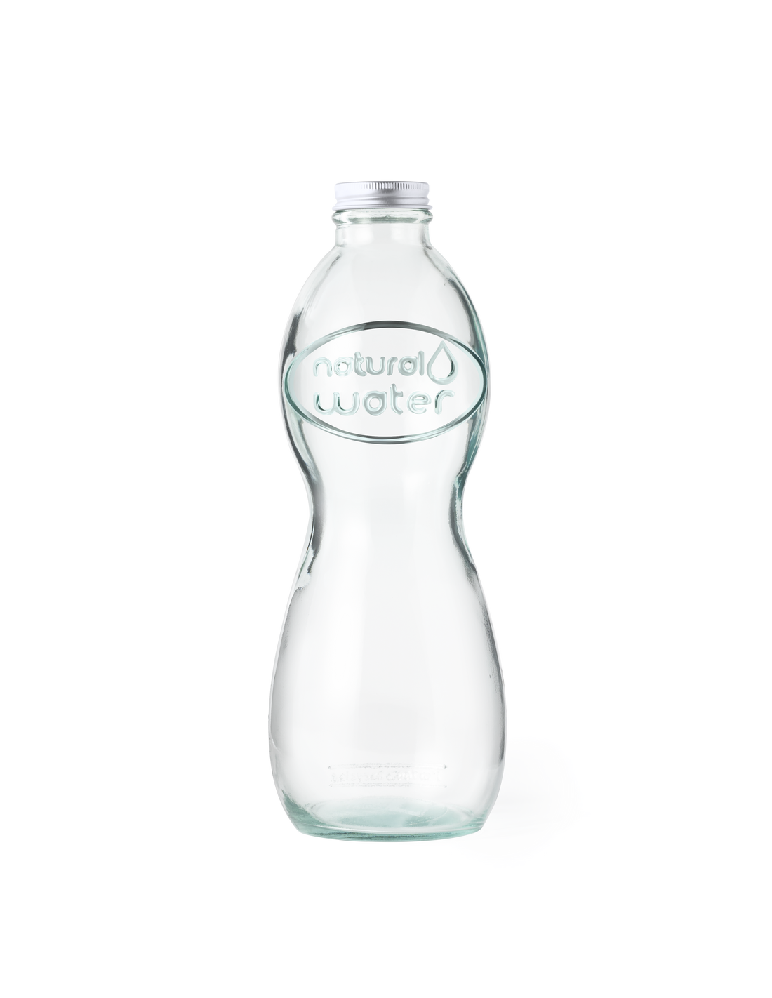 Botella de línea nature de 1l de capacidad, con tapón a rosca metálico. De fabricación europea y hecha en vidrio reciclado con acreditación GRS (Global Recycled Standard / Estándar de Reciclaje Global), que garantiza el origen reciclado del material usado para fabricar el producto. Presentado en estuche de cartón reciclado con ventana.