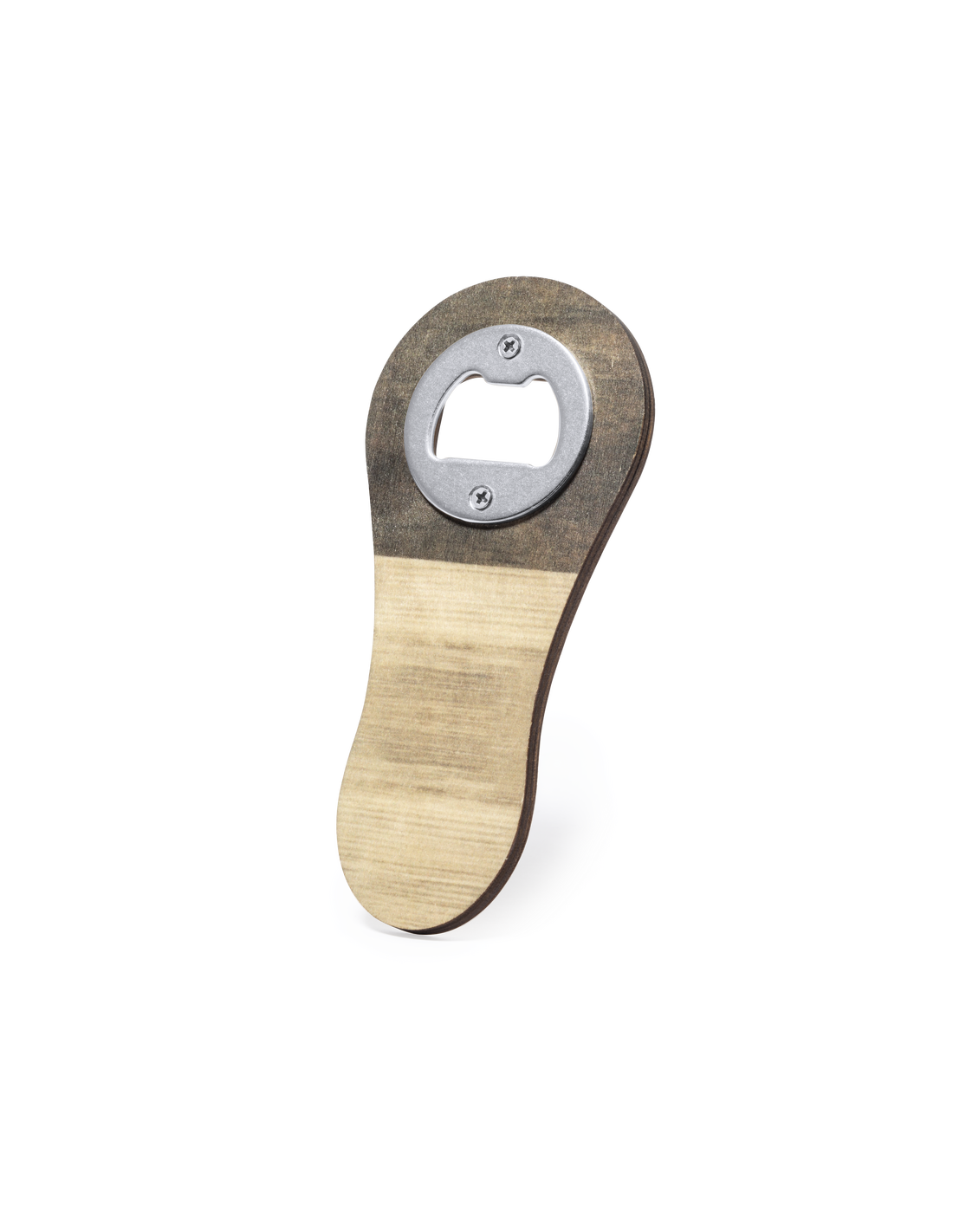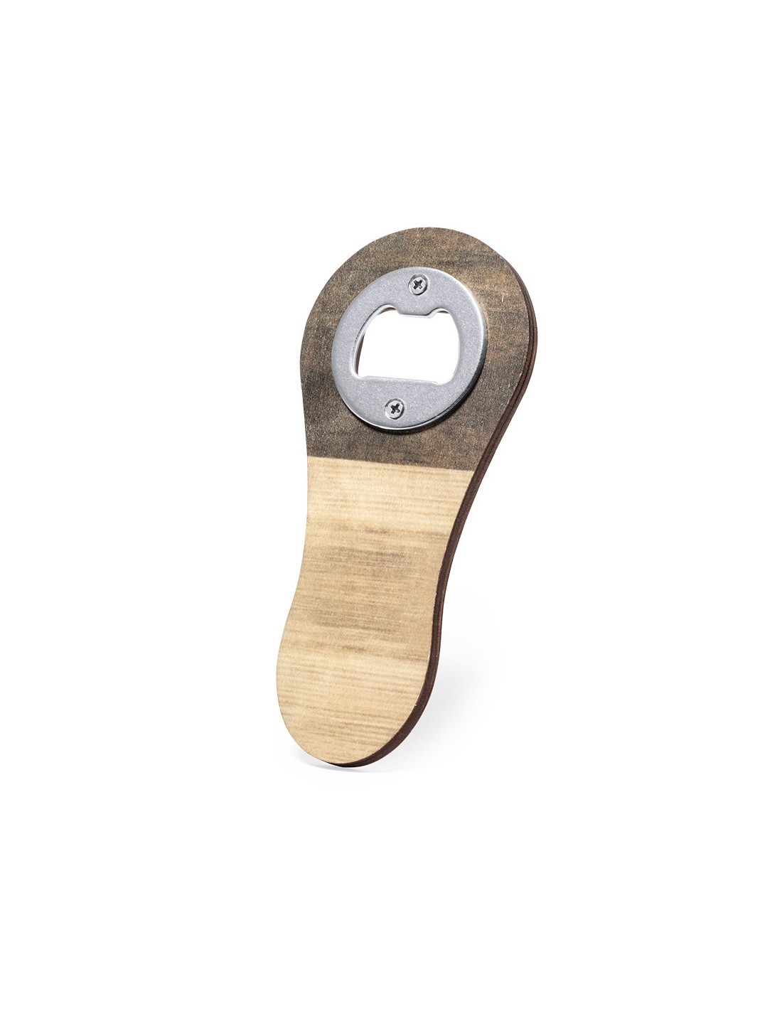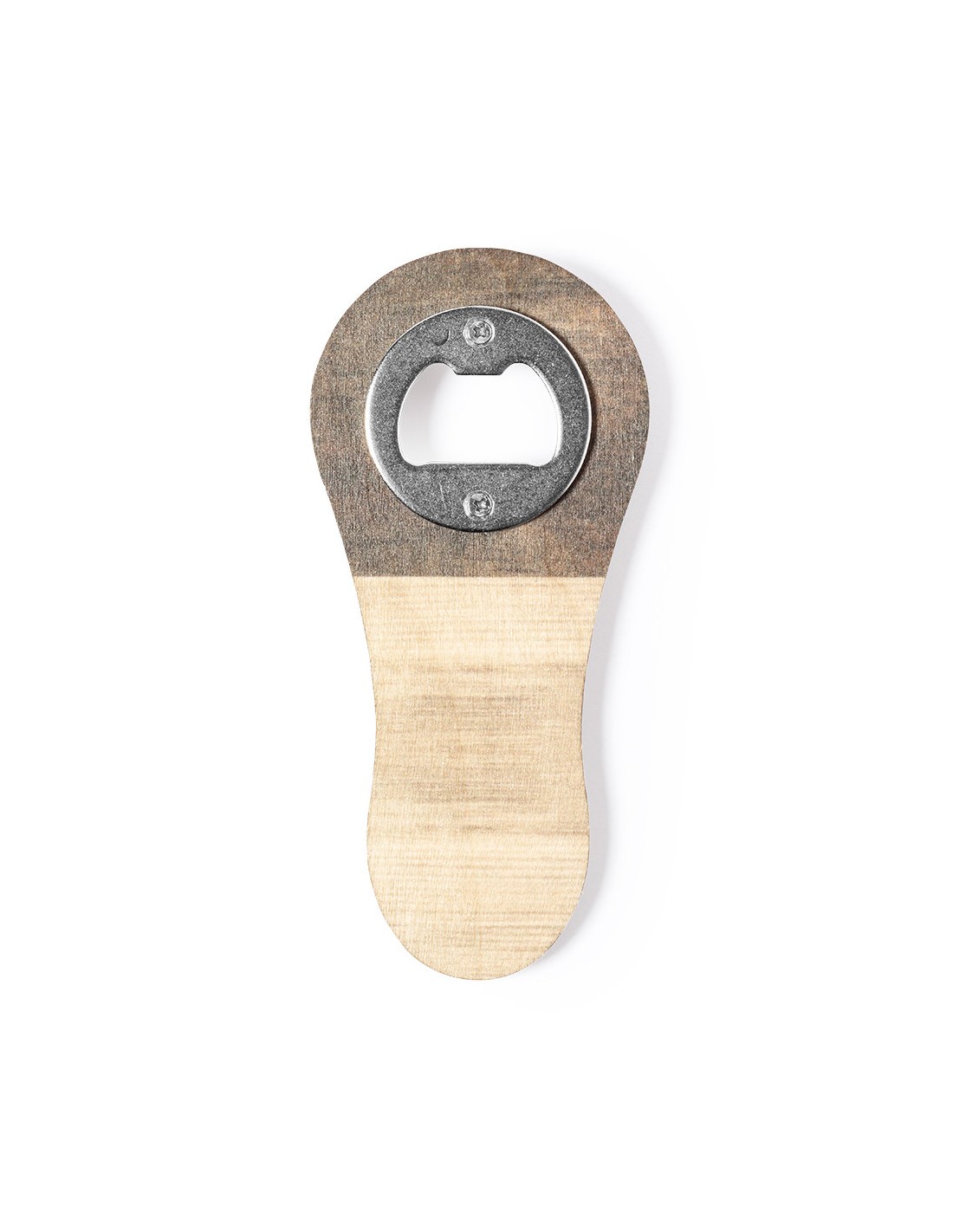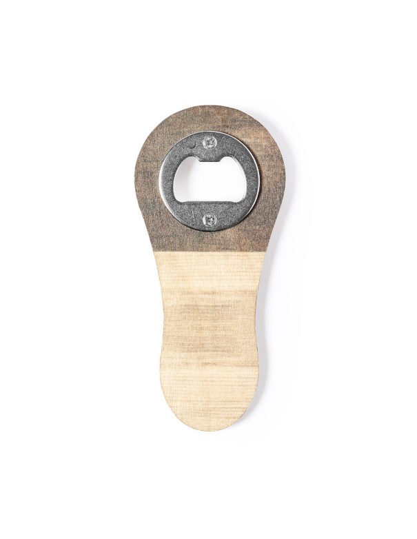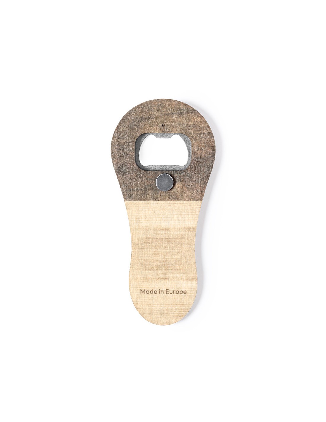 Abridor magnético fabricado en madera natural y de original acabado bicolor. Con mecanismo de apertura metálico, amplia superficie de marcaje y distintivo Made In Europe.