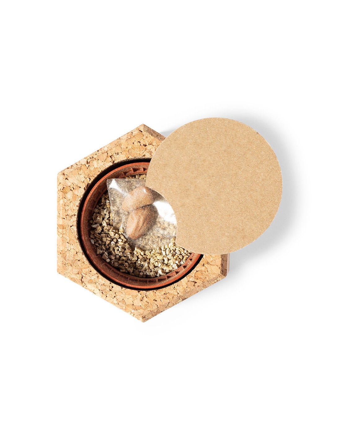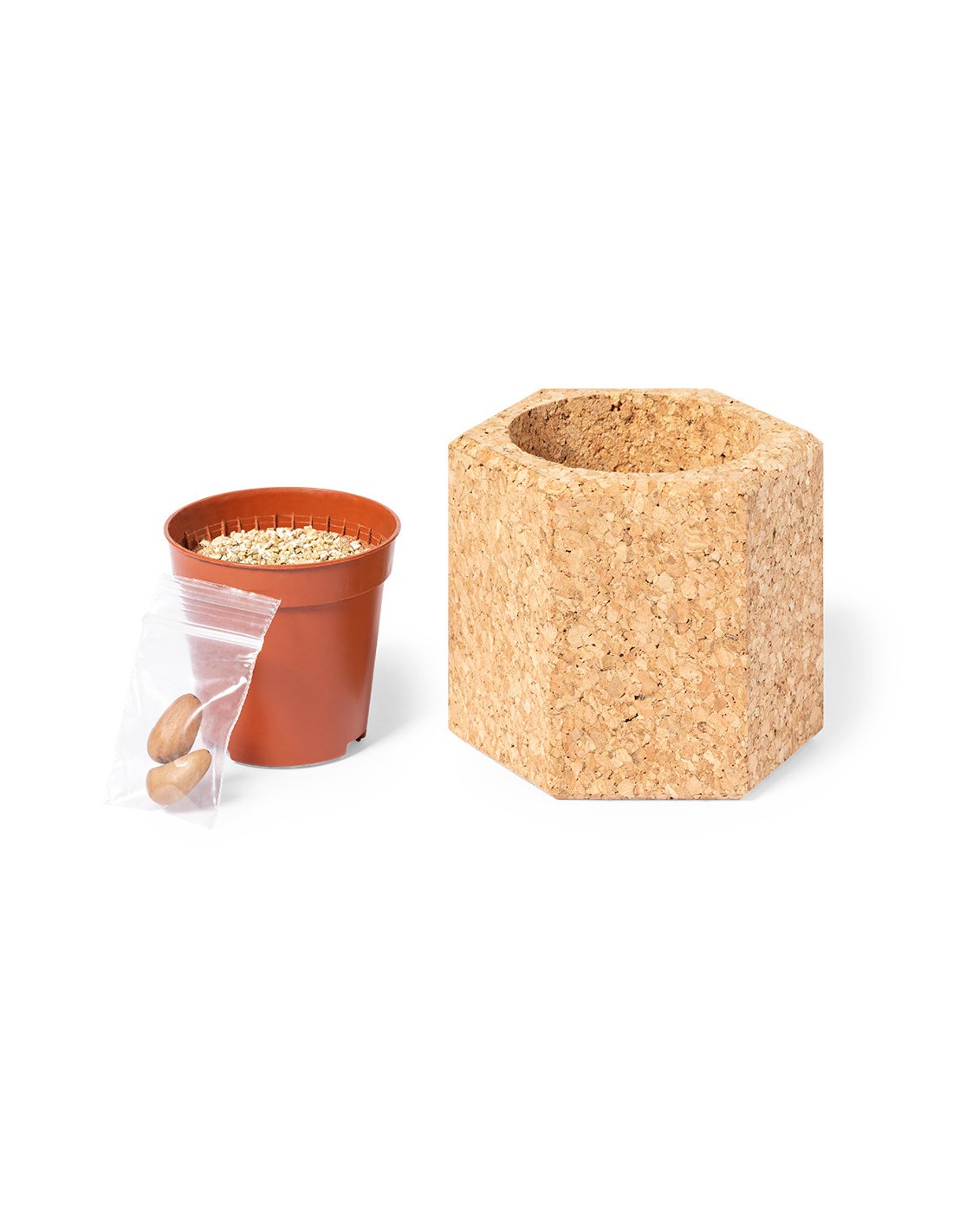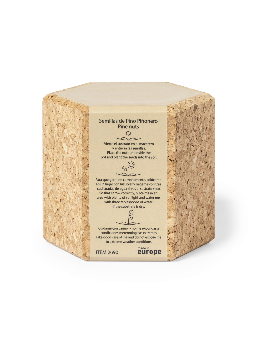 Maceta de línea nature con semillas de pino. Incluye sustrato, tiesto y viene presentada en un original recipiente de corcho natural. Incluye instrucciones de plantado y distintivo Made In Europe.