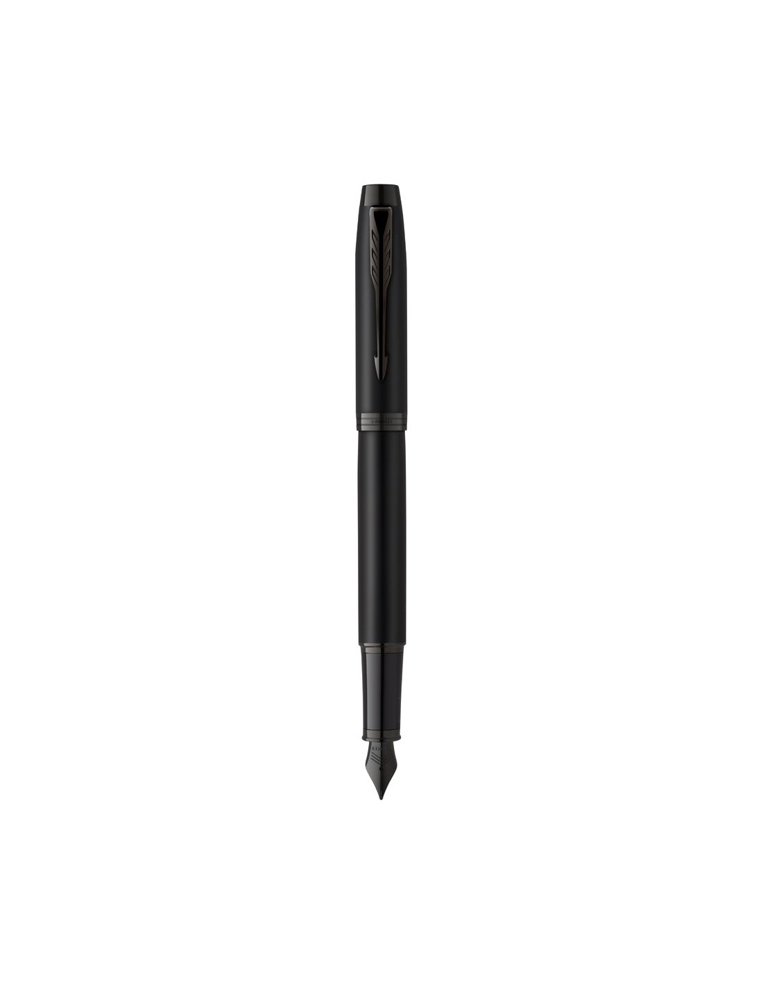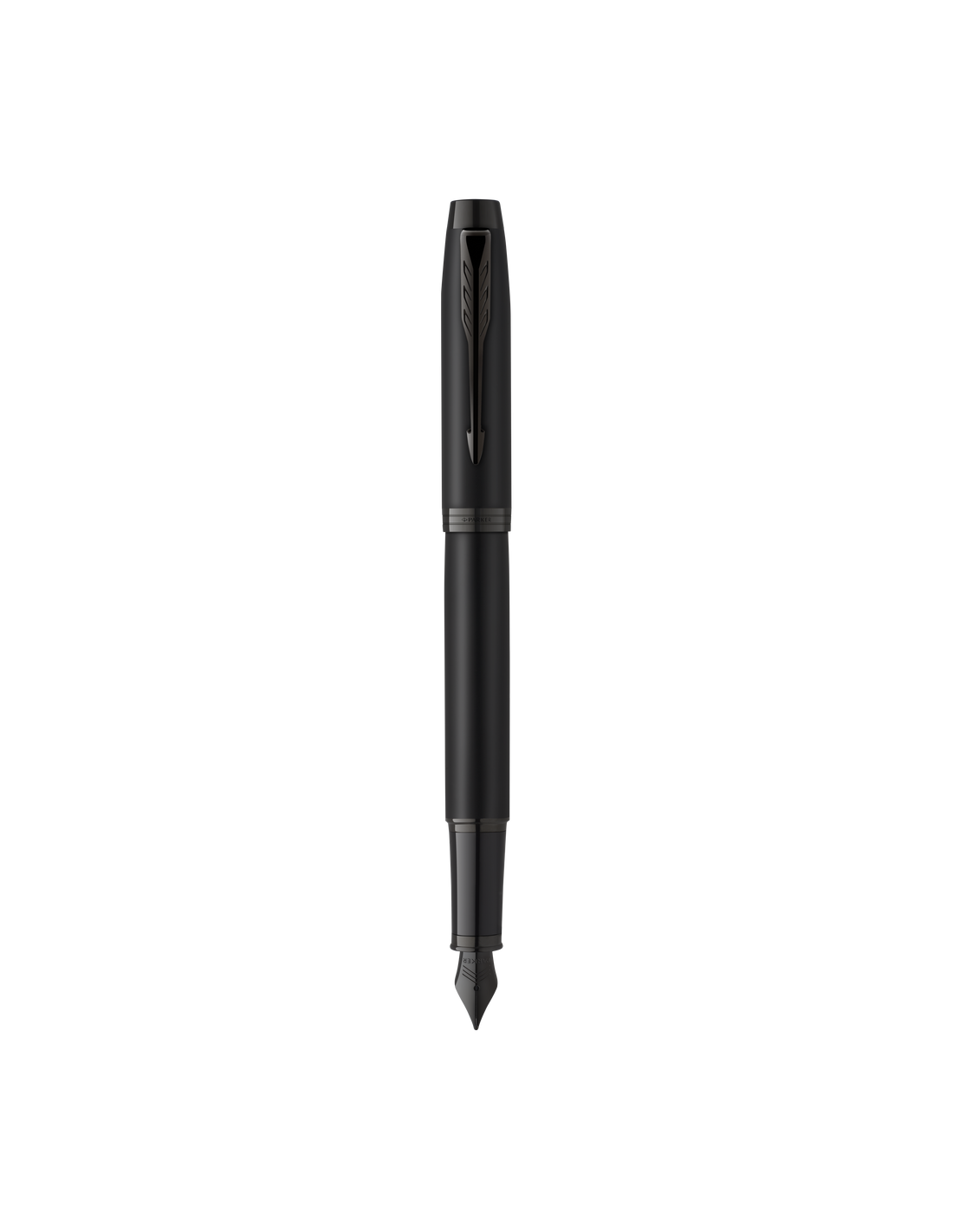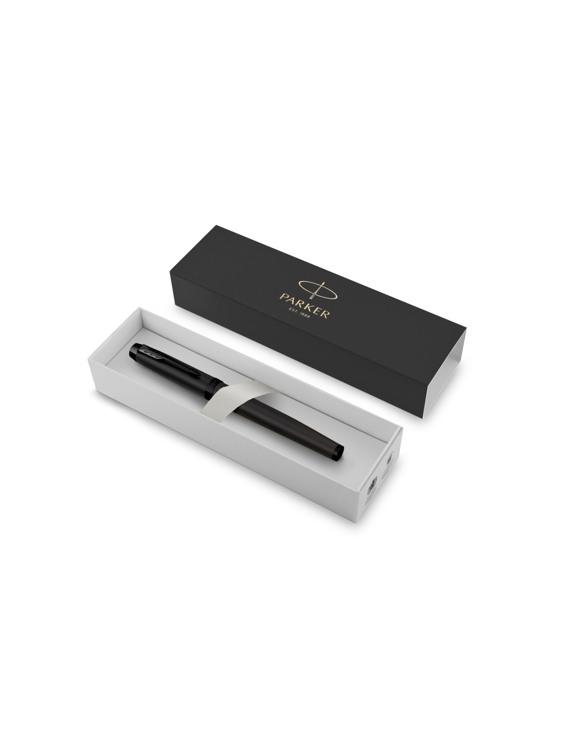 Pluma estilográfica Parker IM Achromatic, fabricado en acero inox de acabado lacado en negro mate y en tinta azul. Con adornos negros e inconfundible clip con la forma icónica en punta de flecha de la marca en la capucha. Un diseño elegante, refinado y de eficacia probada, complementado con una silueta moderna. Presentación en estuche individual negro con logotipo Parker. Parker IM es la gama de entrada al universo Parker, cuidada en cada detalle y pensada para el uso intensivo diario. Con tinta Parker Quink, que ofrece una escritura fluida y fiable sobre el papel.