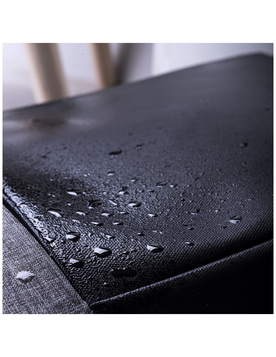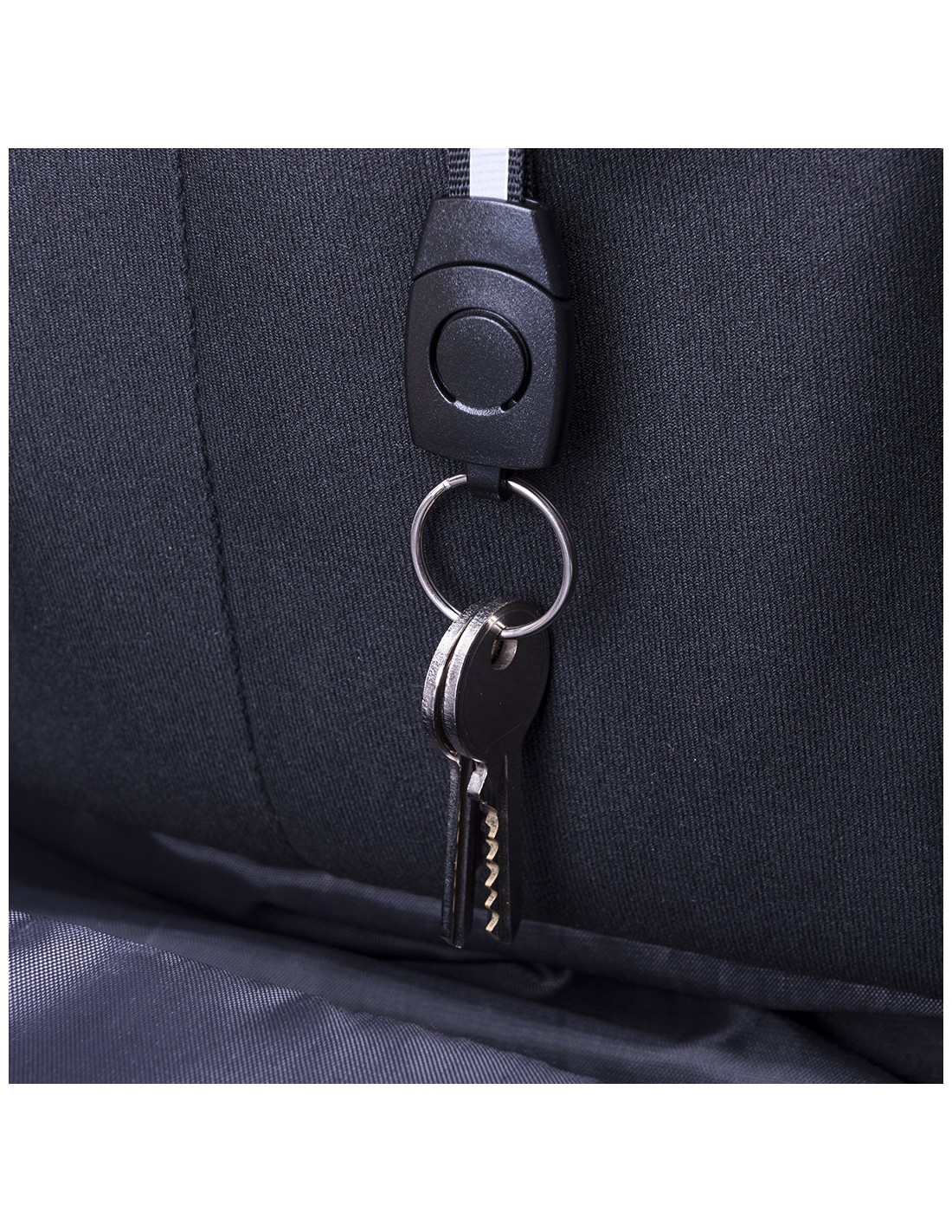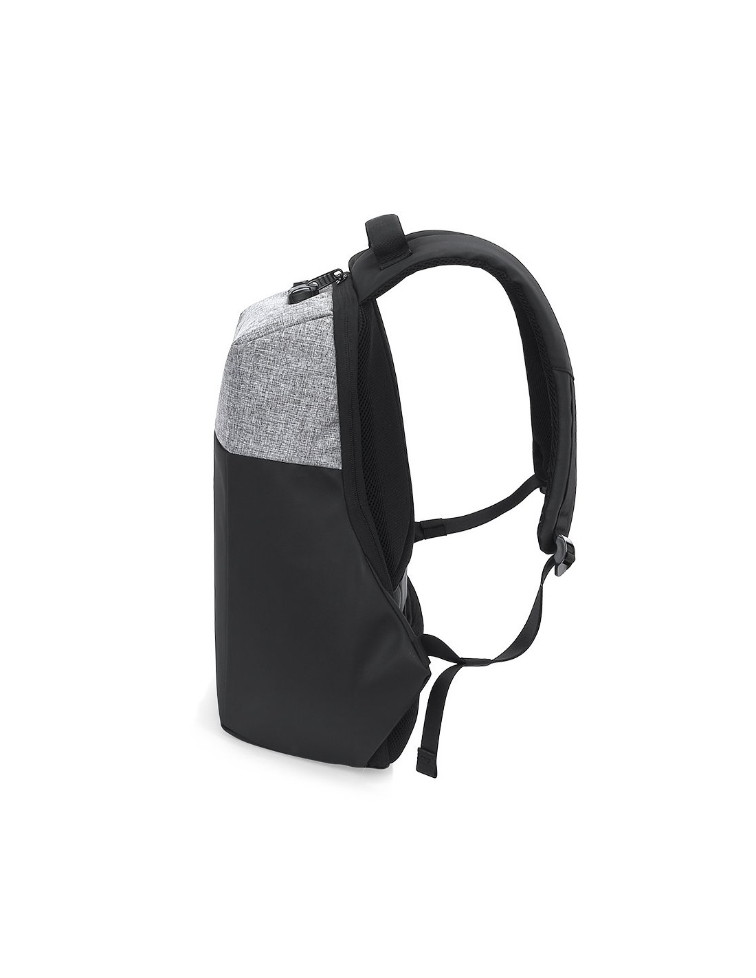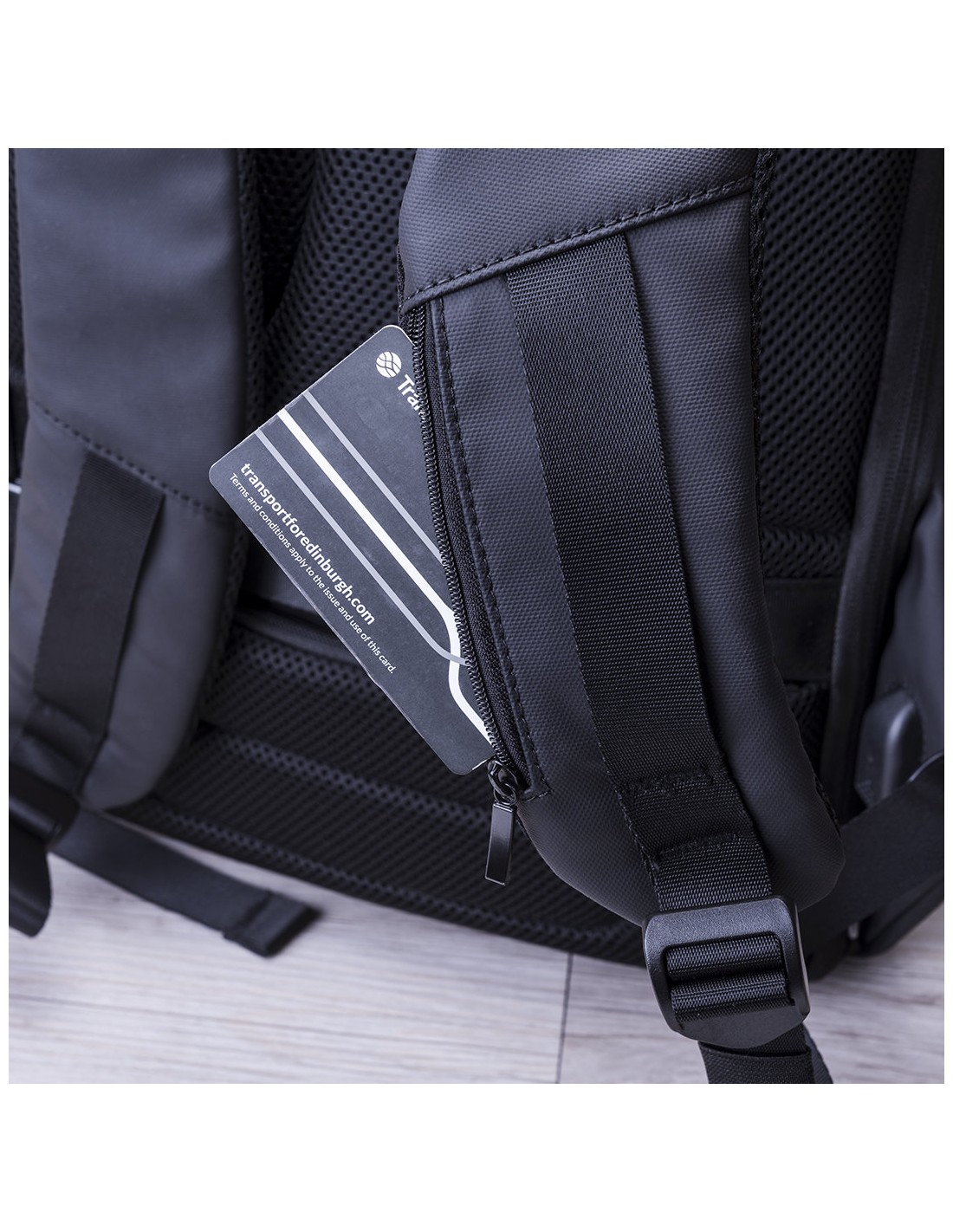 Mochila de negocios antirrobo repelente al agua en poliéster de alta calidad, resistente a cortes y a roces. Con candado de seguridad por contraseña, cinta reflectante trasera y accesorio para acople en trolley. Bolsillo antirrobo en la espalda para guardar objetos de valor. Compartimento interior con salida USB para conexión de powerbank -no incluido-, con cable micro USB de 1 metro de largo para total comodidad en la carga de cualquier dispositivo móvil. Salida para auriculares y bolsillo en cinta derecha con fácil acceso para tarjeta de transporte y otros documents de uso frecuente. Apertura total 180º para fácil acceso al interior de la mochila. Dos compartimento interiores independientes y acolchados para ordenador portátil de hasta 15 pulgadas y para tablets de hasta 10 pulgadas. Con multitud de bolsillos interiores y exteriores. Cintas de hombros y espalda con acolchado ergonómico.