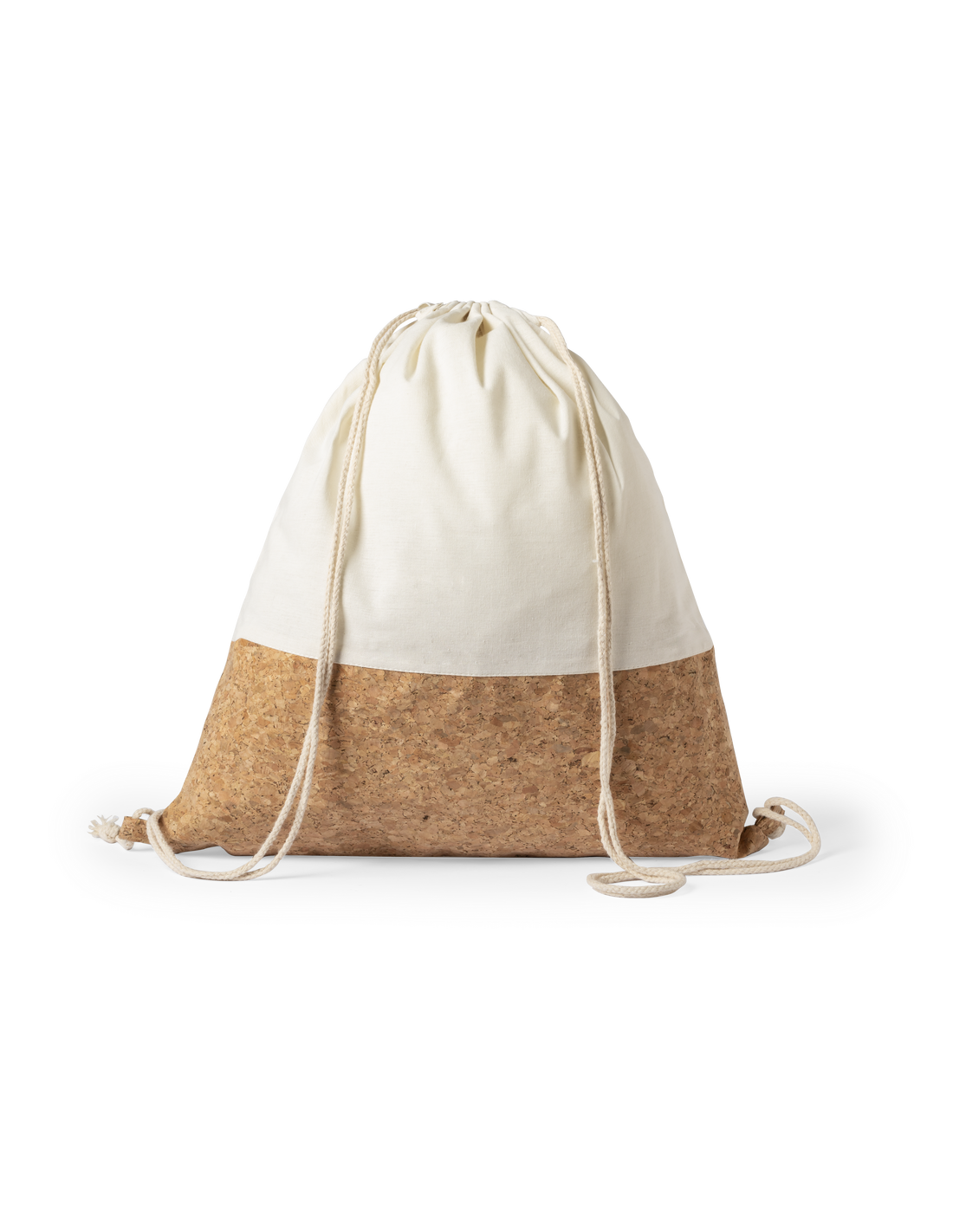 Mochila de cuerdas de línea nature en suave algodón y corcho natural.Cuerdas autocierre en tono natural y esquinas reforzadas.