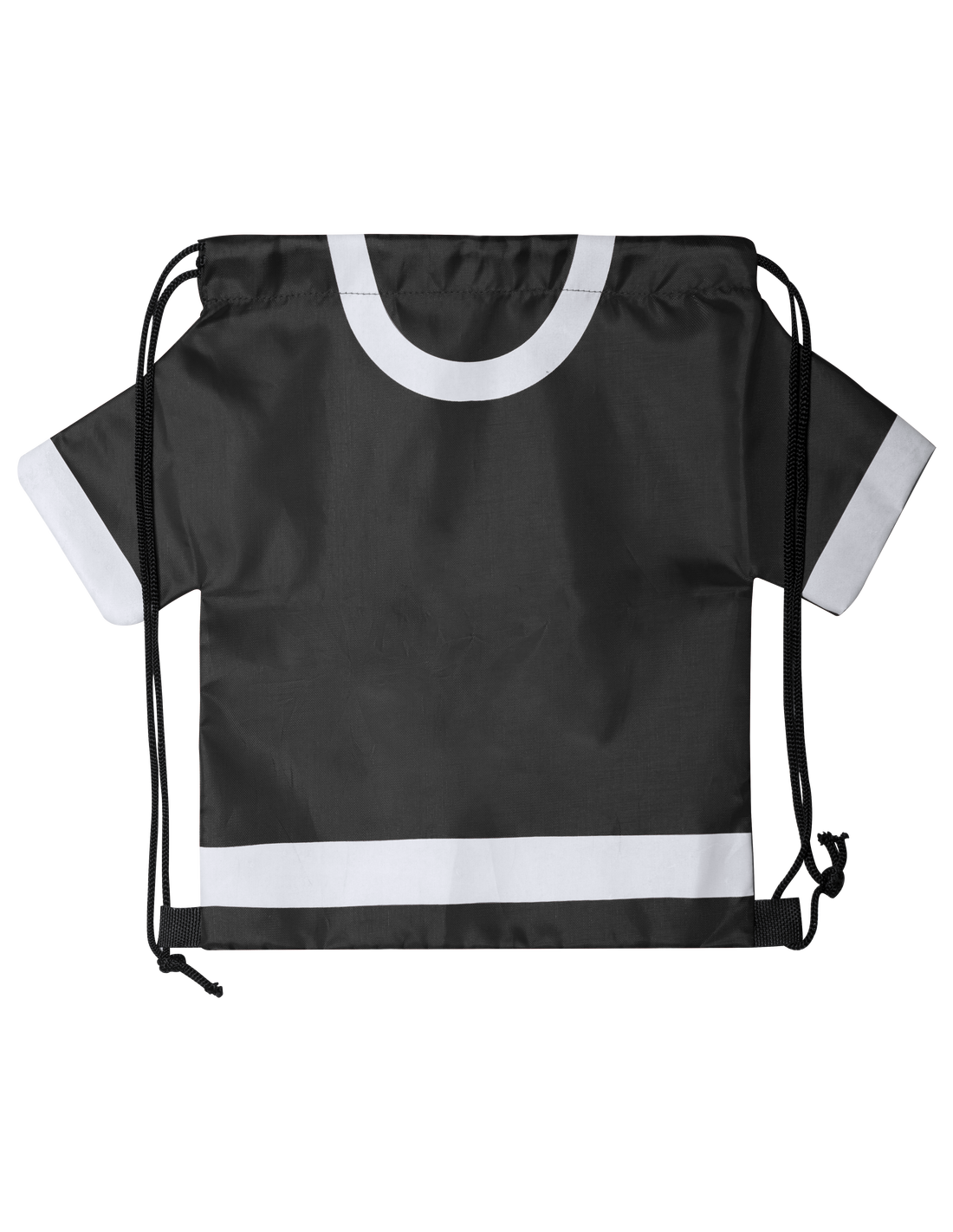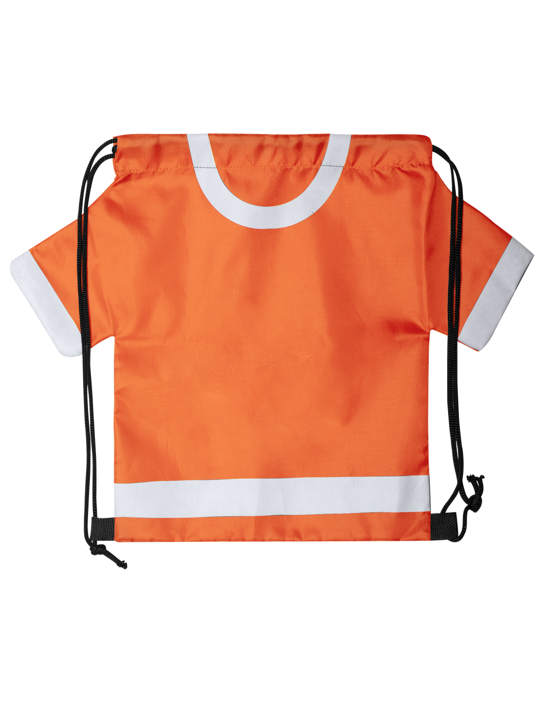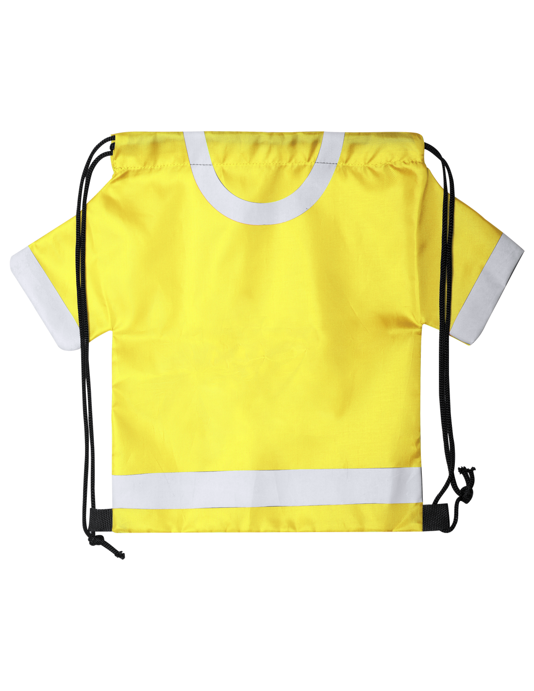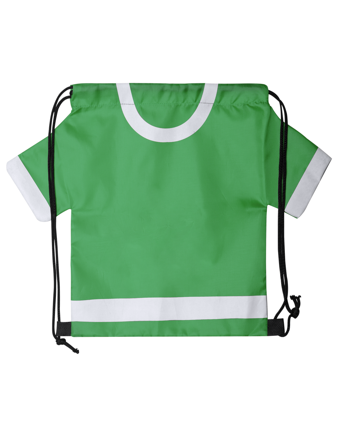 Original y divertida mochila de cuerdas para adulto en forma de camiseta. En suave poliéster 210D, con cuerdas autocierre en color negro y esquinas reforzadas. disponible en variada gama de colores intensos.