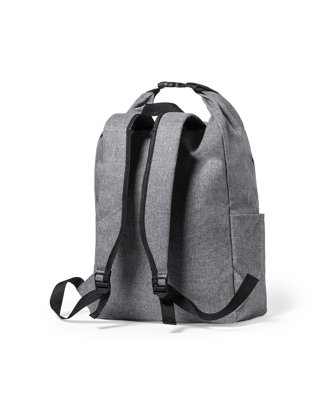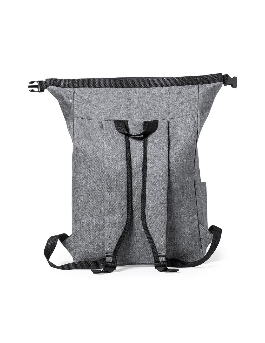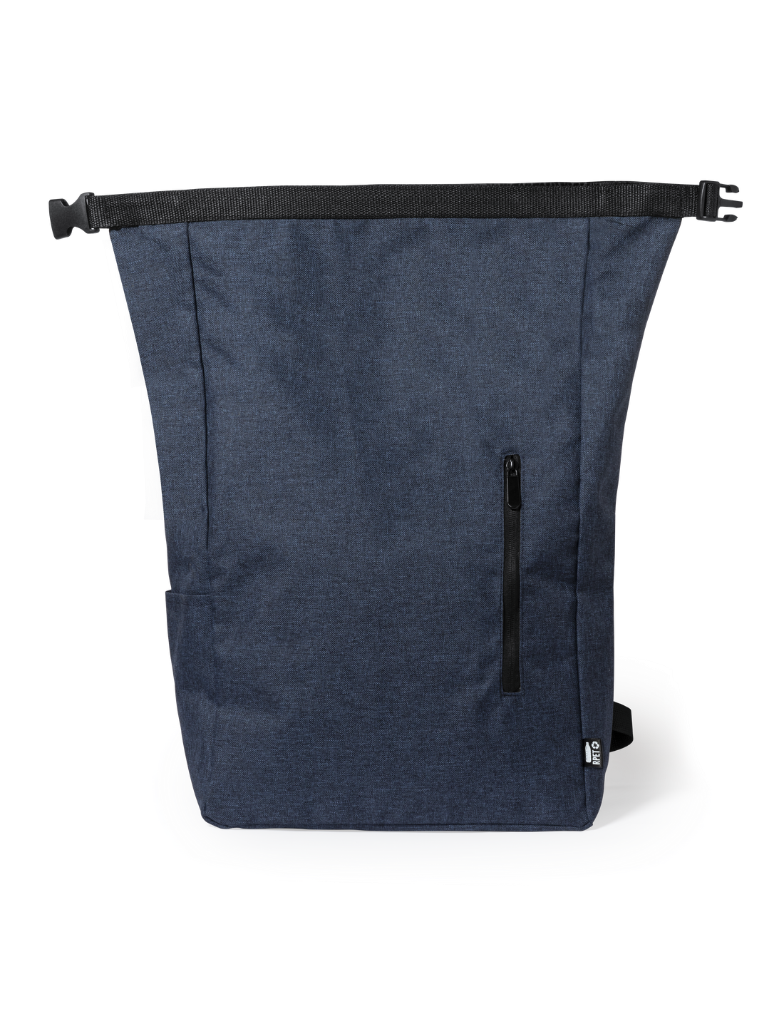 Mochila de línea nature fabricada en resistente 300D RPET, elaborado a partir de plástico reciclado, para así fomentar la reutilización de residuos plásticos y contribuir a la sostenibilidad del planeta. Bolsillo principal con cierre de hebilla y bolsillo lateral. Cintas acolchadas ajustables para hombro y distintivo RPET en etiqueta exterior.