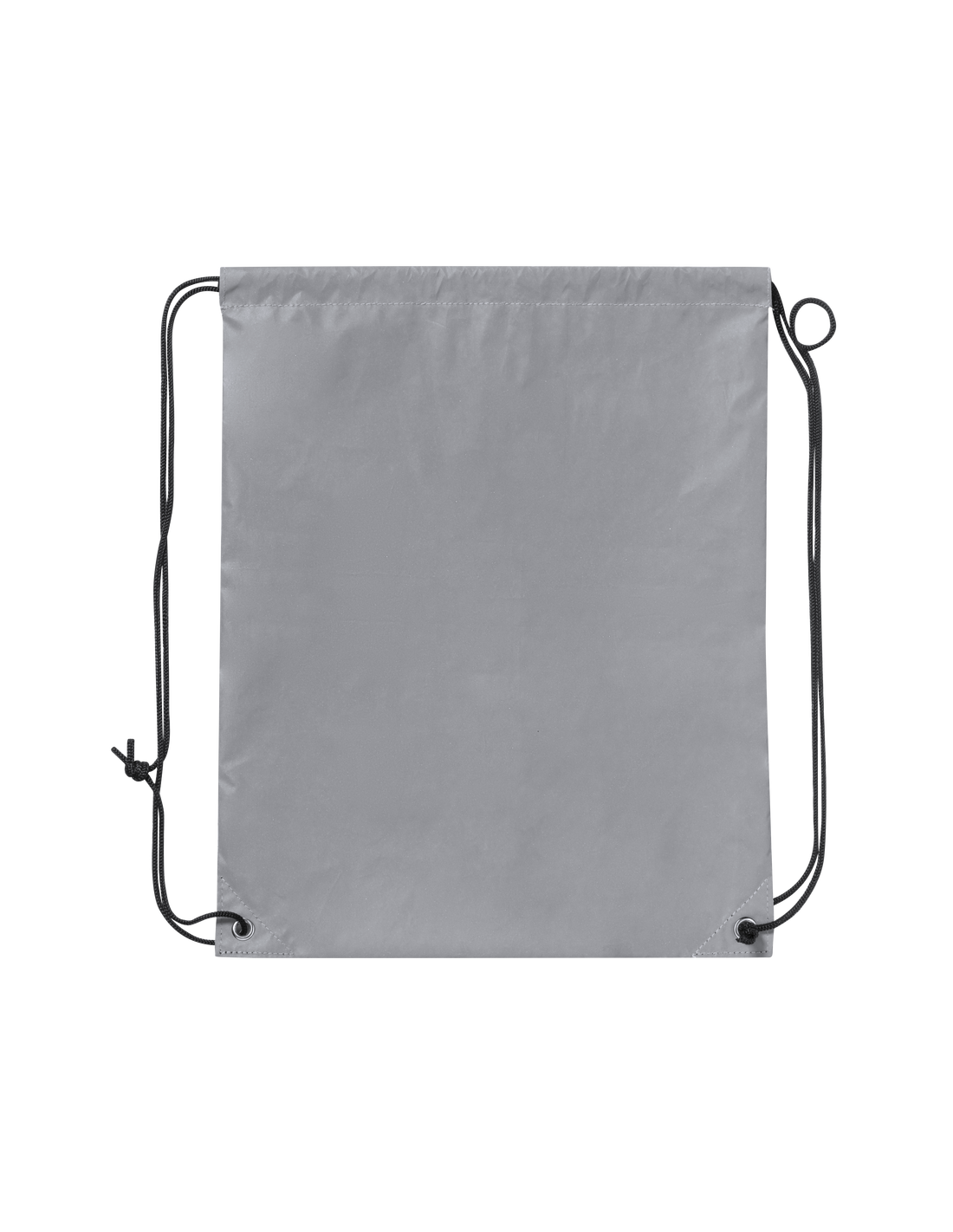 Mochila de cuerdas de suave poliéster 210T. Fabricada empleando tejido con gran capacidad para reflejar intensamente la luz, gracias a millones de pigmentos reflectantes y basándose en el principio de la retro-reflexión de la luz, una propiedad de visibilidad nocturna que consiste en la refracción de la luz hacia la fuente de origen de la misma. Con cuerdas autocierre en color negro y argollas metálicas. Resistencia hasta 7kg de peso y resistente al agua.
