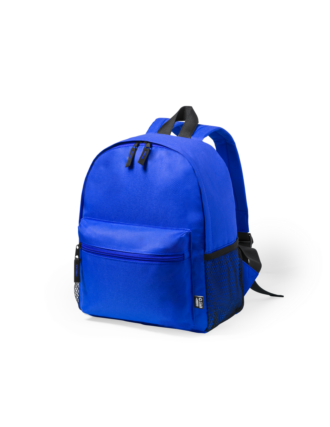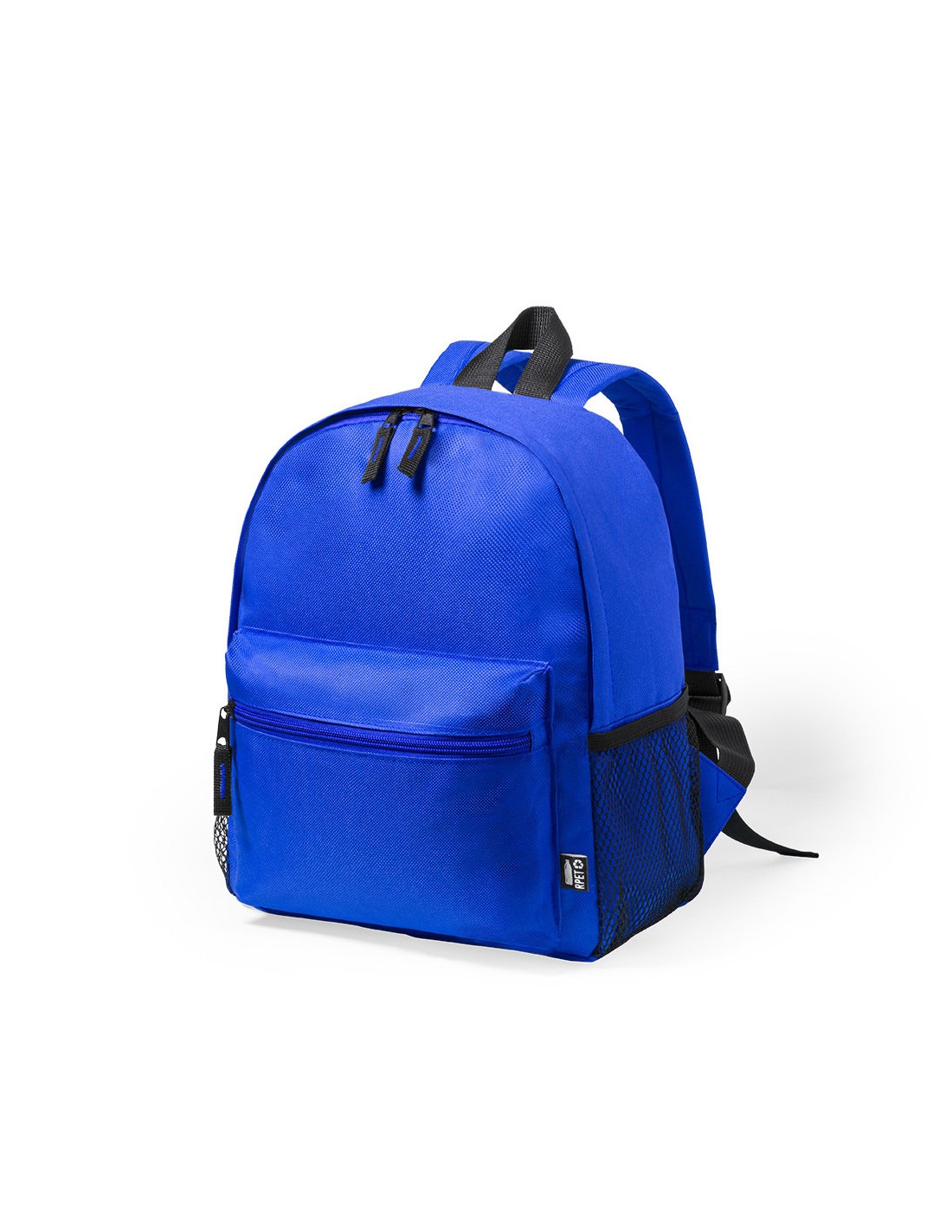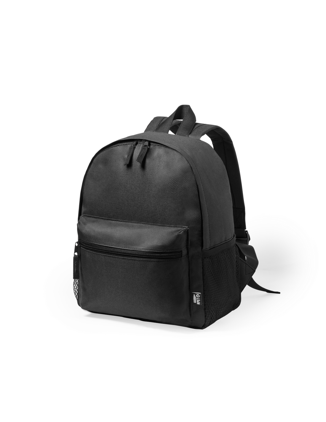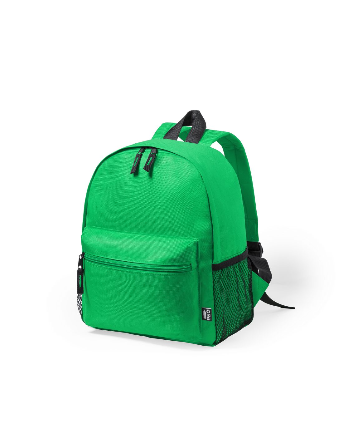 Mochila para niños en resistente 600D RPET, elaborado a partir de plástico reciclado, para así fomentar la reutilización de residuos plásticos y ayudar a la sostenibilidad del planeta. Con cierre de cremallera y bolsillo en frontal, tiradores con cinta para fácil apertura y bolsillos laterales de redecilla. Espalda y cintas de hombros acolchadas y ajustables. Distintivo RPET en etiqueta y disponible en variada gama de colores.