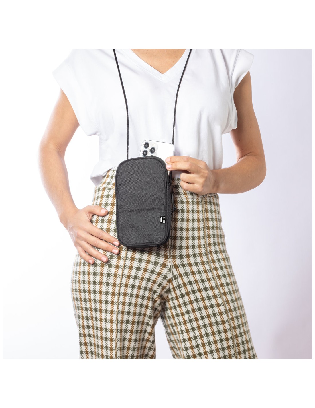 Clásico portamóvil de línea nature, fabricado en resistente poliéster 600D RPET. Compartimento principal con cierre de cremallera invisible a juego y tirador de cordón. Con cinta bandolera a juego, bolsillo exterior, e interior forrado. Disponible en variada gama de colores, con etiqueta RPET en bolsillo exterior. El material RPET se elabora a partir de plástico reciclado, para así fomentar la reutilización de residuos plásticos y ayudar a la sostenibilidad del planeta.