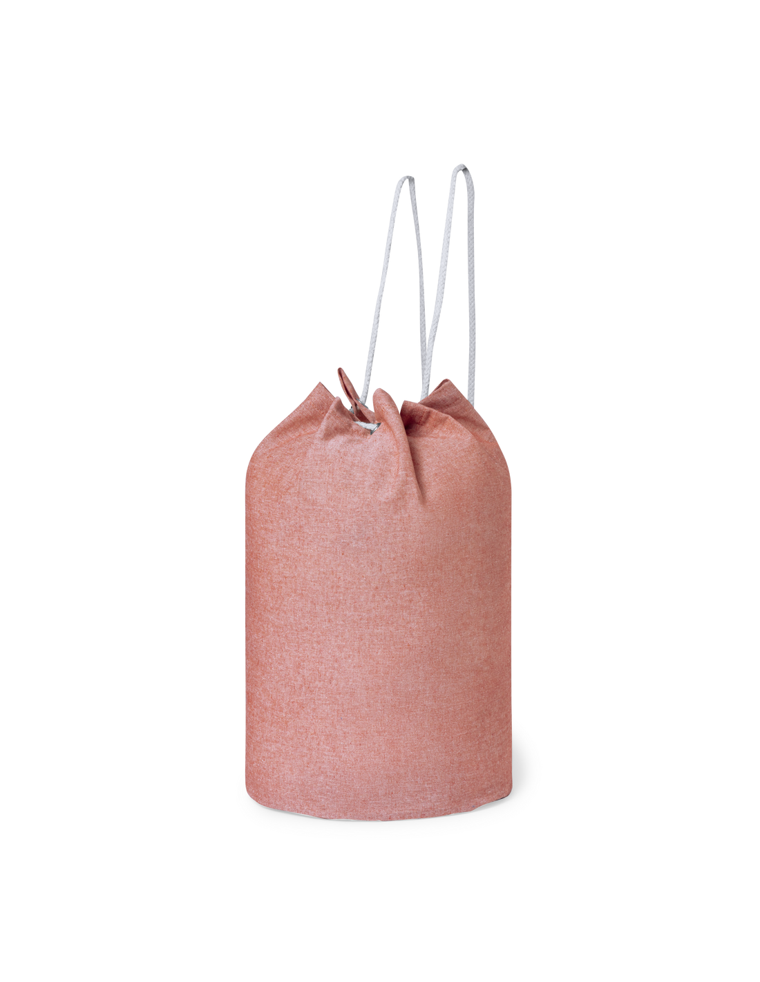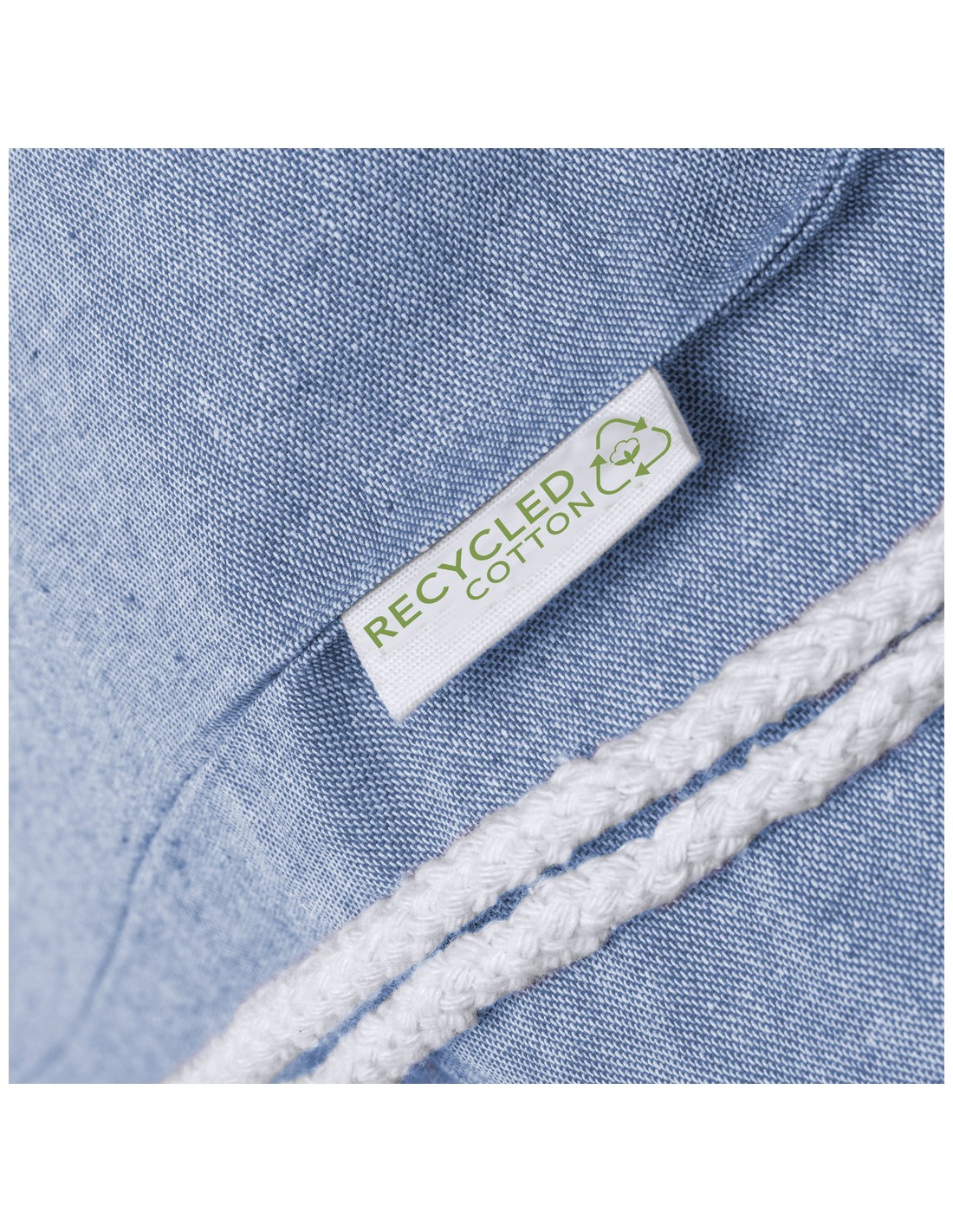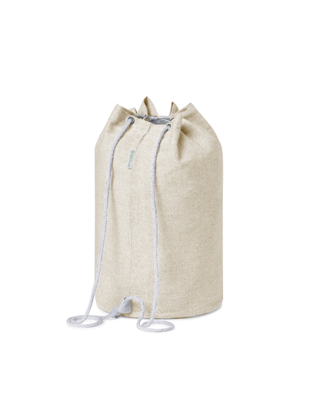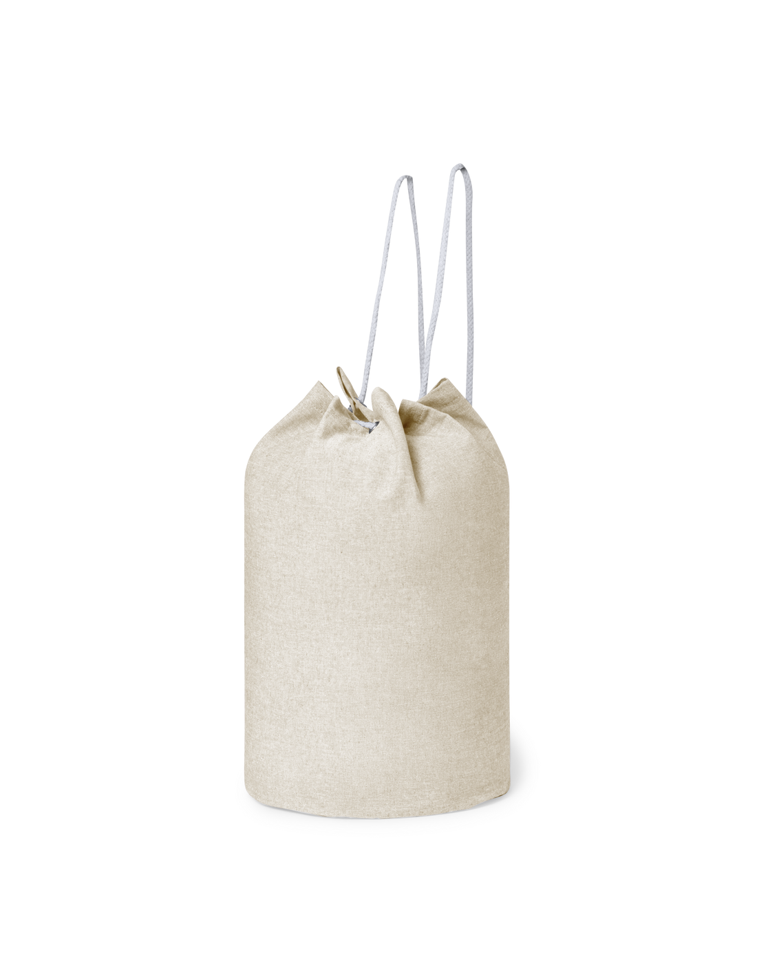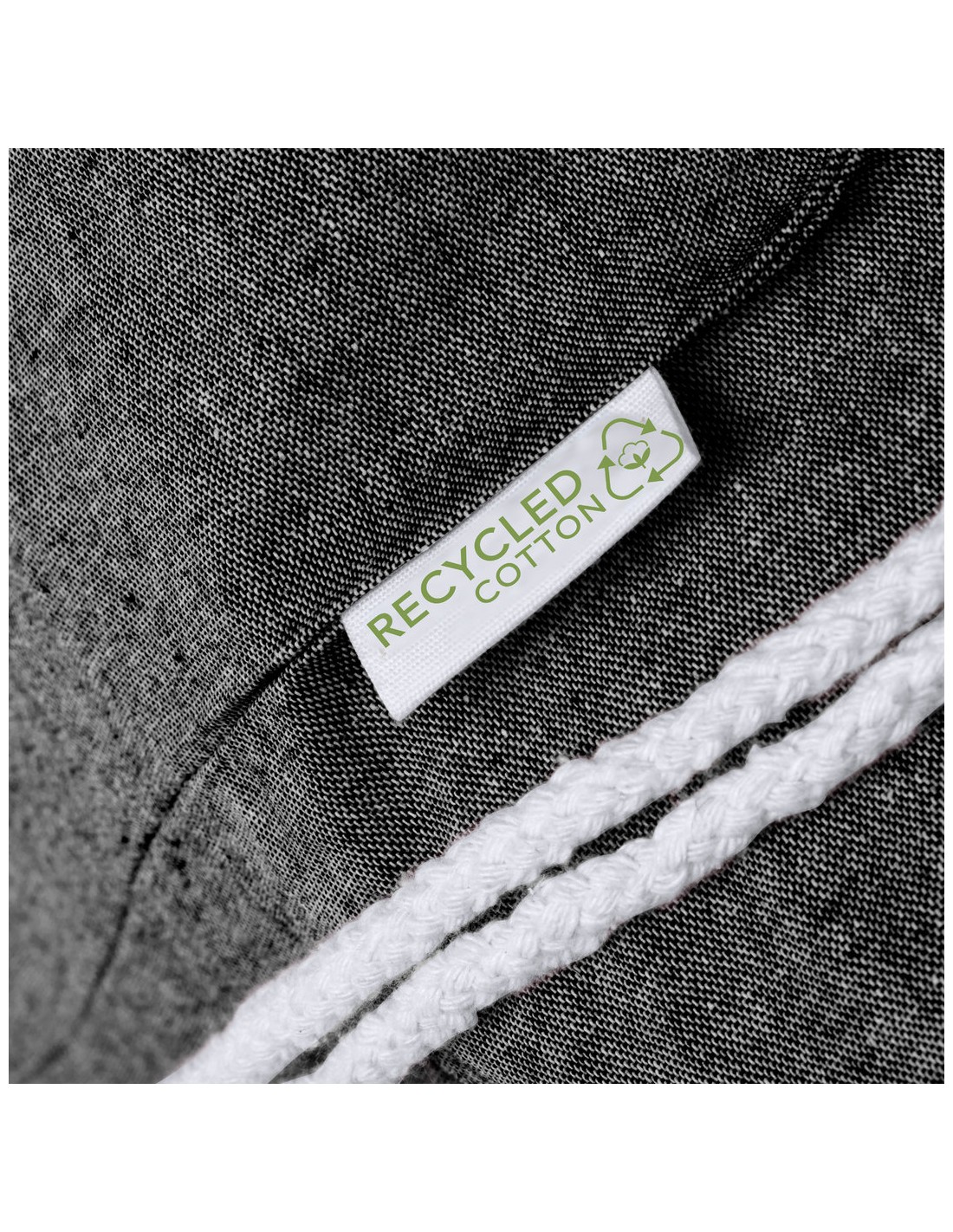 Petate de línea nature fabricado en 100% algodón reciclado de 200g/m2. Con cordón de cierre en algodón y resistentes argollas metálicas. Disponible en variada gama de colores, con distintivo algodón reciclado en etiqueta exterior. Certificación GRS (Global Recycled Standard / Estándar de Reciclaje Global), que garantiza el origen reciclado del material usado para fabricar el producto
