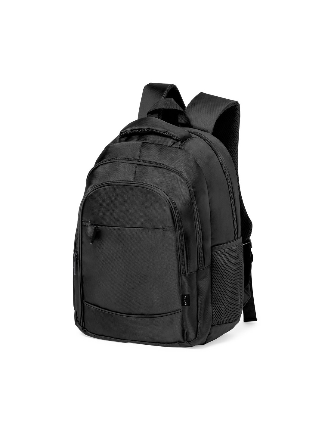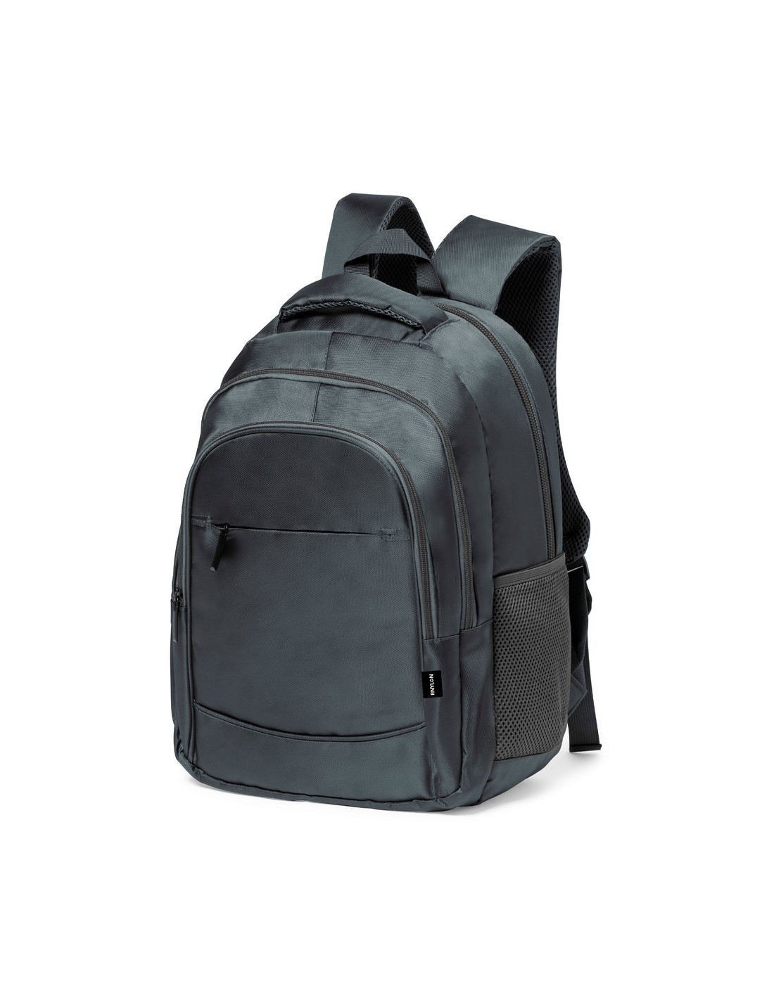 Mochila de calidad premium fabricada en RNYLON 420D. Compartimento principal con cierre de cremallera a juego y doble tirador. Incluye 3 bolsillos exteriores de cremallera y 2 bolsillos laterales de redecilla. Acolchado en asa, parte trasera y cintas para hombros, que además son ajustables. Interior con compartimento acolchado para ordenador portátil de hasta 15 pulgadas y accesorio en espalda para ajuste en trolley. Disponible en variada gama de colores, con distintivo reciclado en etiqueta exterior.El material RNYLON se elabora a partir de plástico reciclado, para así fomentar la reutilización de residuos plásticos y ayudar a la sostenibilidad del planeta.