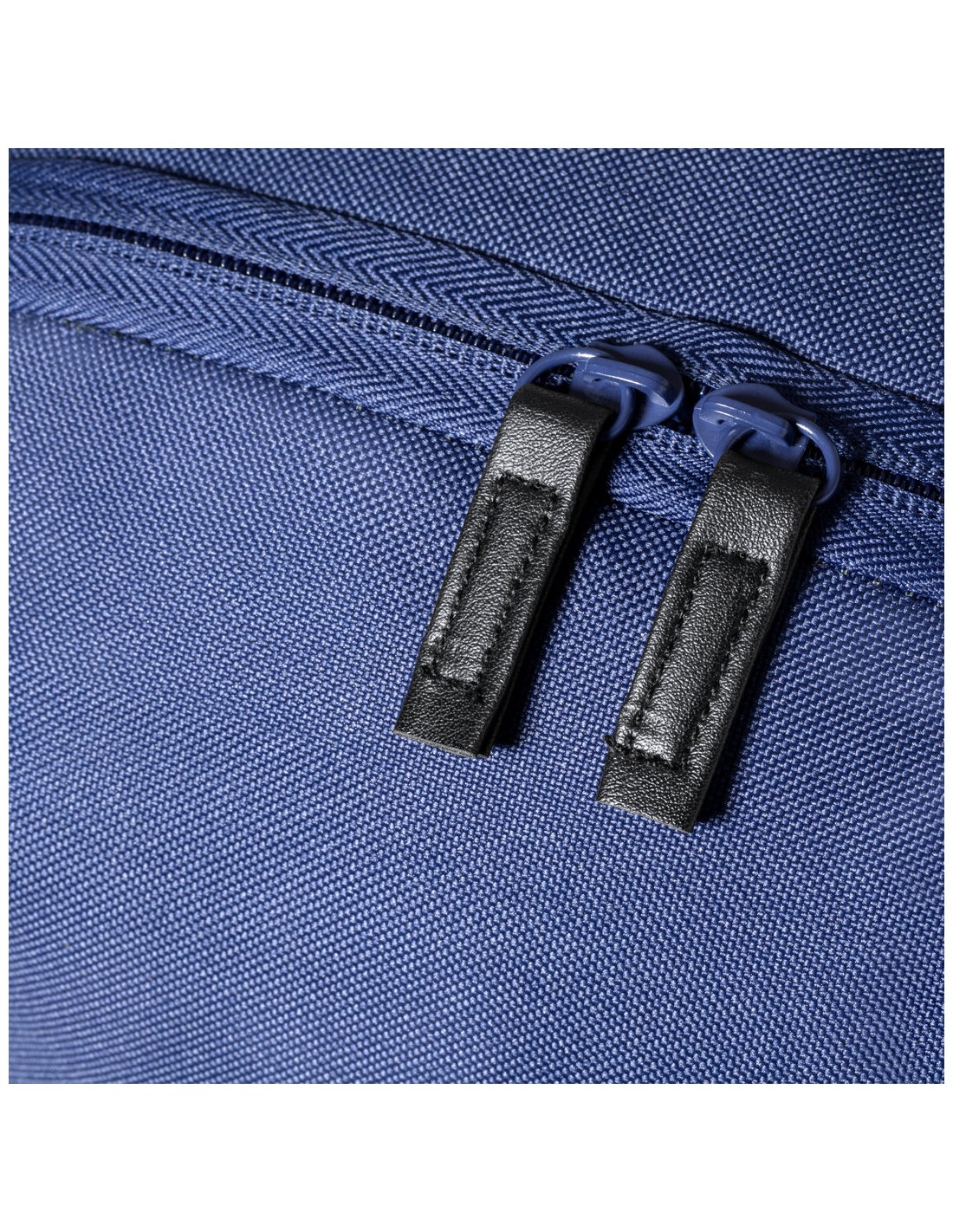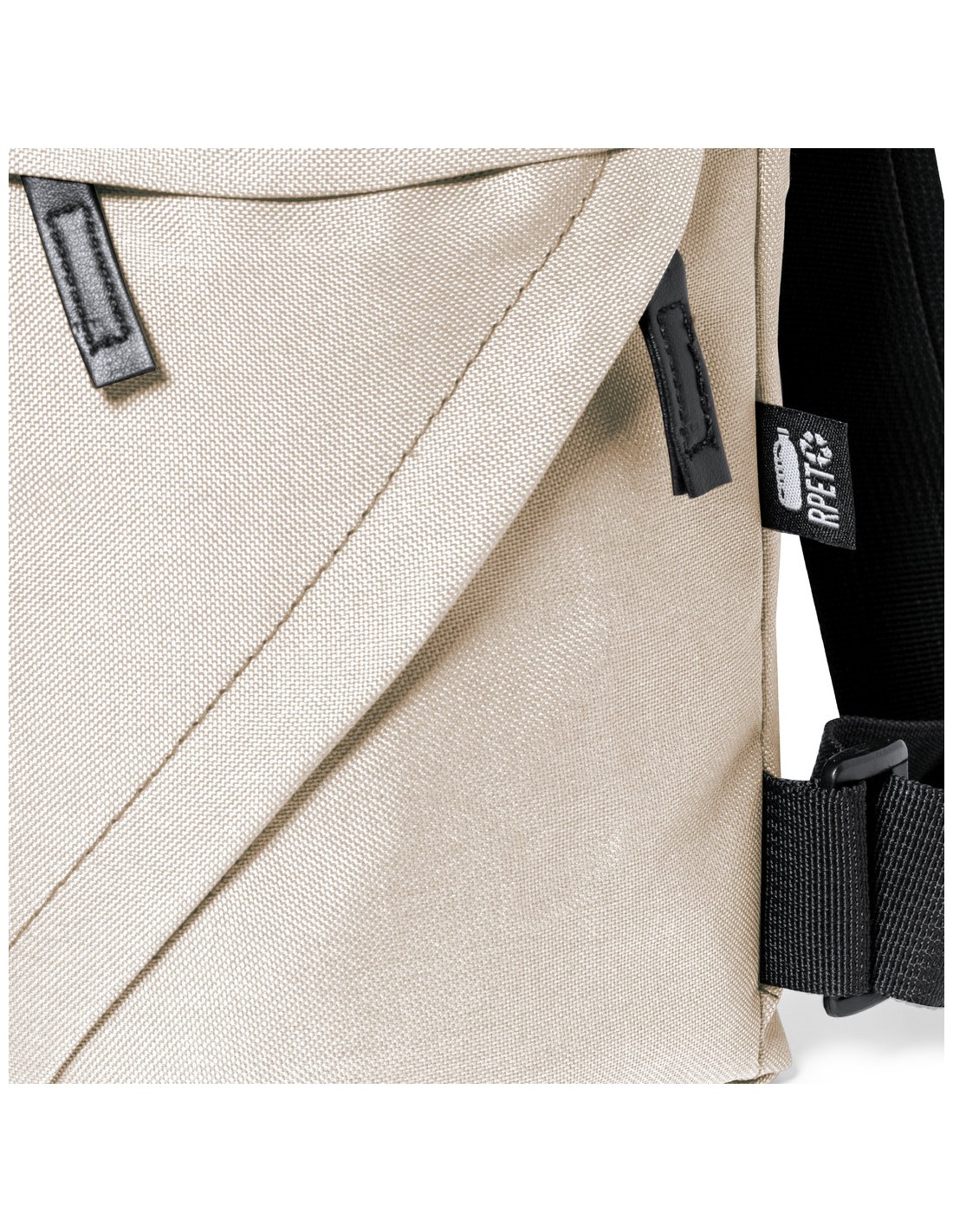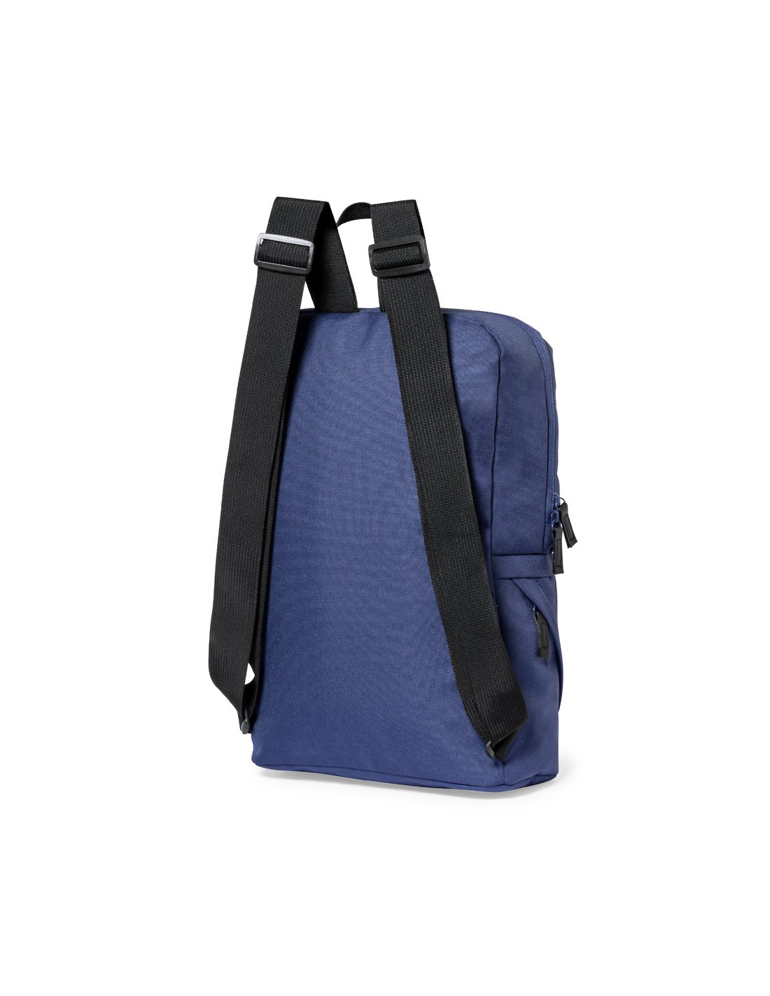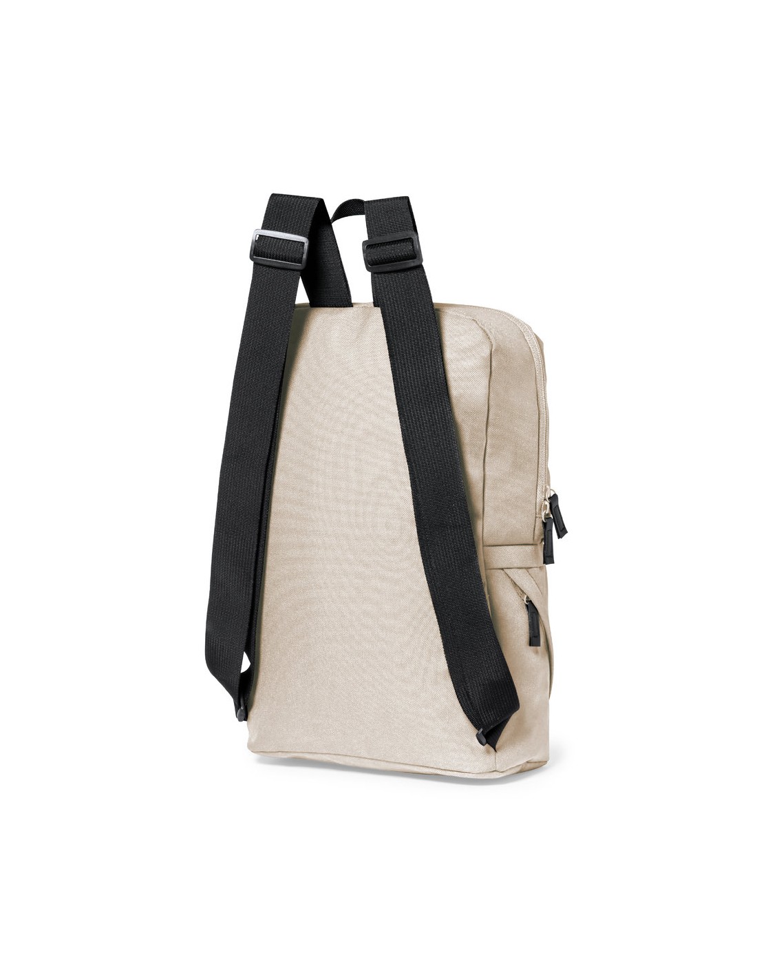Mochila fabricada en resistente poliéster 600D RPET. Compartimento principal con cierre de cremallera invisible, doble bolsillo exterior y cintas para hombros ajustables. Disponible en variada gama de colores, con distintivo RPET en etiqueta exterior. El material RPET se elabora a partir de plástico reciclado, para así fomentar la reutilización de residuos plásticos y ayudar a la sostenibilidad del planeta.