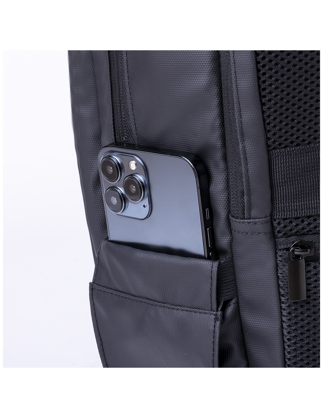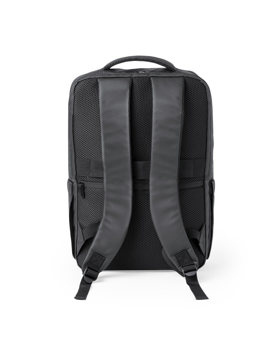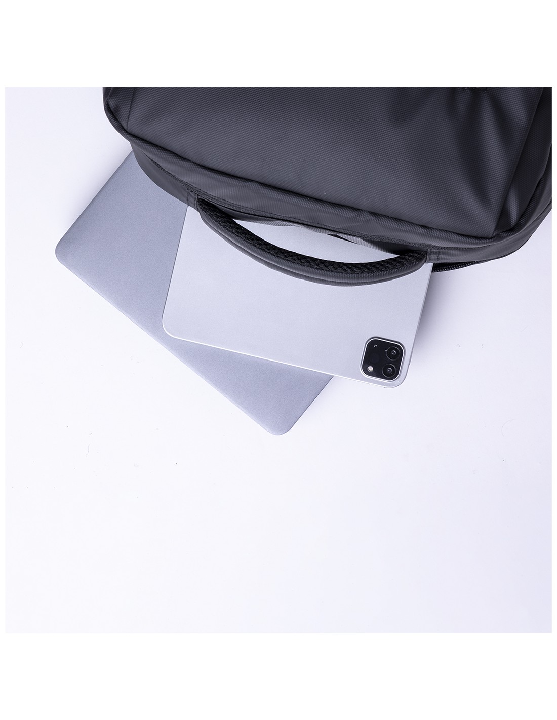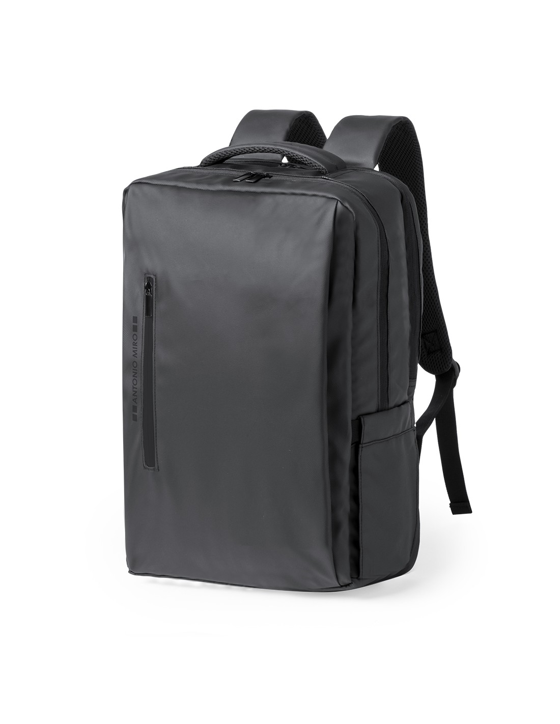 Mochila de Antonio Miró de calidad premium en resistente polipiel de sobrio diseño en color negro. Con cierre de cremallera doble, bolsillo frontal y asa reforzada acolchada. Con acolchado ergonómico en espalda y cintas de hombros, incluye compartimento interior acolchado para portátil de hasta 15 pulgadas y para tablets de hasta 10 pulgadas. Además, con bolsillo antirrobo con cierre de cremallera en la parte trasera. Fundas interiores para bolígrafos y smartphone. Con logotipo de la marca en frontal.