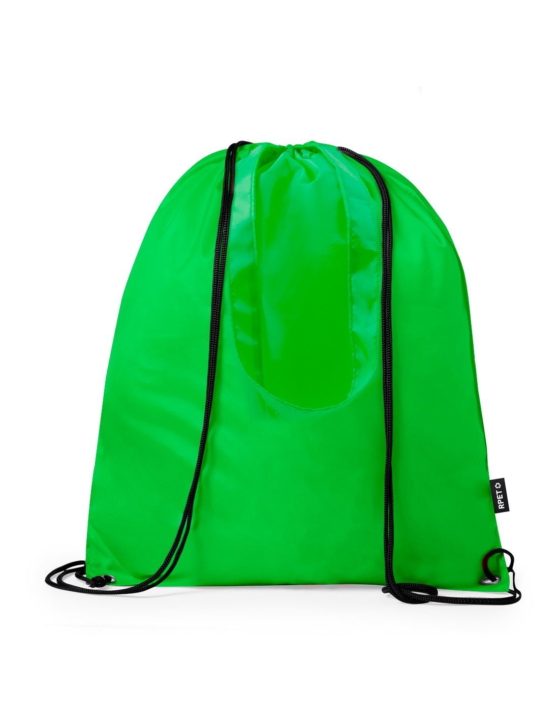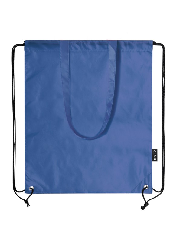 Bolsa mochila de cuerdas en resistente RPET 210T, con asas de transporte de 70 cm a juego. Las cuerdas cuentan con argollas metálicas reforzadas y logotipo RPET reciclado en etiqueta lateral. Disponible en una variada gama de colores. El material RPET se elabora a partir de plástico reciclado, para así fomentar la reutilización de residuos plásticos y ayudar a la sostenibilidad del planeta.