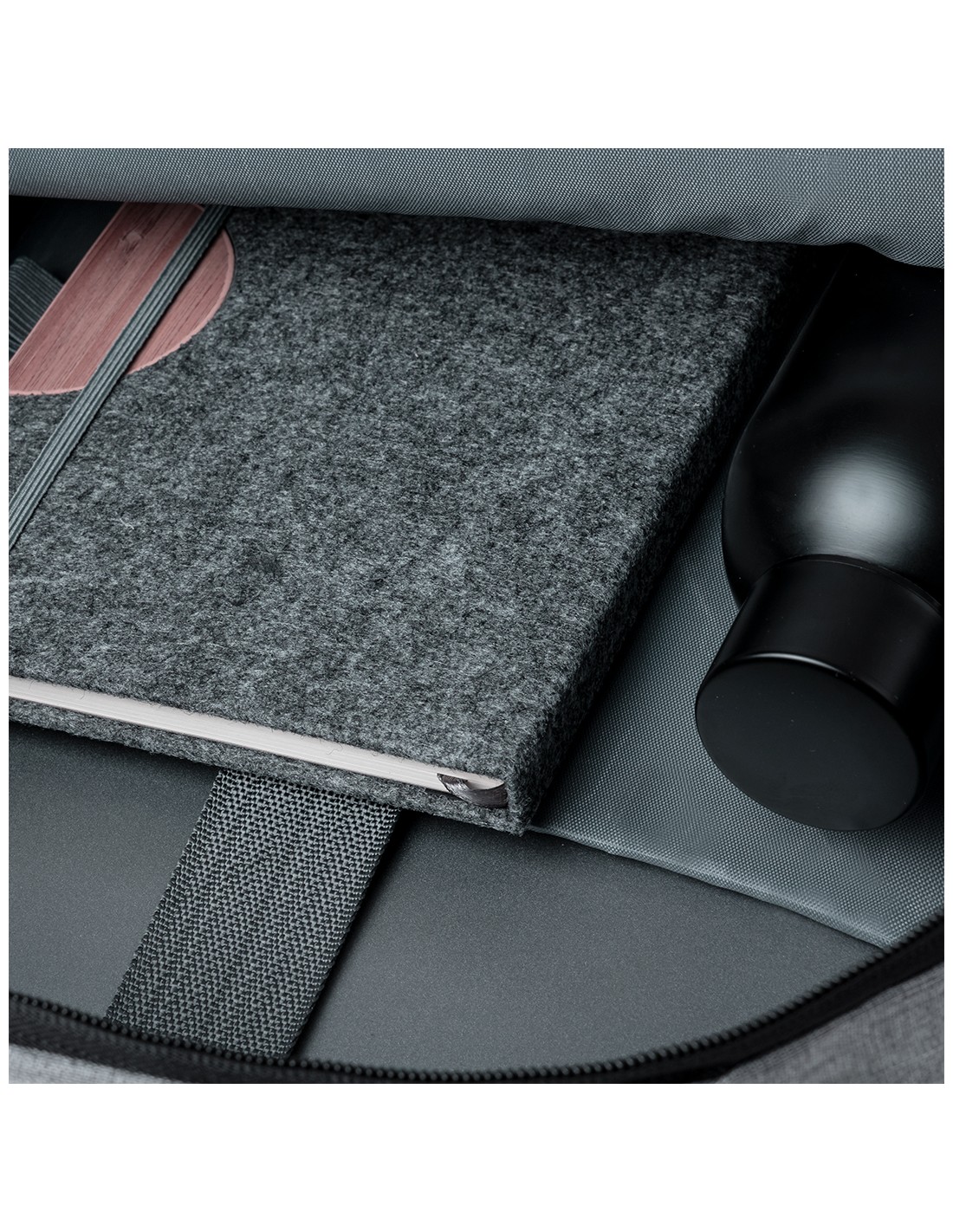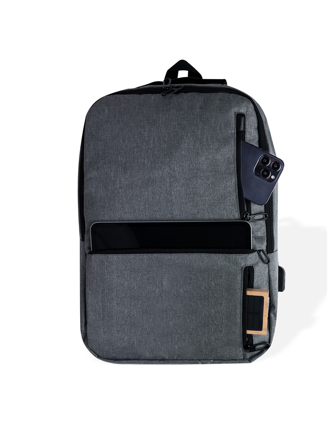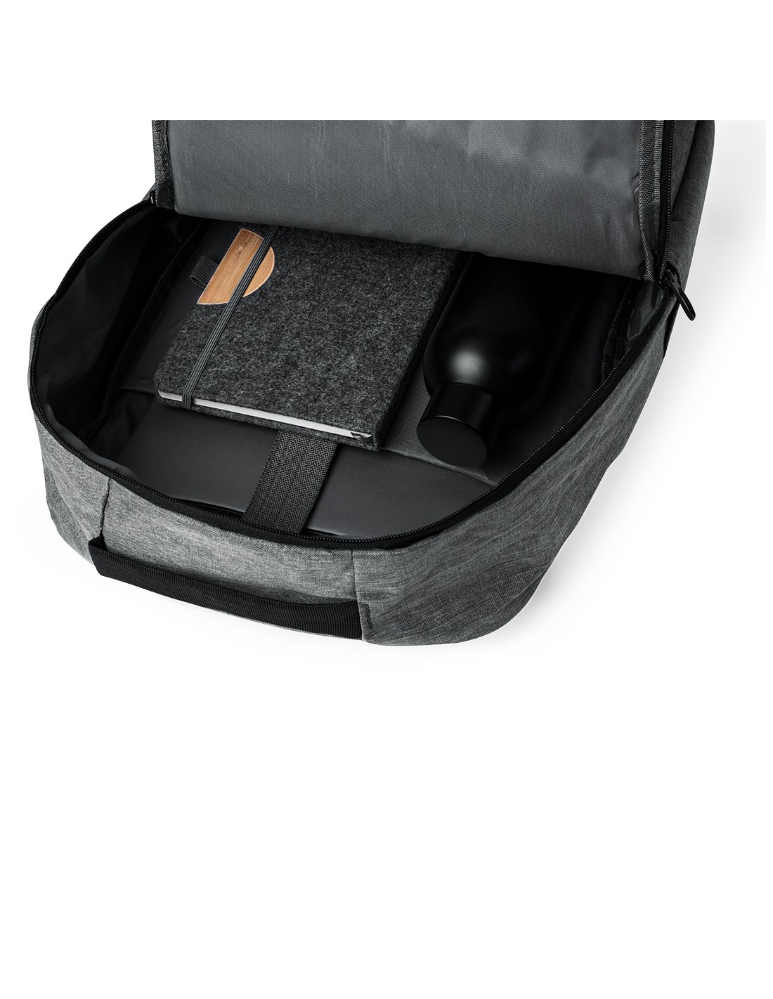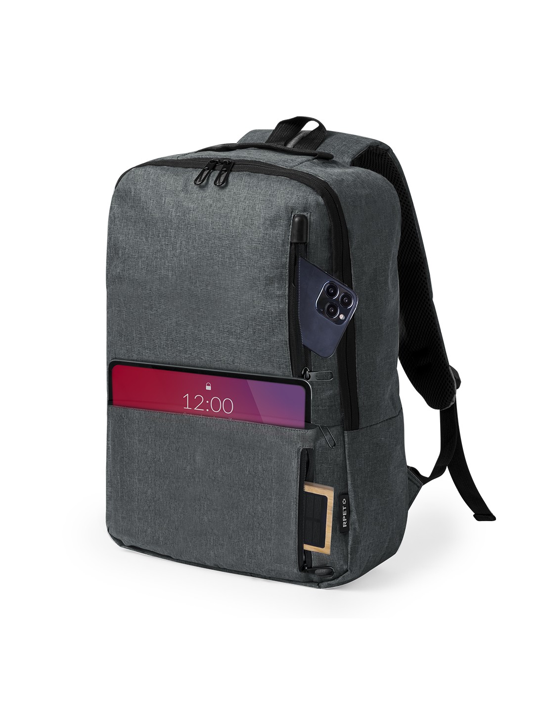 Mochila elaborada en resistente 600D RPET. Equipada con un cierre de cremallera de doble tirador y tres bolsillos frontales de acceso rápido. En su interior, cuenta con compartimentos acolchados diseñados para tablet de hasta 10 pulgadas y portátil de hasta 15 pulgadas. Las cintas de hombros son acolchadas y ajustables para brindar comodidad. Además, presenta una cinta superior y bolsillo lateral para mayor funcionalidad. Disponible en tres elegantes colores, con cremalleras negras. Logotipo RPET en etiqueta. Presentada en una bolsa individual reciclada. El material RPET se elabora a partir de plástico reciclado, para así fomentar la reutilización de residuos plásticos y ayudar a la sostenibilidad del planeta.