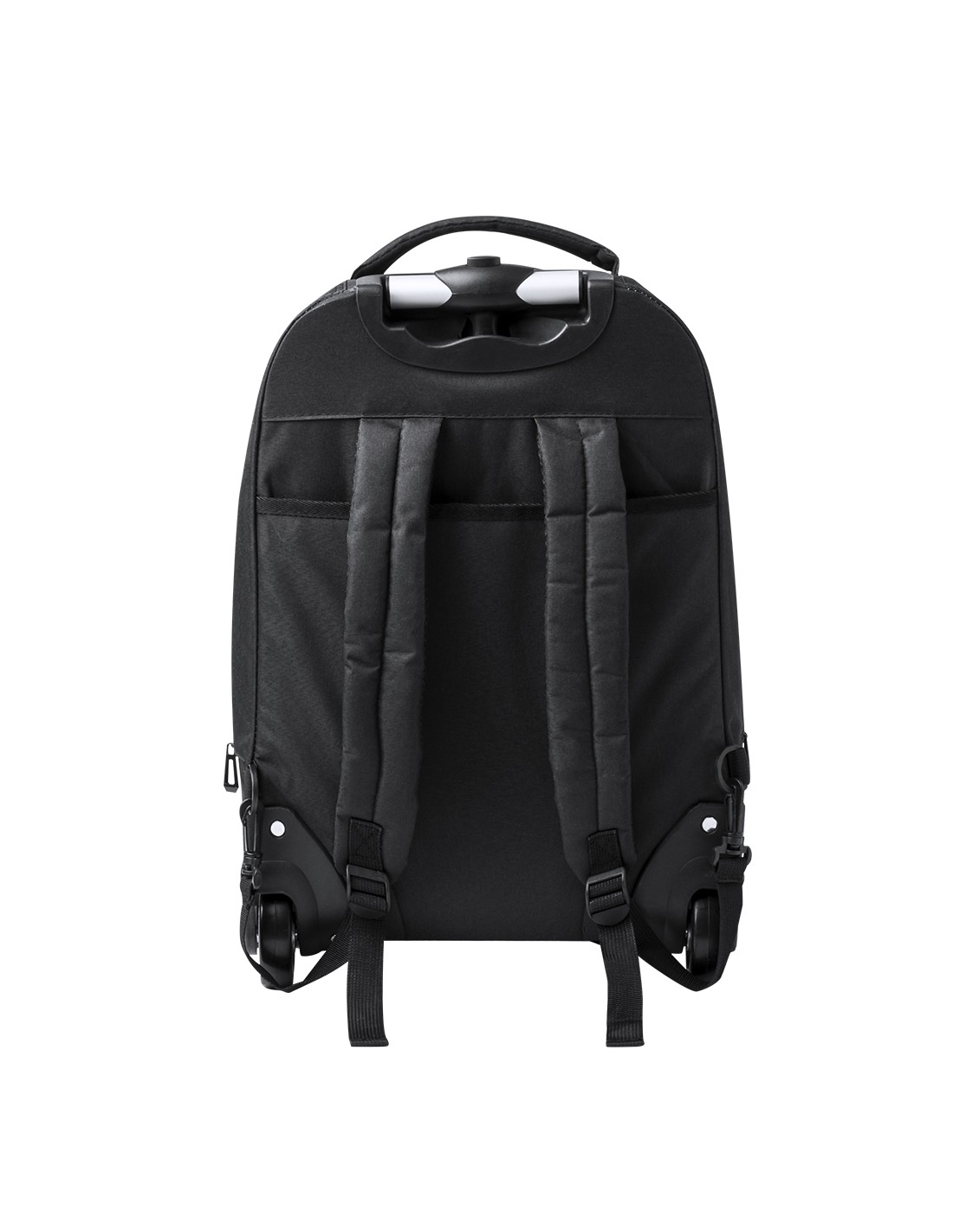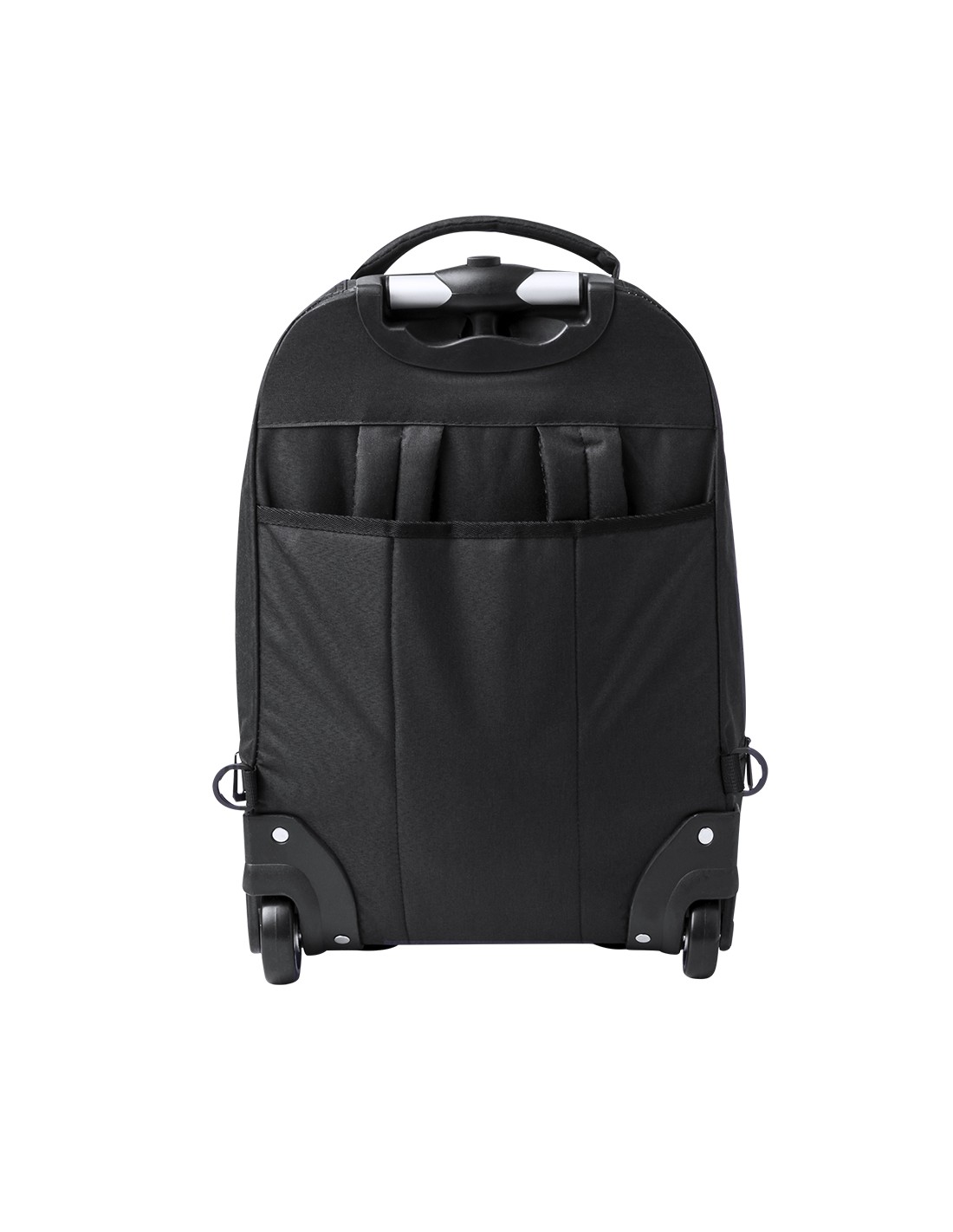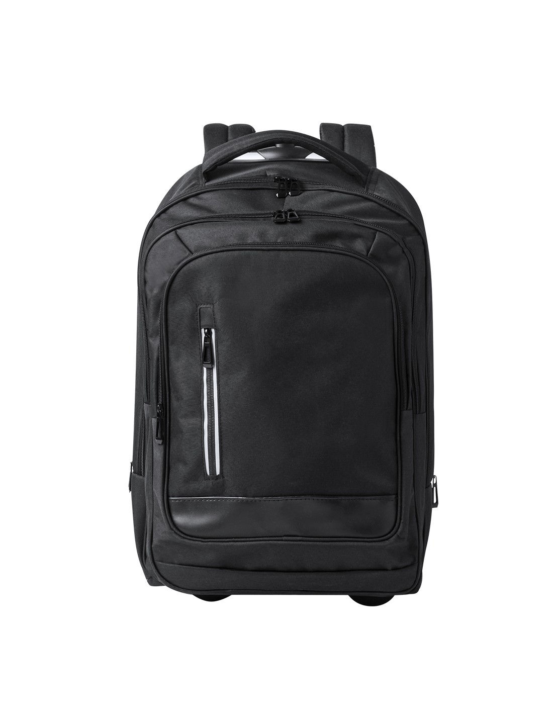 Mochila trolley de 2 ruedas en poliéster 300D de alta calidad. Incluye compartimento interior acolchado para ordenador portátil de hasta 15 pulgadas. Con asa exterior reforzada a juego y prácticos bolsillos en parte frontal. Con cremalleras a juego, además incluye cintas para hombro acolchadas y ocultas en parte posterior para usar como mochila. Presentado en bolsa individual reciclada.