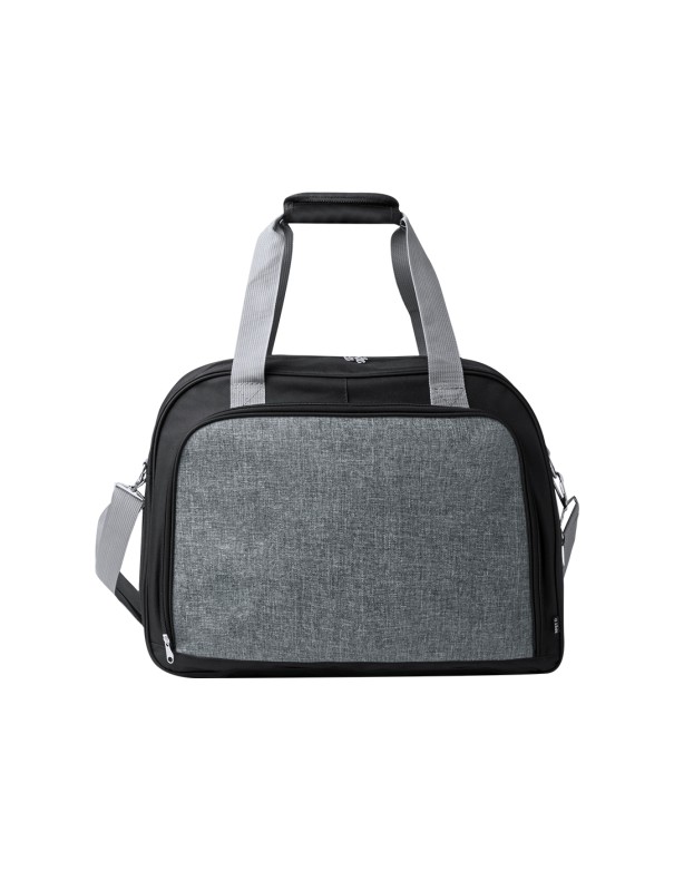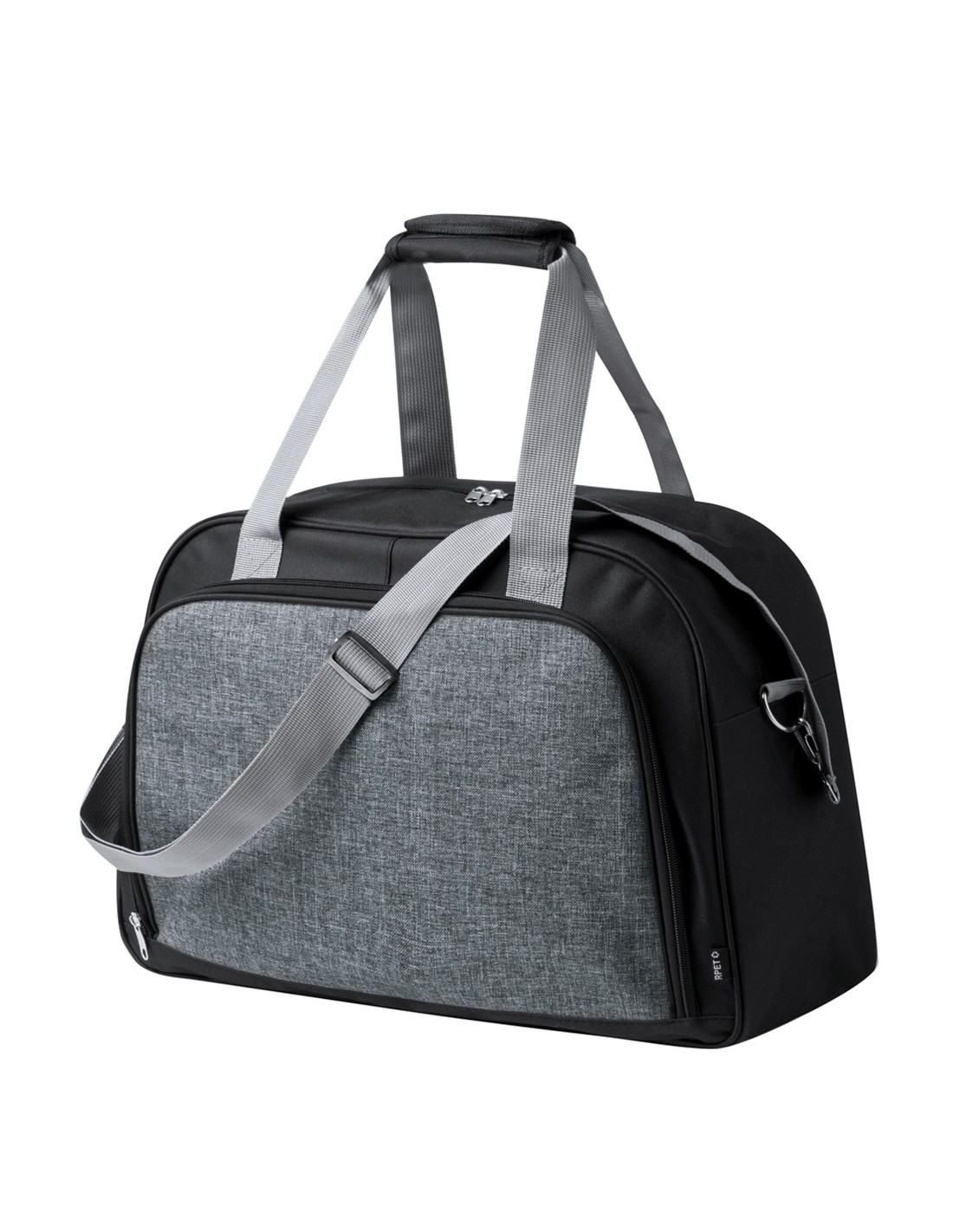 Bolso de gran capacidad fabricado en resistente RPET 600D. Cuenta con cierre de cremallera de doble asa de mano con cierre de velcro, y un bolsillo frontal con cierre de cremallera. Dispone de asa ajustable para un cómodo transporte con enganche y doble asa con cierre de velcro. Disponible en varios colores. Incluye etiqueta distintiva de RPET. Presentado en una bolsa individual reciclada.El material RPET se elabora a partir de plástico reciclado, para así fomentar la reutilización de residuos plásticos y ayudar a la sostenibilidad del planeta.