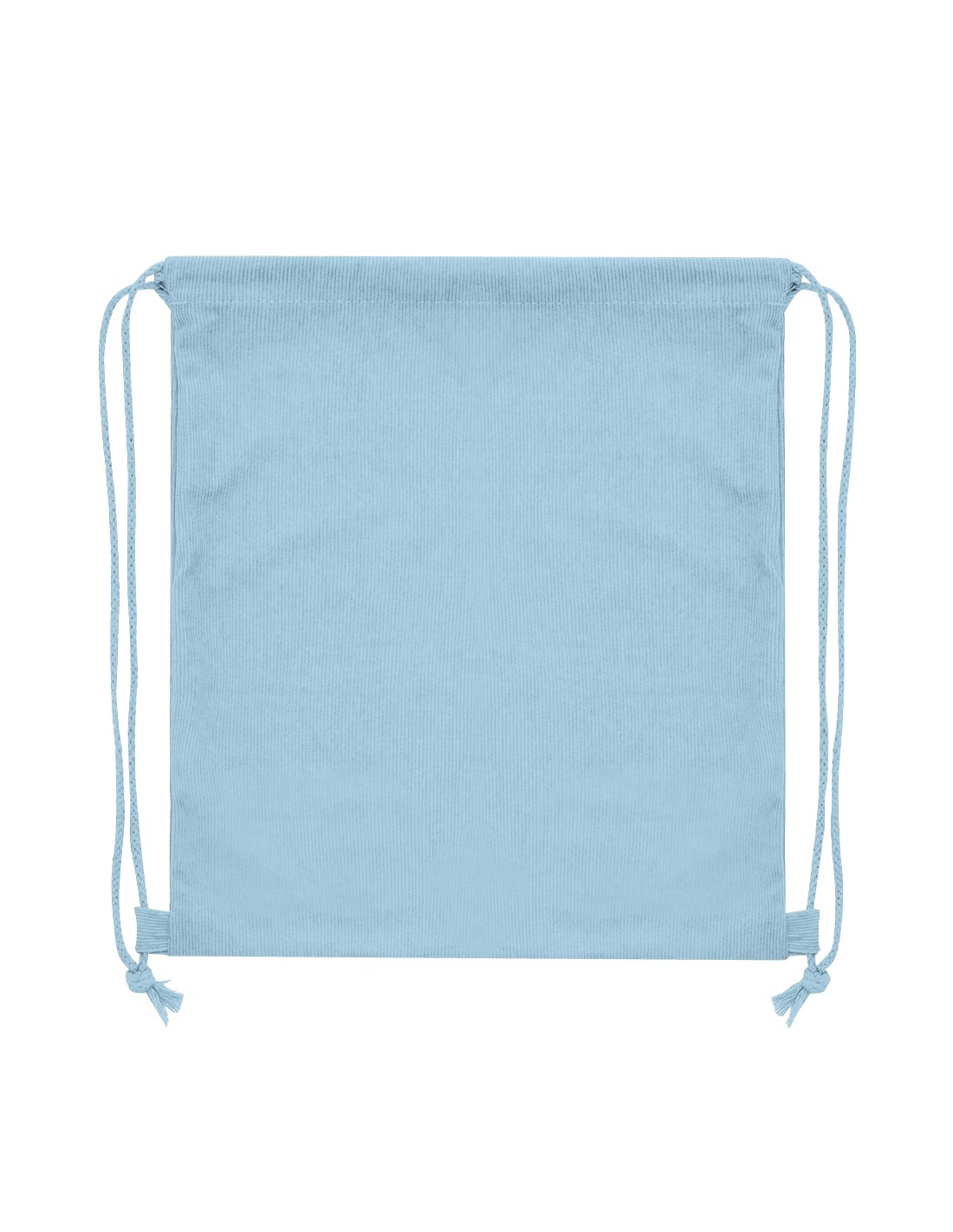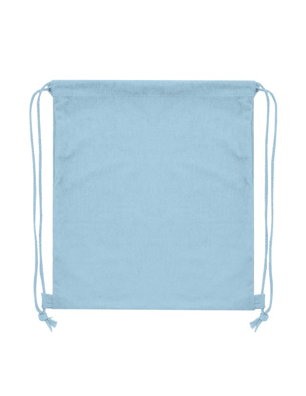 Mochila de cuerdas fabricada en resistente pana de poliéster. De acabado cosido, con cuerdas a juego y refuerzos laterales. Disponible en variada gama de colores.