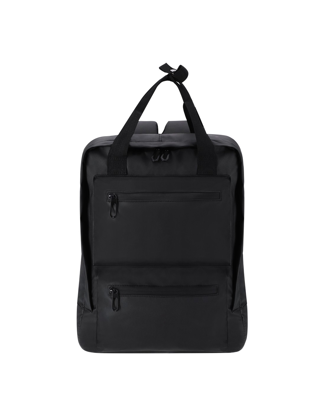 Mochila en resistente PU. Cuenta con un bolsillo principal y dos frontales para un acceso rápido. Cierres de cremallera invisible. Incluye dos bolsillos en los laterales y asas dobles de transporte, reforzadas en la parte superior con cinta de unión entre ellas para un fácil transporte. Equipada con bolsillo acolchado interior para portátil de hasta 15 pulgadas y bolsillo para tablet de hasta 10 pulgadas. Espalda y cintas de hombros acolchadas, transpirables y ajustables.