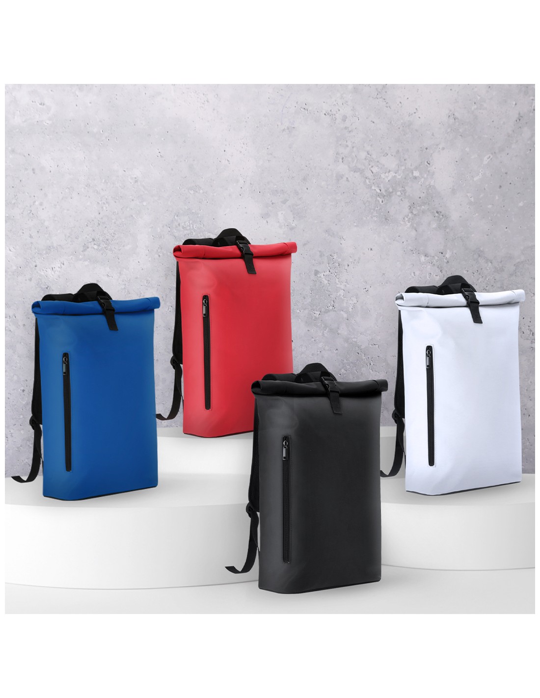 Mochila de suave PU. Con bolsillo principal y sistema de cierre de hebilla. Interior de gran capacidad con compartimento acolchado para portátiles de hasta 15 pulgadas. Con bolsillo frontal de cremallera y espalda acolchada. Cintas ajustables y acolchadas.