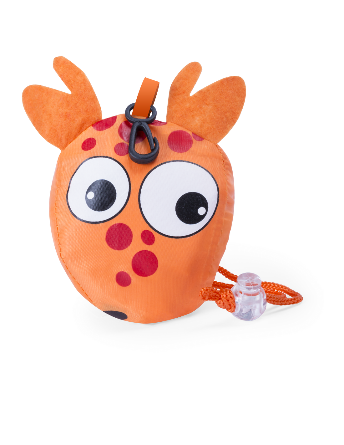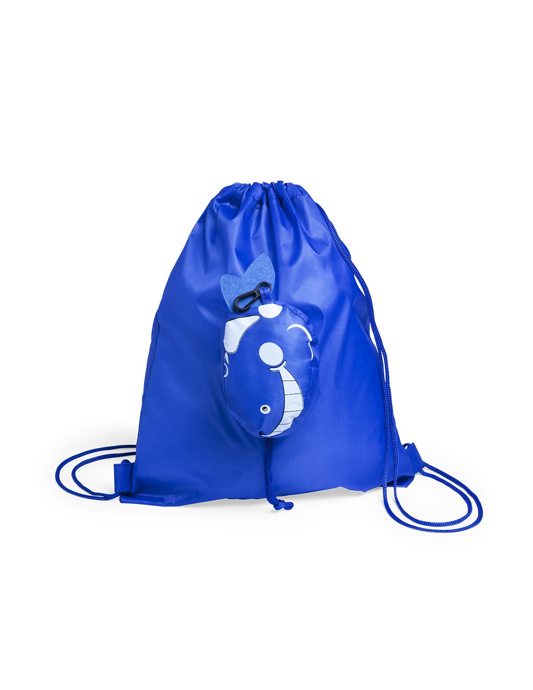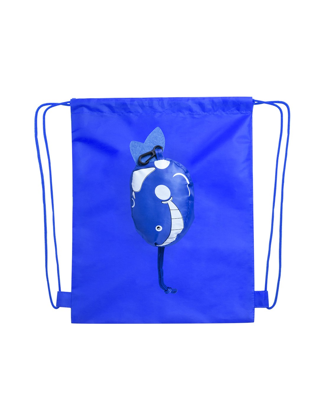 Mochila de cuerdas plegable para niño, en poliéster 190T de alegre diseño de animales y variada gama de colores. Con asa de transporte, cuerdas autocierre y refuerzos laterales a juego. Plegado de pequeño tamaño en forma de animalitos, con cuerda a juego y accesorio de ajuste.
