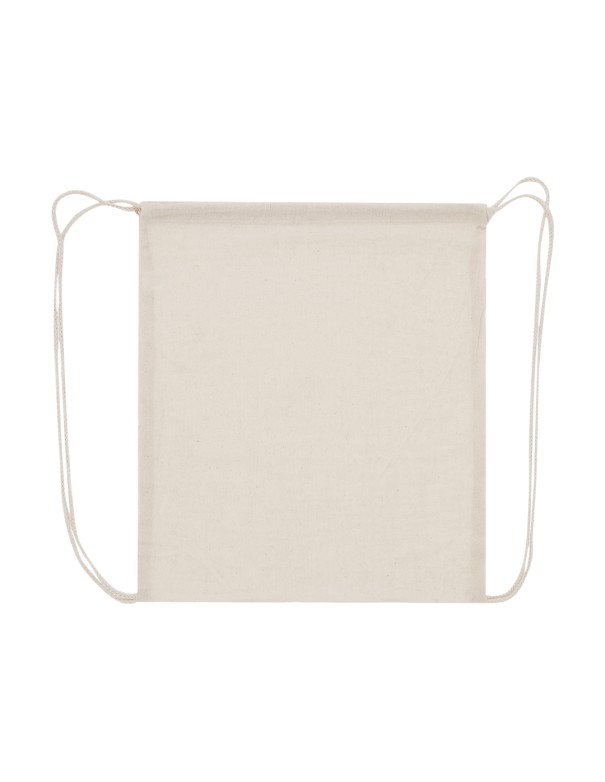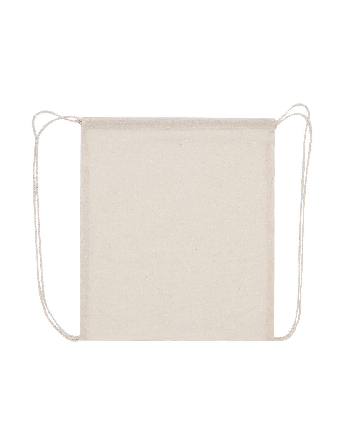 Mochila de cuerdas de línea nature. Fabricada en 100% algodón de 100g/m2 en acabado suave tacto de color natural. Compartimento con cordones en algodón.