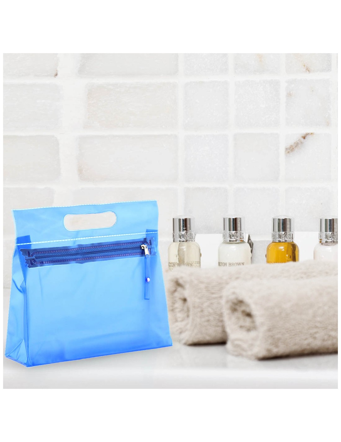 Neceser multiusos en resistente PVC translúcido de variada gama en vivos colores. Con resistente asa troquelada y cierre de cremallera a juego, con cinta en tirador para fácil apertura.