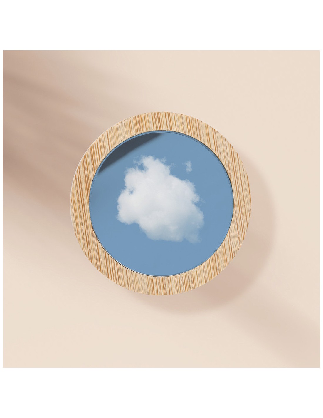 Espejo 1X de línea nature fabricado en bambú. Presentado en caja individual de diseño eco.