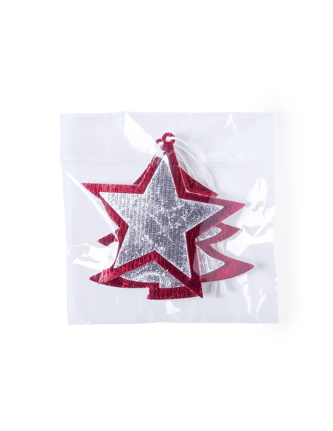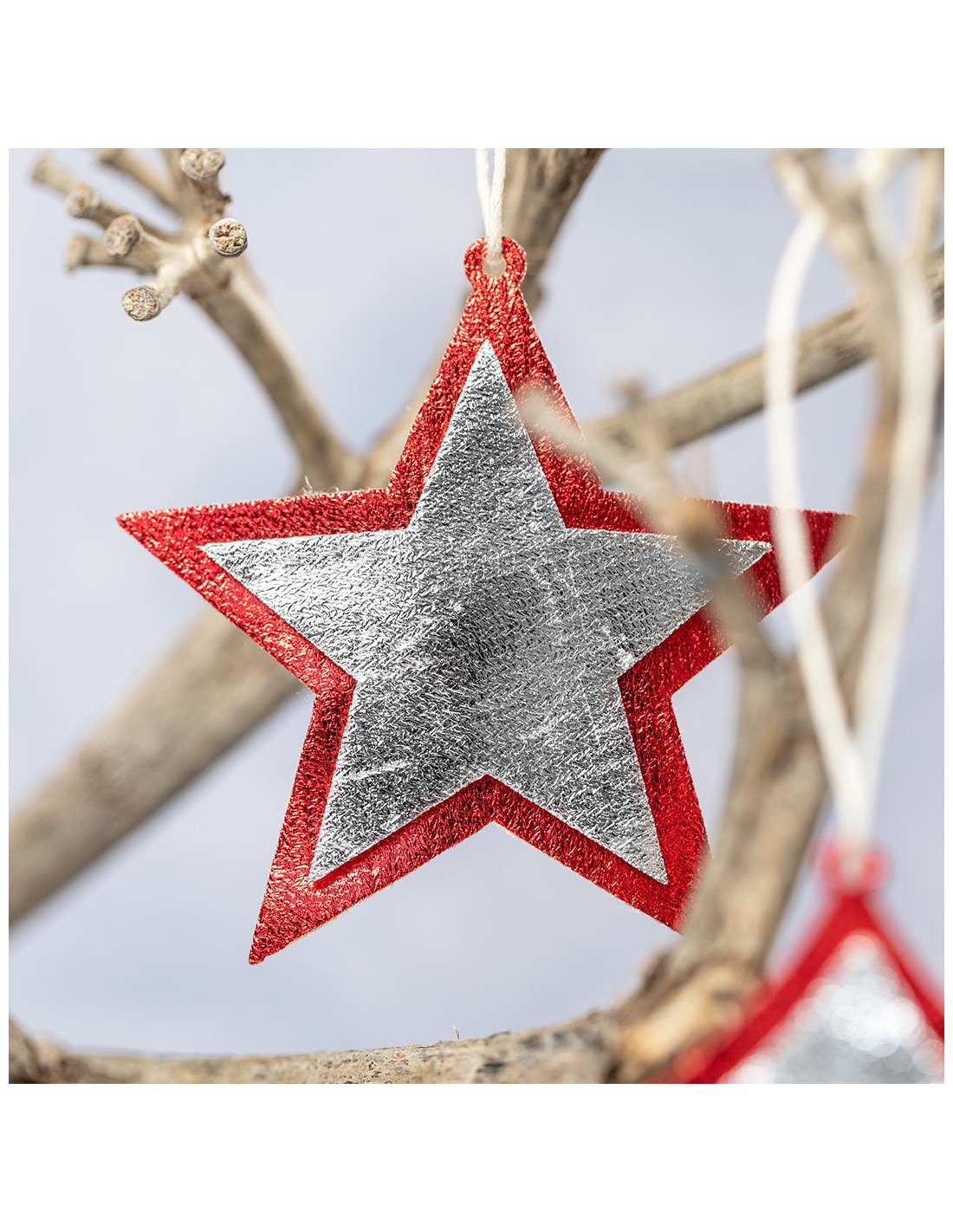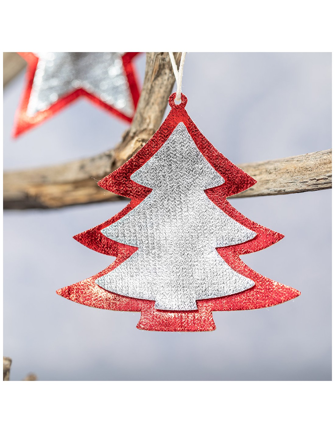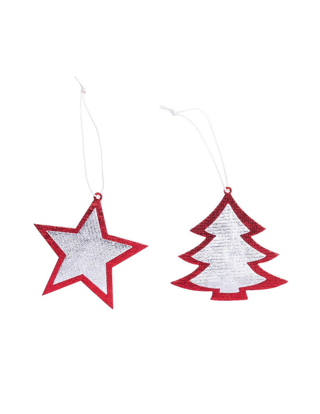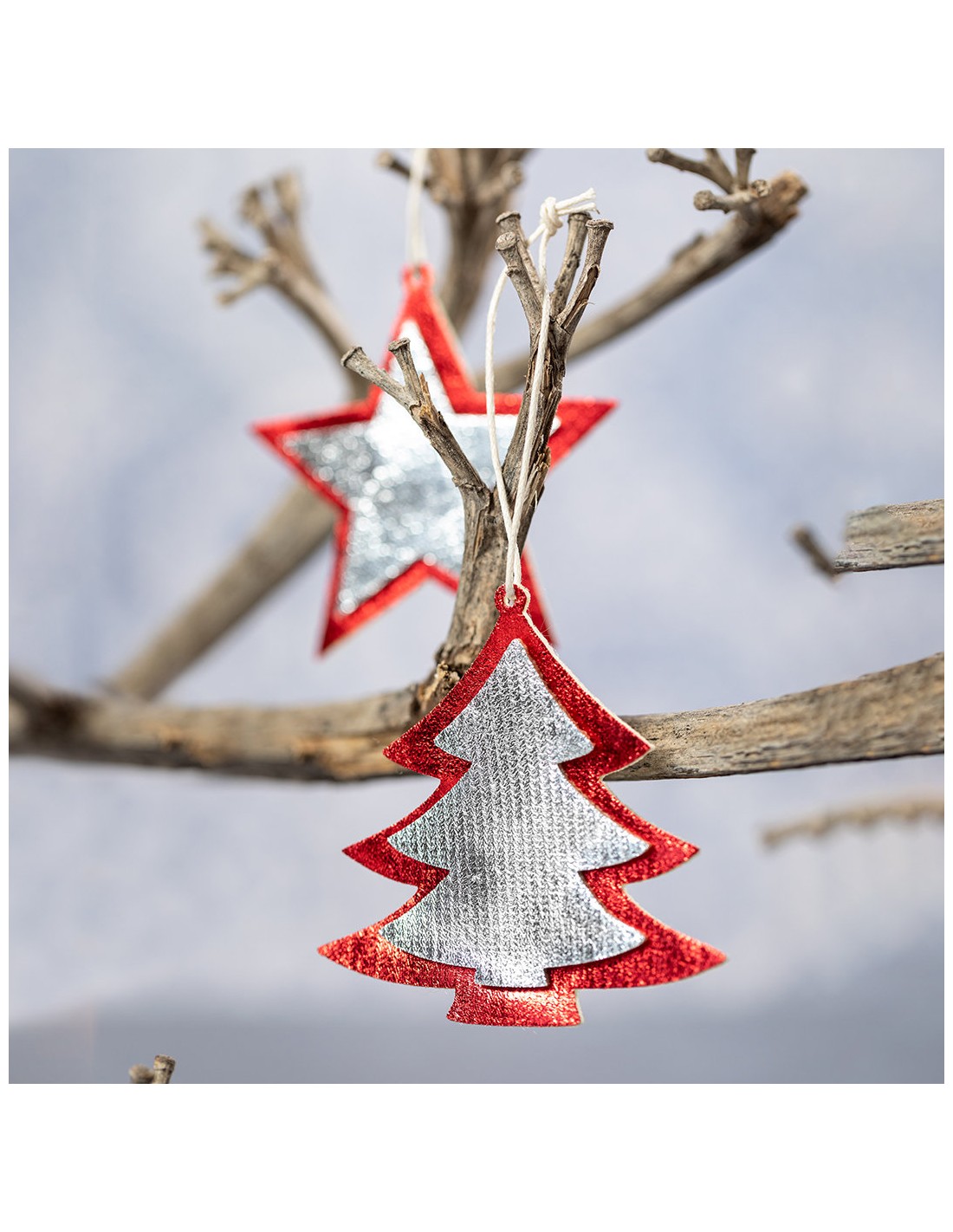 Set de figuras navideñas para colgar en material non-woven. Incluye árbol de navidad y estrella.