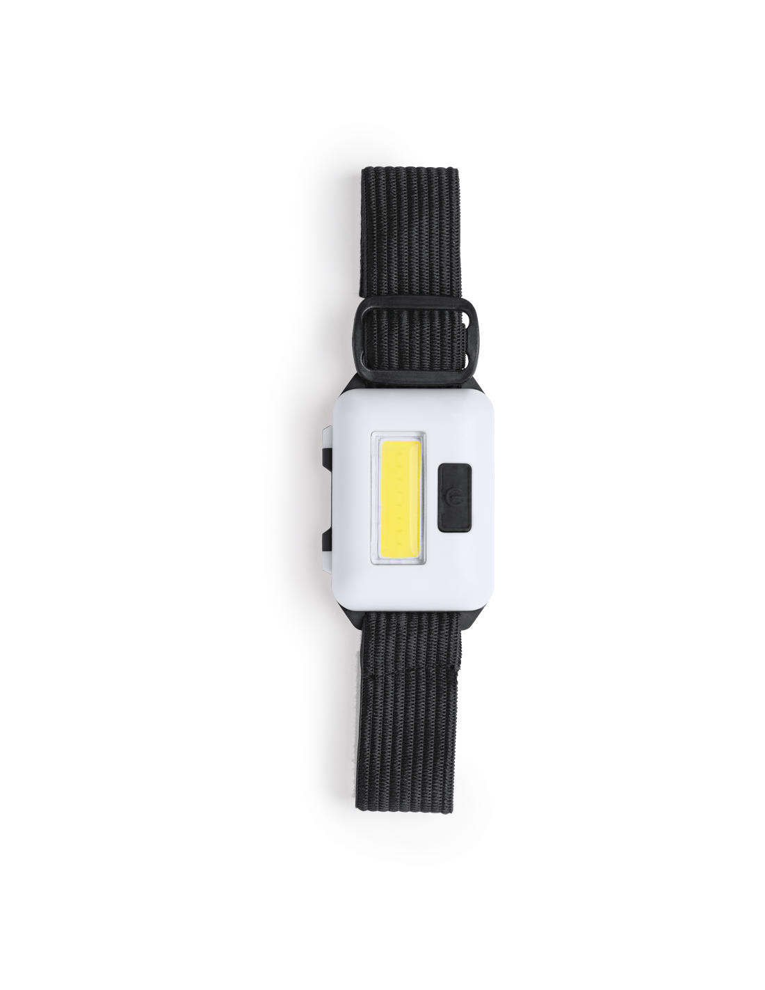 Linterna de línea deportiva con cinta elástica ajustable para brazo, cabeza… Con 8 luces COB blancas y 3 posiciones de iluminación (2 posiciones fijas y 1 posición intermitente). Disponible en variada gama de colores, con alimentación a pilas (3xAAA no incluidas) y presentada en una atractiva caja de diseño.