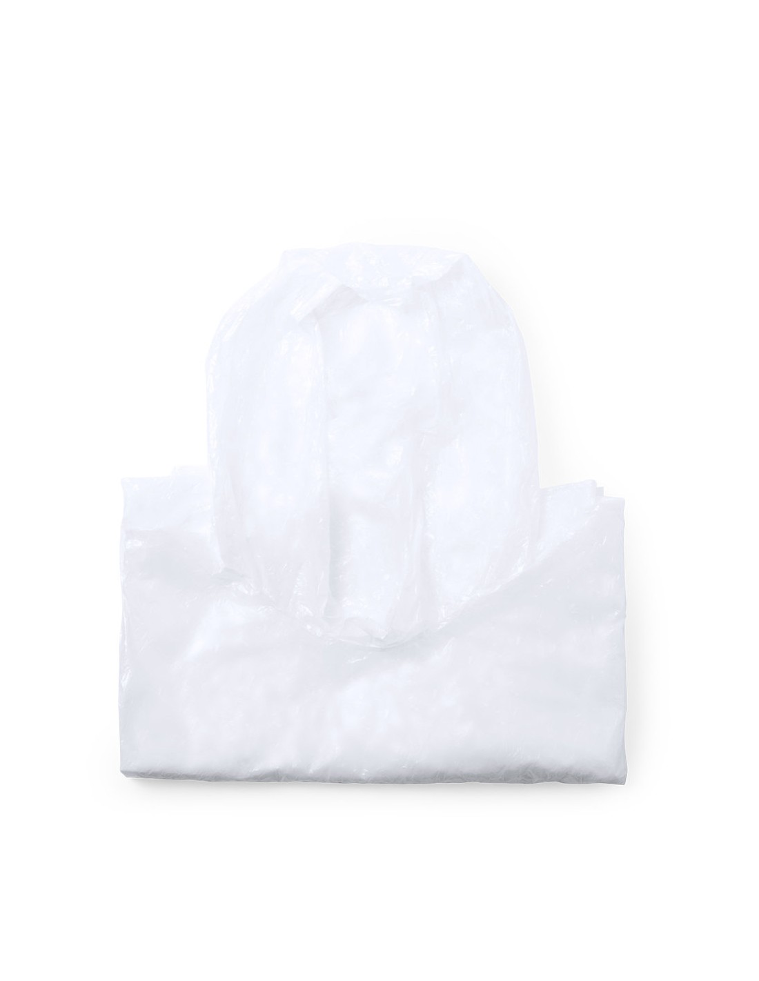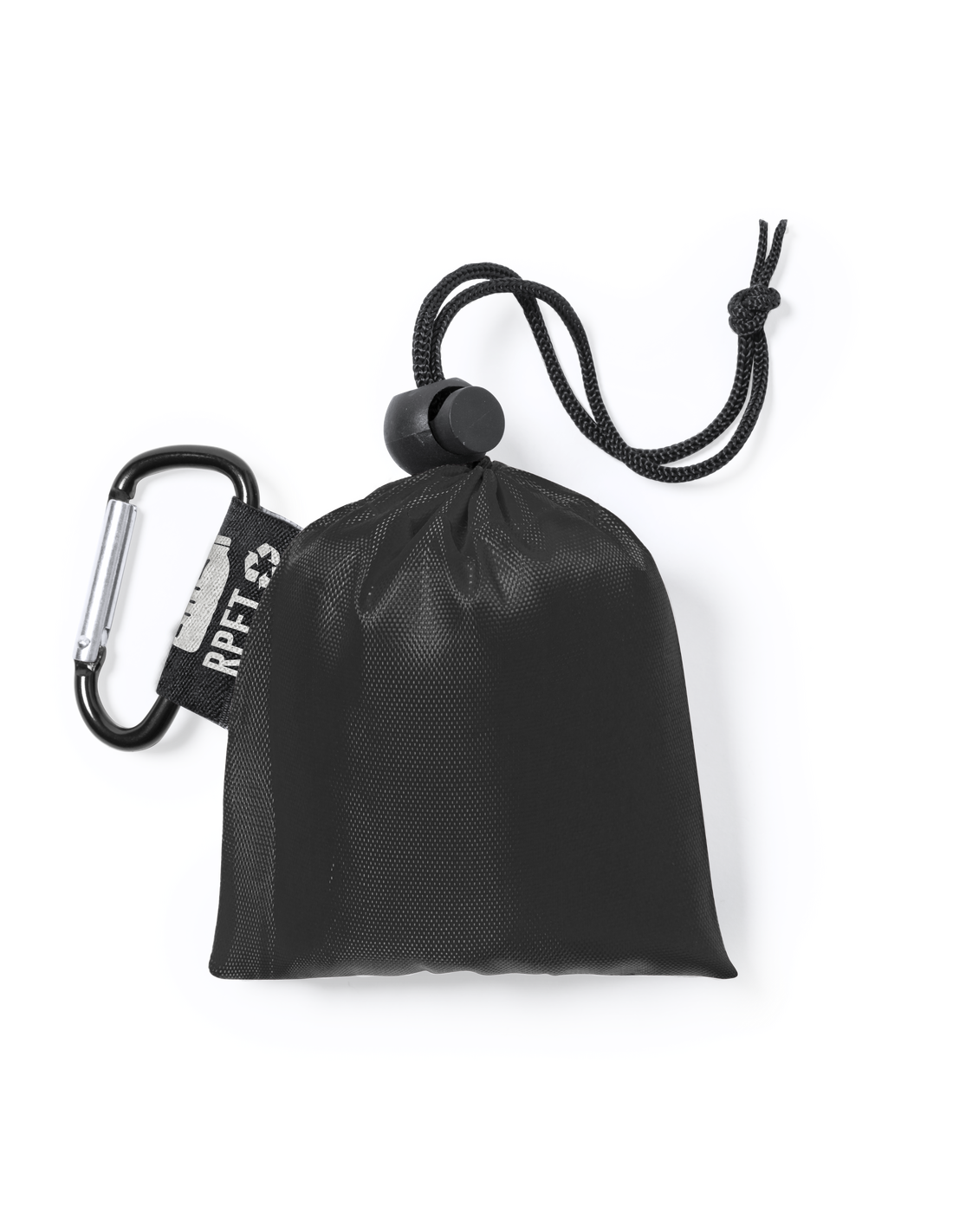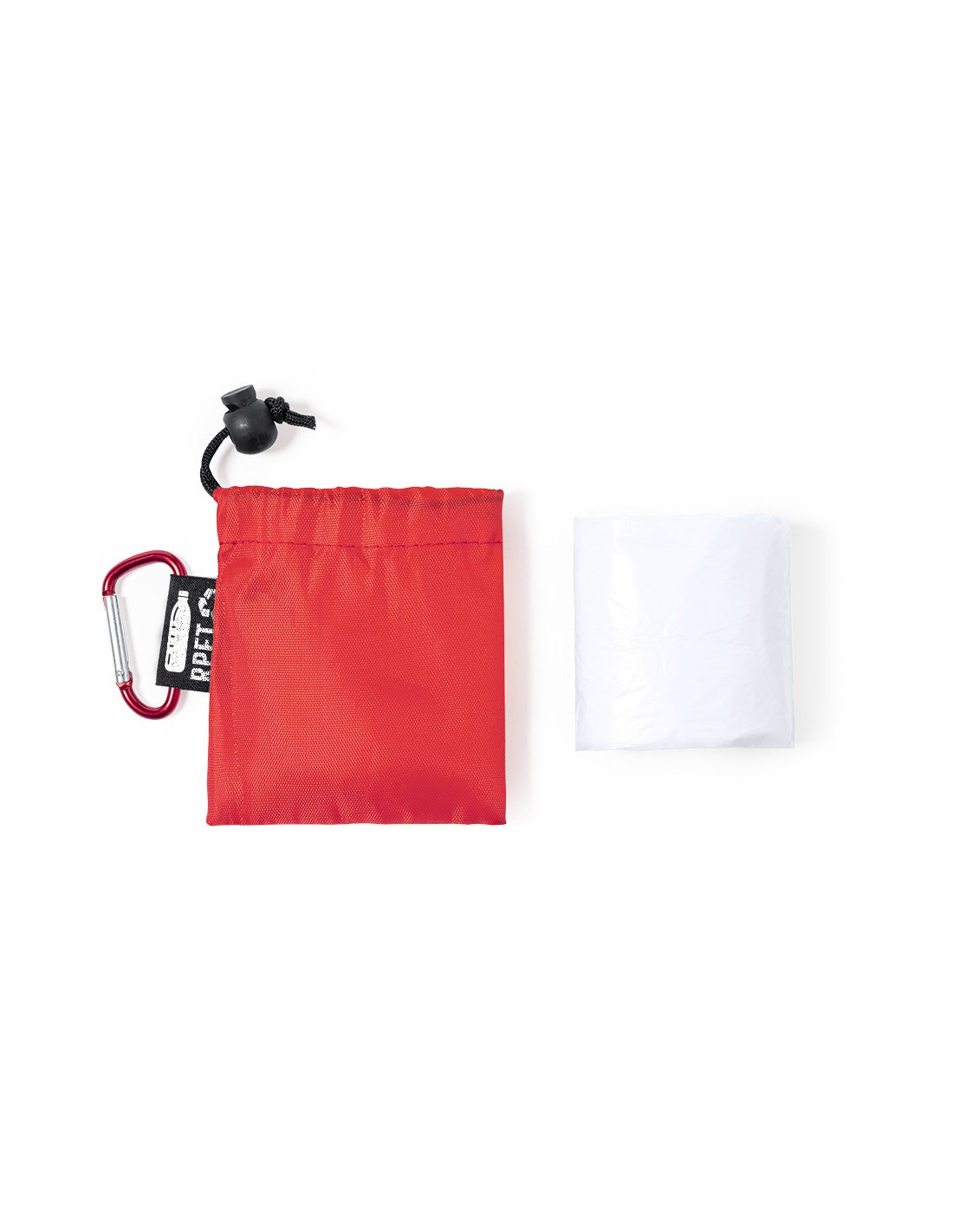 Poncho para adulto en material LDPE. En medidas 102x127cm y presentado en funda de poliéster RPET, elaborado a partir de plástico reciclado, para así fomentar la reutilización de residuos plásticos y ayudar a la sostenibilidad del planeta. Bolsa con mosquetón a juego para fácil transporte y cierre ajustable, disponible en variada gama de colores. Con distintivo RPET en etiqueta exterior.