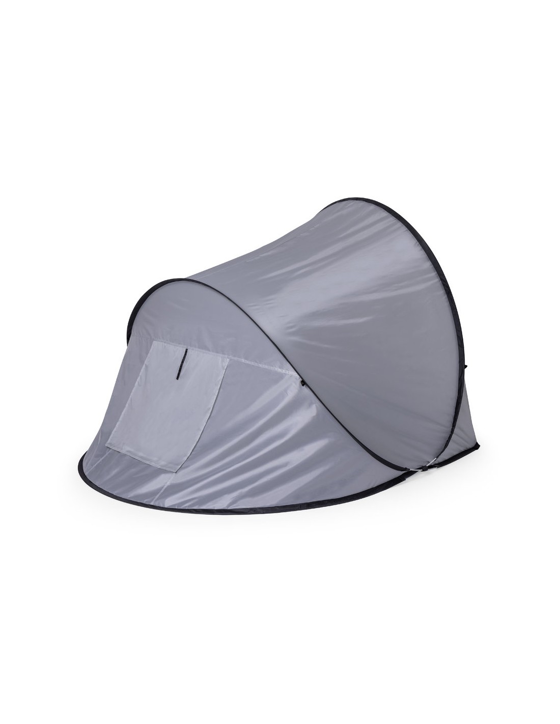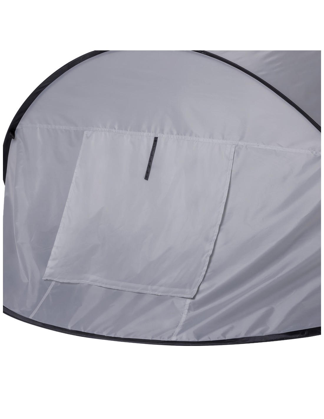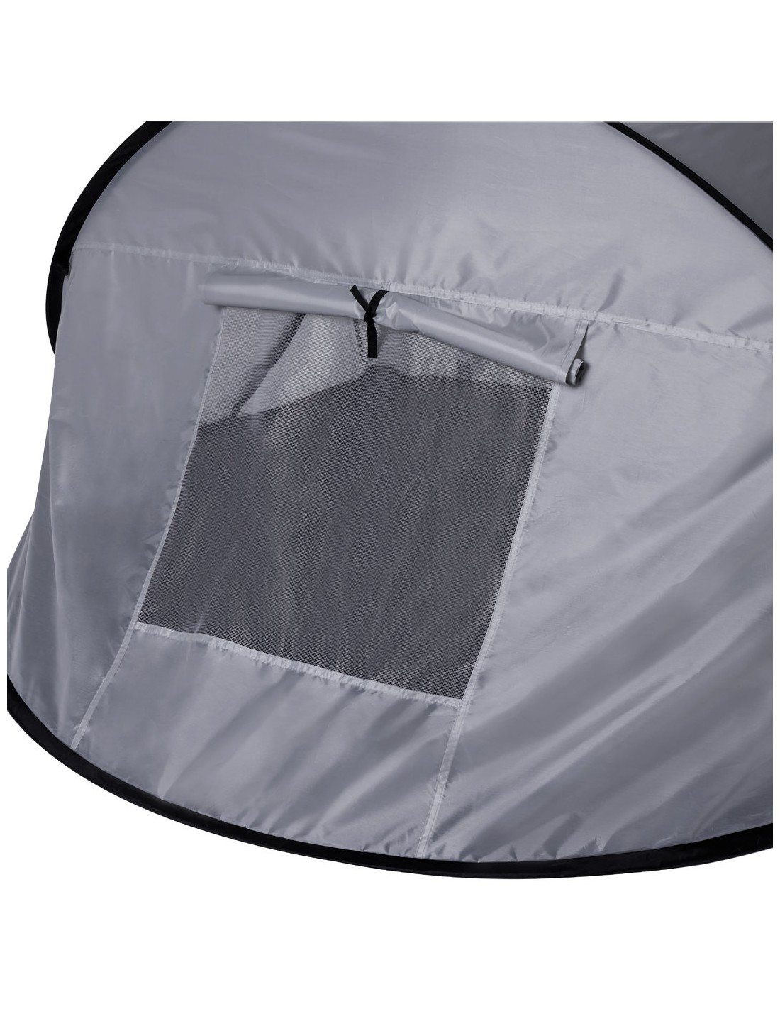 Tienda de campaña automontable, solo hay que sacarla de la funda y se despliega automáticamente. Fabricada en resistente poliéster RPET, con estructura metálica y detalles en color negro. Amplia puerta de entrada, con cierre de cremallera de doble tirador interior y exterior. Ventana en parte posterior con mosquitera, cierre de velcro y cortina enrollable con cordón y cinta de sujeción. Ideal para 2 personas y de fácil plegado. Presentada en funda a juego, con distintivo RPET en etiqueta exterior.El material RPET se elabora a partir de plástico reciclado, para así fomentar la reutilización de residuos plásticos y ayudar a la sostenibilidad del planeta.