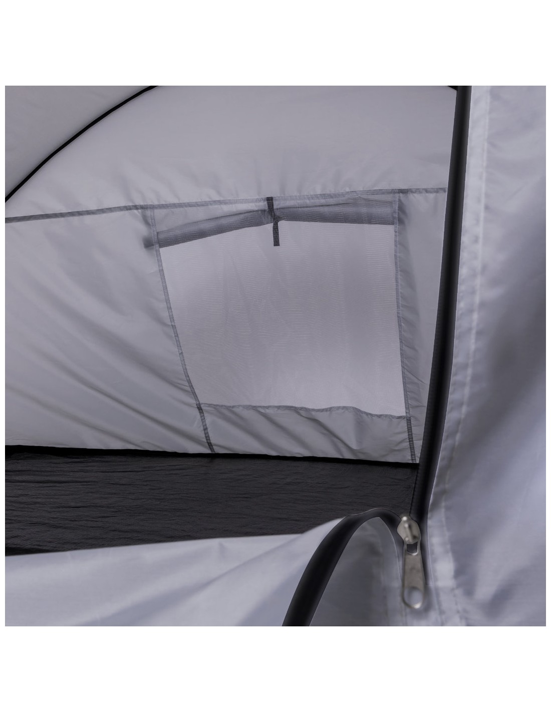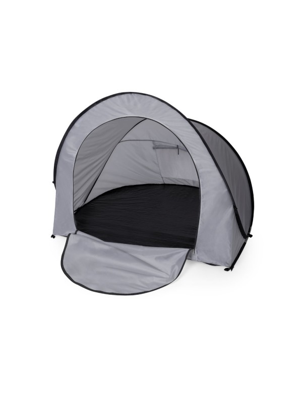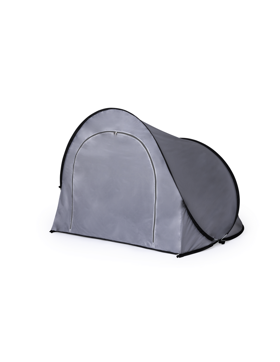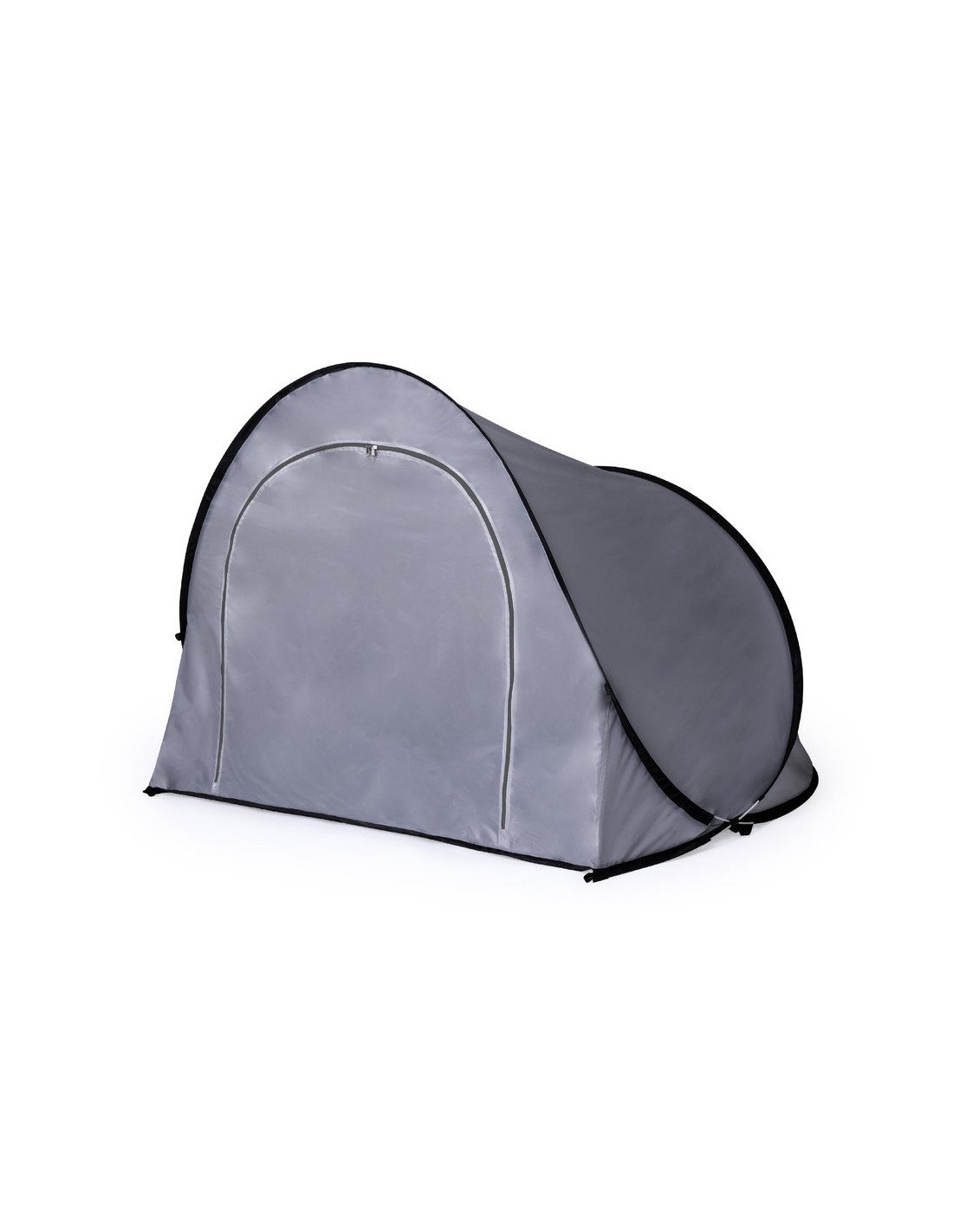 Tienda de campaña automontable, solo hay que sacarla de la funda y se despliega automáticamente. Fabricada en resistente poliéster RPET, con estructura metálica y detalles en color negro. Amplia puerta de entrada, con cierre de cremallera de doble tirador interior y exterior. Ventana en parte posterior con mosquitera, cierre de velcro y cortina enrollable con cordón y cinta de sujeción. Ideal para 2 personas y de fácil plegado. Presentada en funda a juego, con distintivo RPET en etiqueta exterior.El material RPET se elabora a partir de plástico reciclado, para así fomentar la reutilización de residuos plásticos y ayudar a la sostenibilidad del planeta.