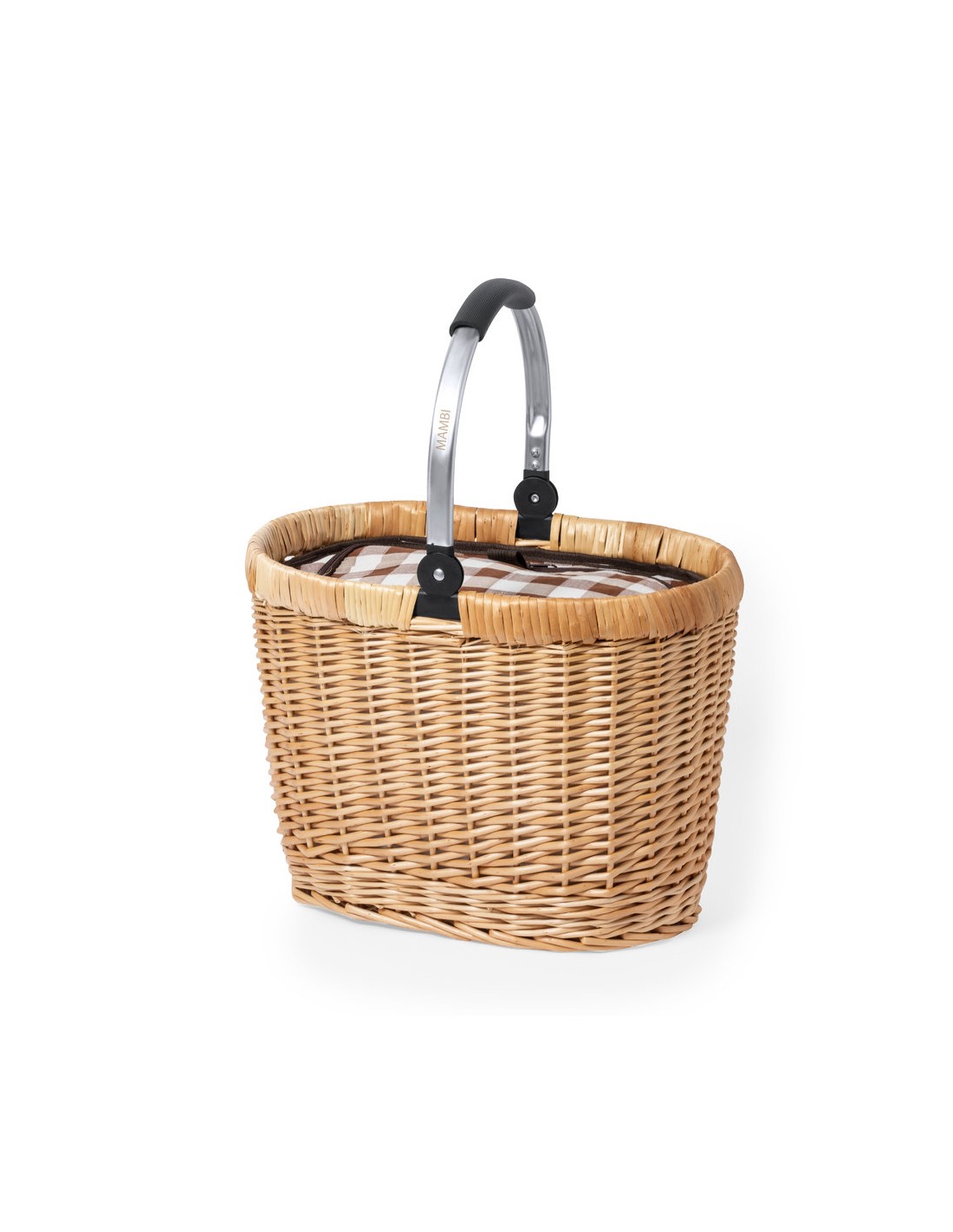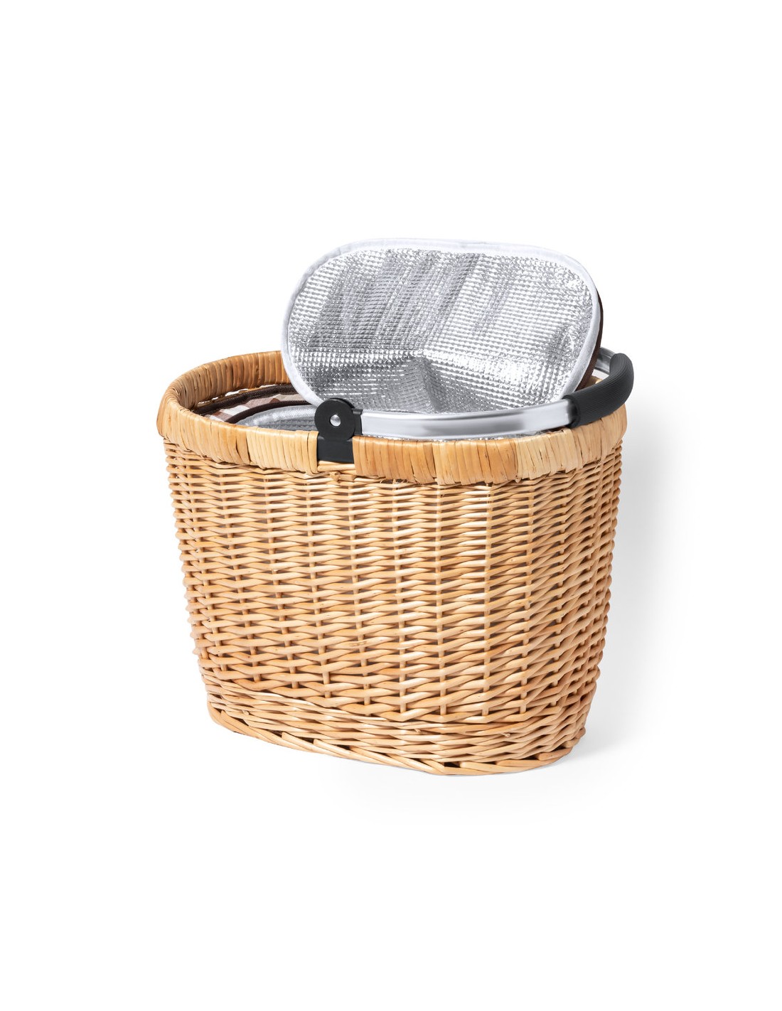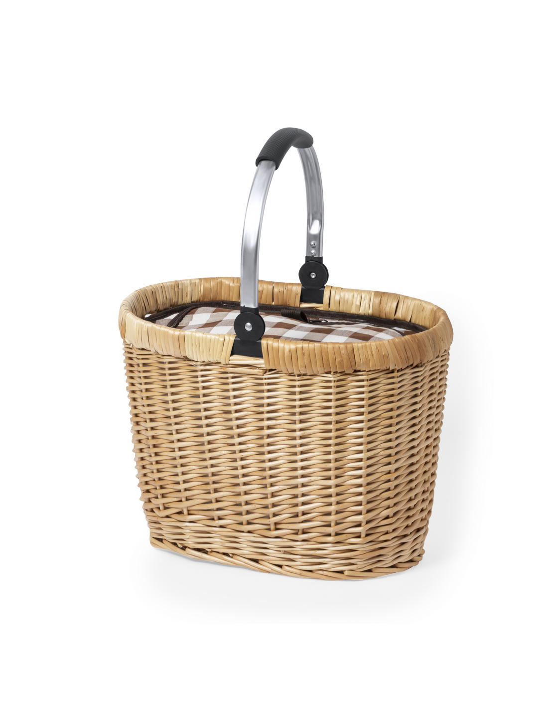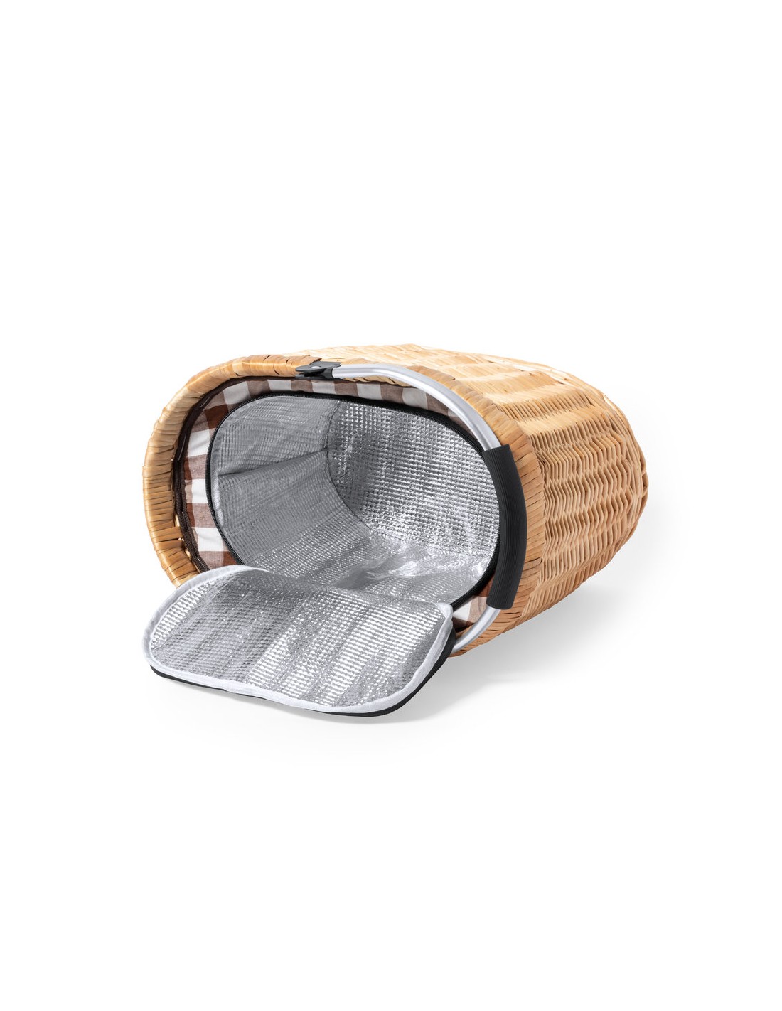 Lleva el estilo a tus picnics con esta cesta nevera tan cool y retro. Fabricada en mimbre de acabado natural, con resistente asa de transporte plegable en aluminio. Tapa de diseño vintage con cierre de cremallera e interior isotermo en aluminio.