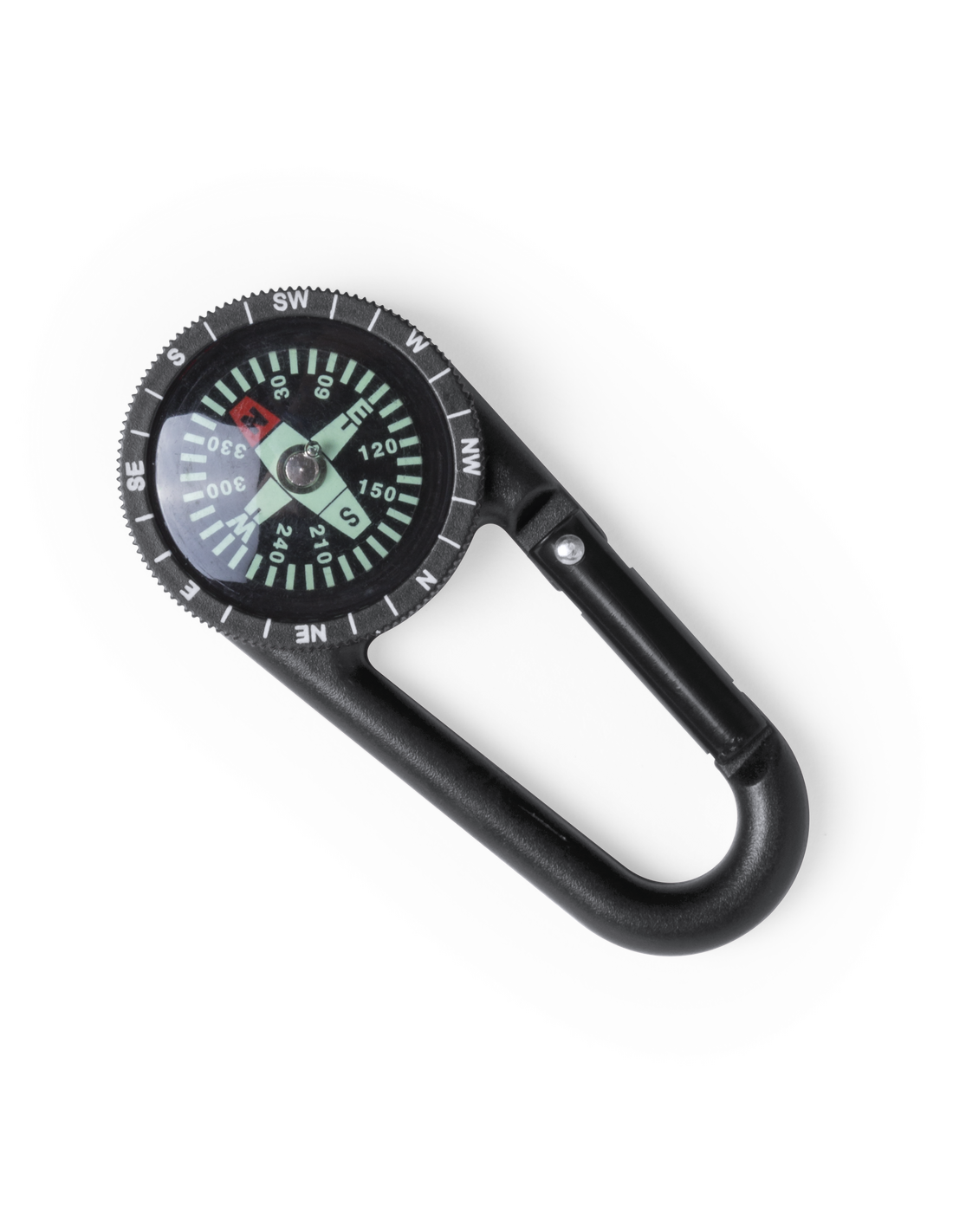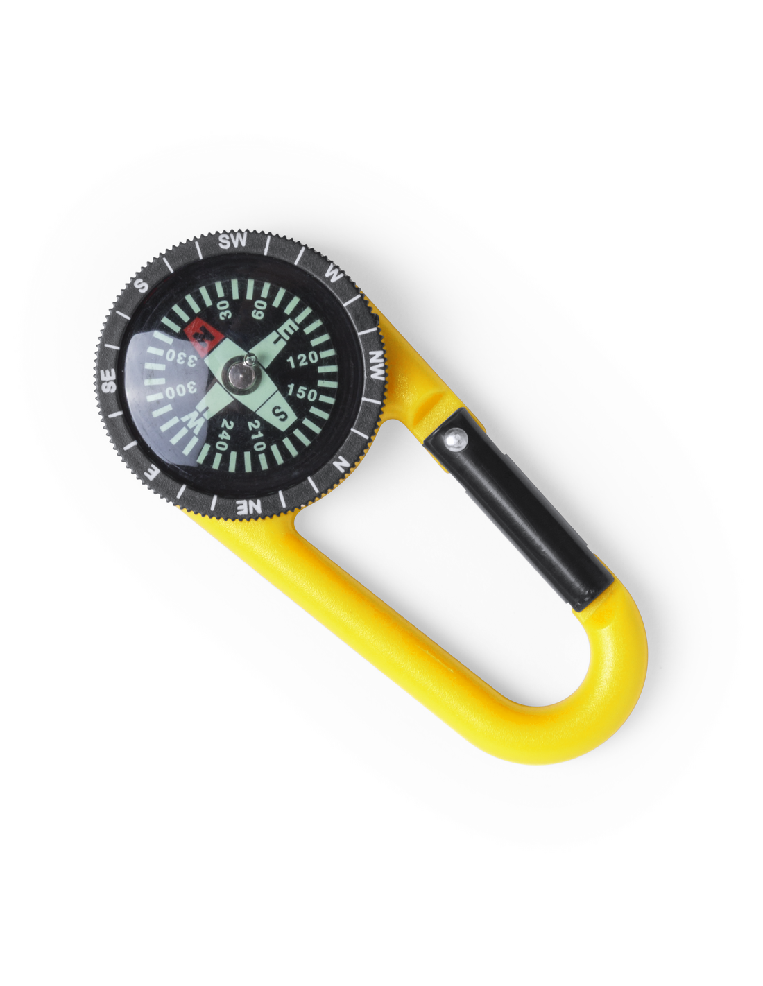 Brújula mosquetón en vivos colores con cuerpo de suave y resistente acabado.