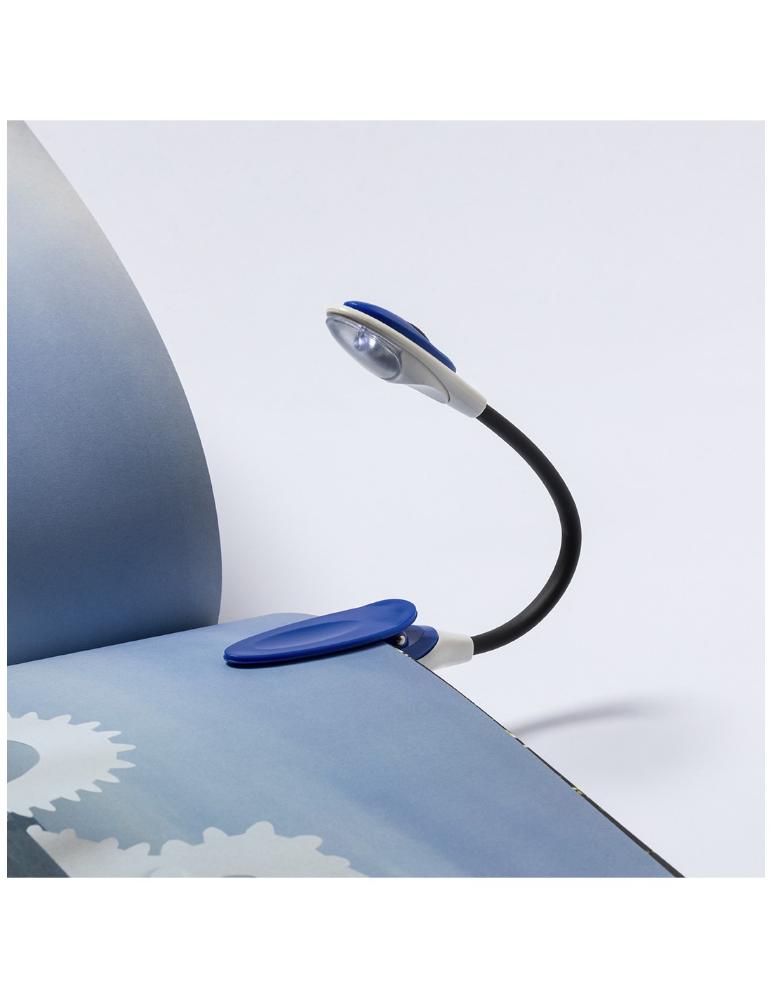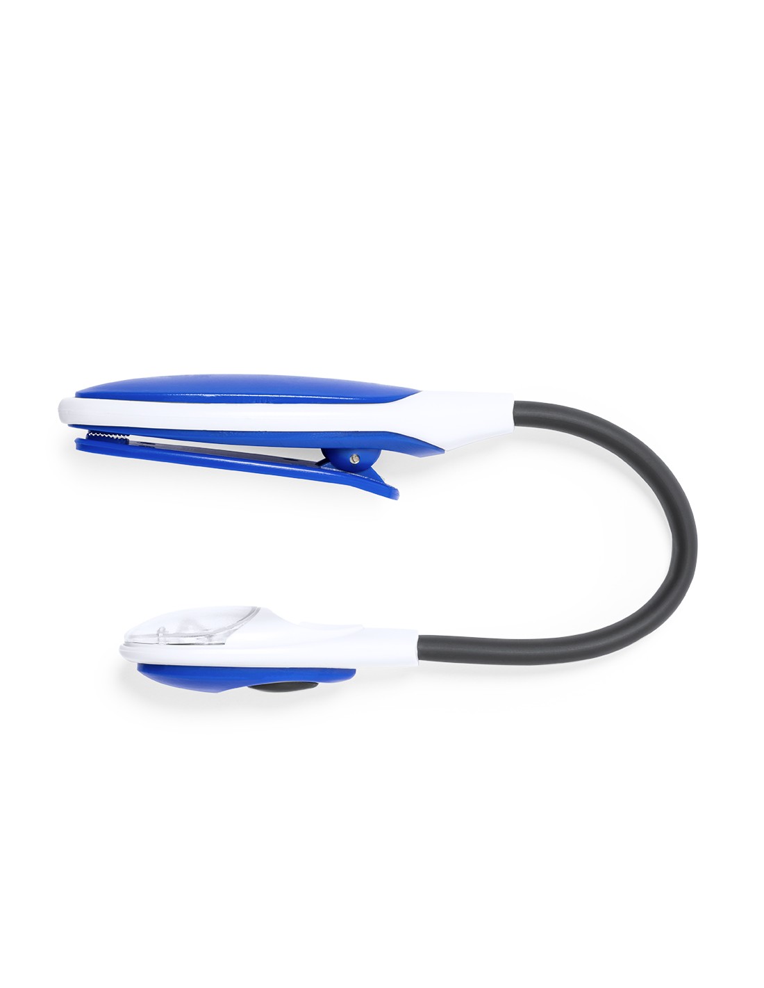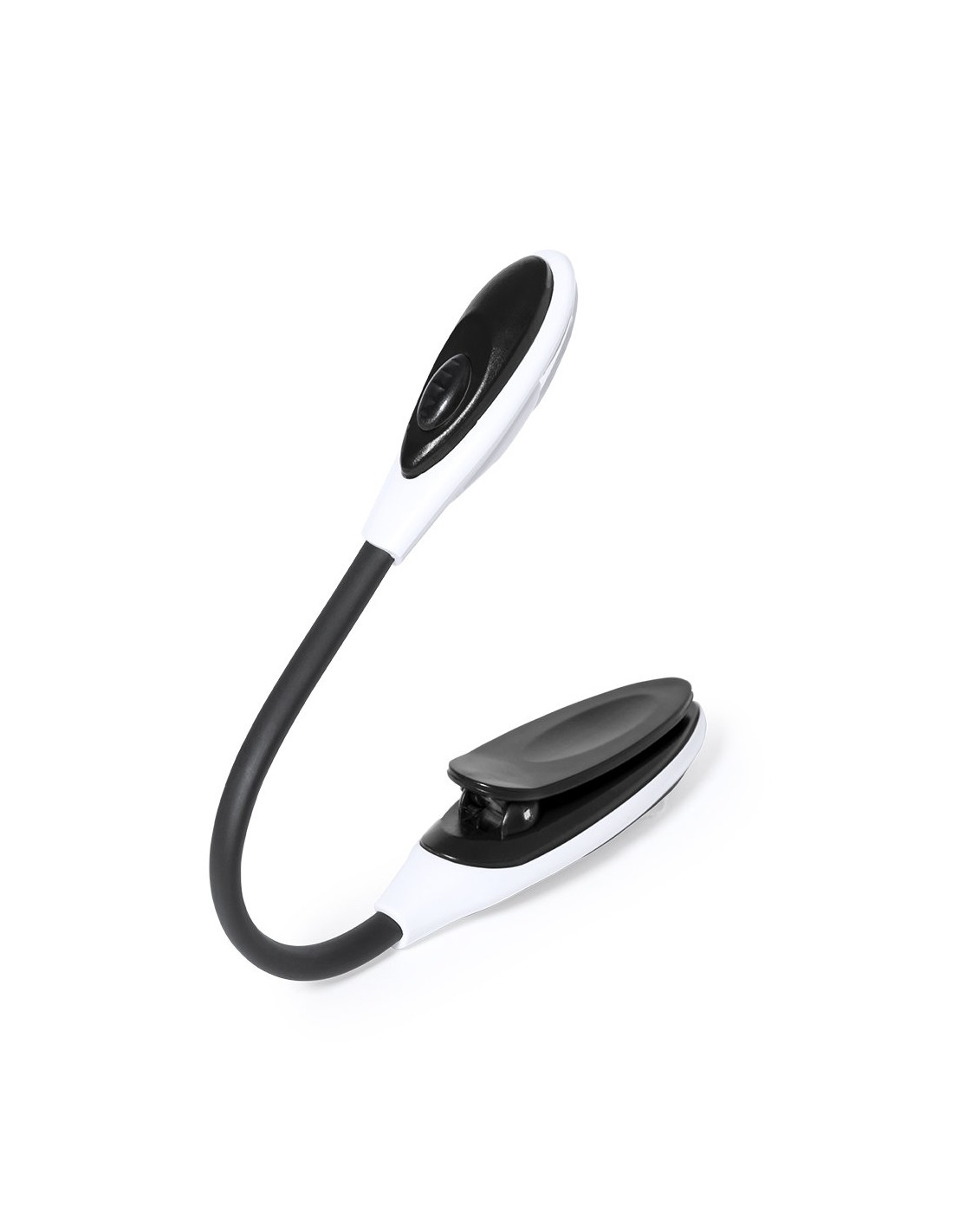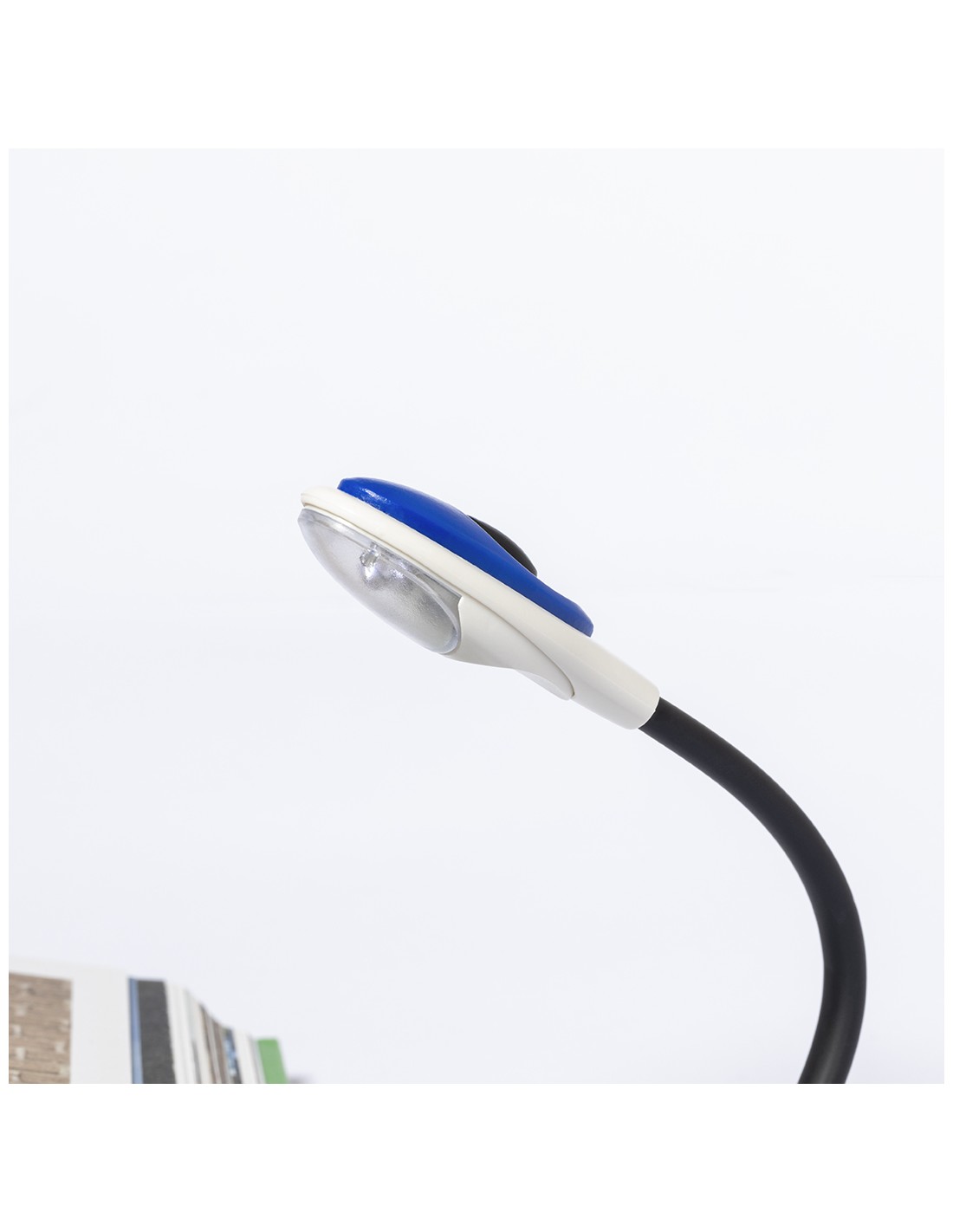 Lámpara led de lectura de diseño bicolor. Con cuerpo flexible y cómoda pinza de sujeción. Presentada en caja individual.